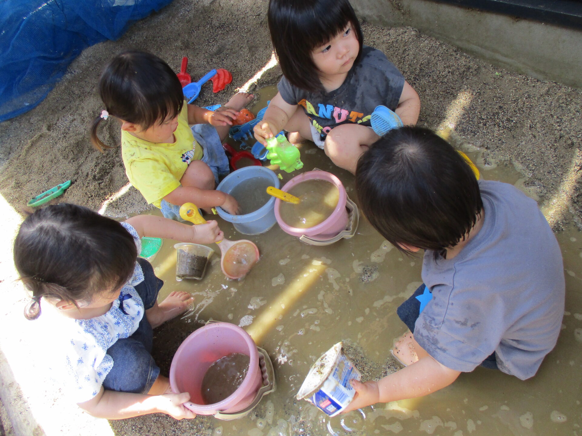 途中から、水を砂場に用意して、本格的に泥んこ遊びに発展していきます✨