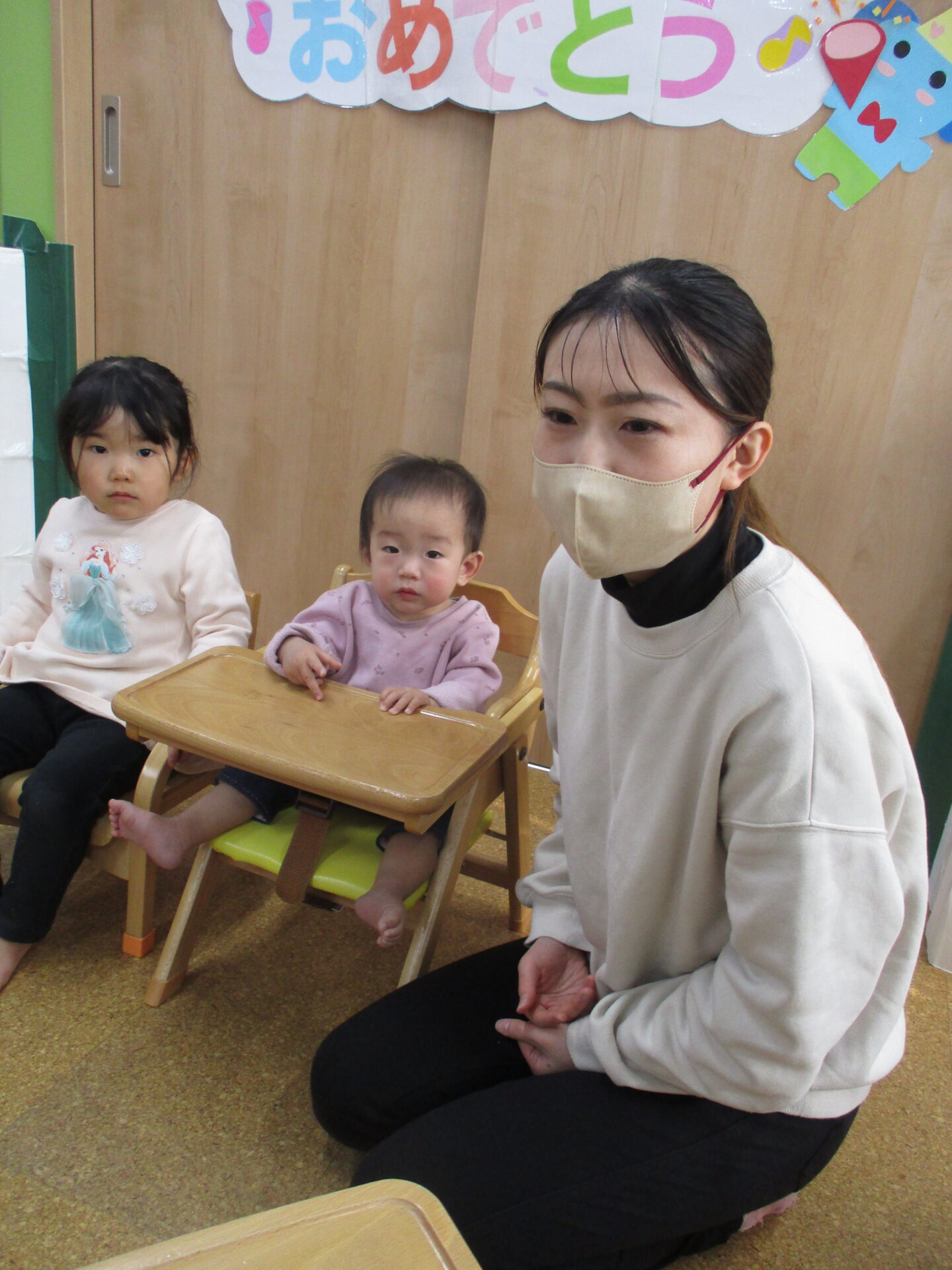 0歳児うみチームと2歳児あめチームの可愛い女の子です(⌒∇⌒)