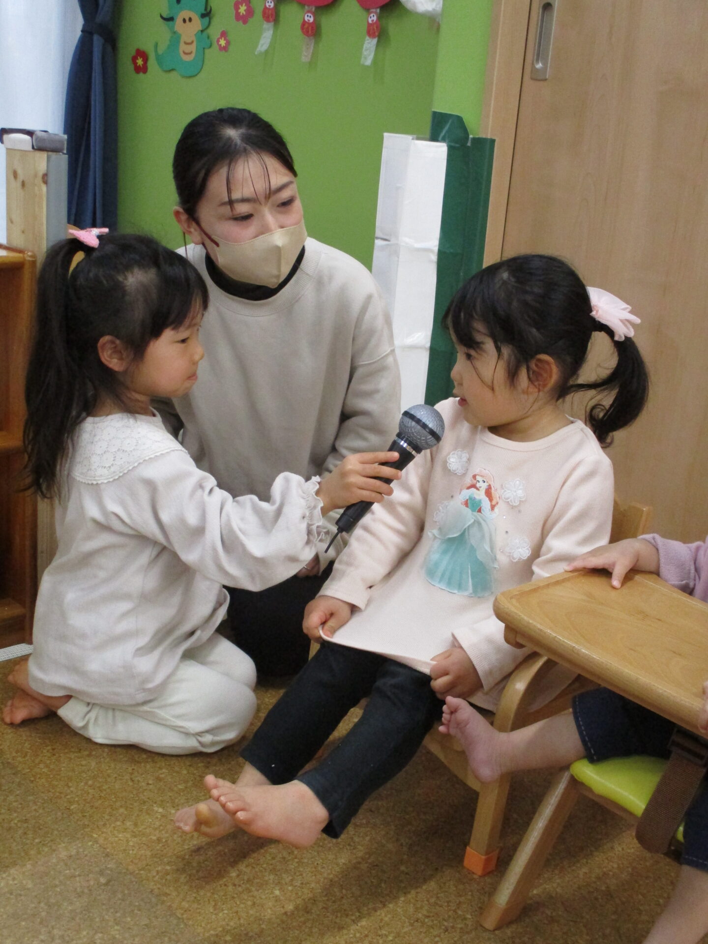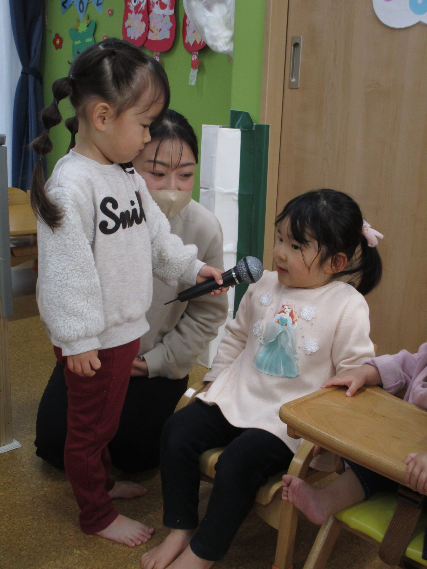 2歳児あめチームのお友だちには、お友だちから質問タイム!!