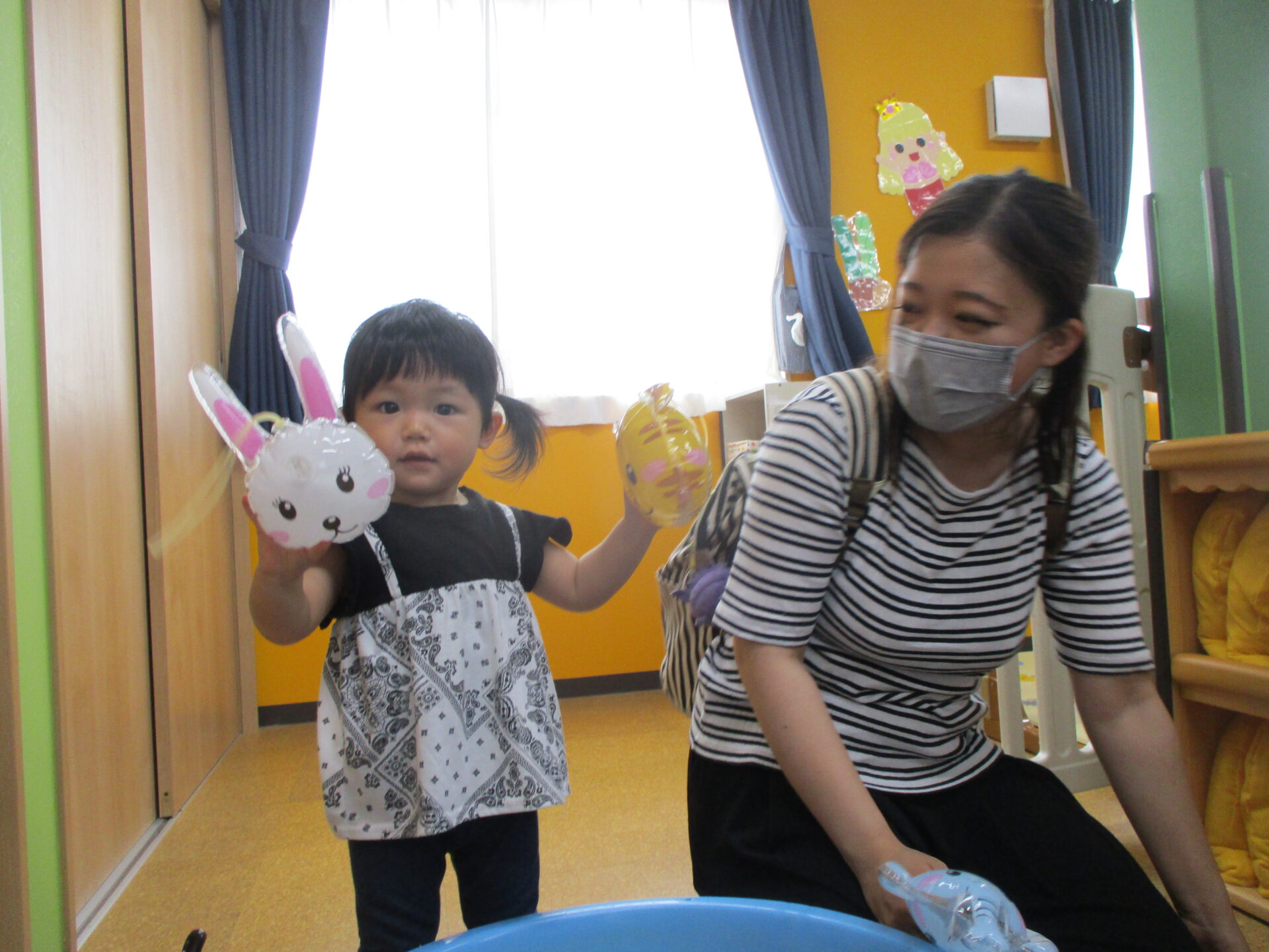 手を伸ばしてヨーヨーを掴みます(⌒∇⌒)💓
