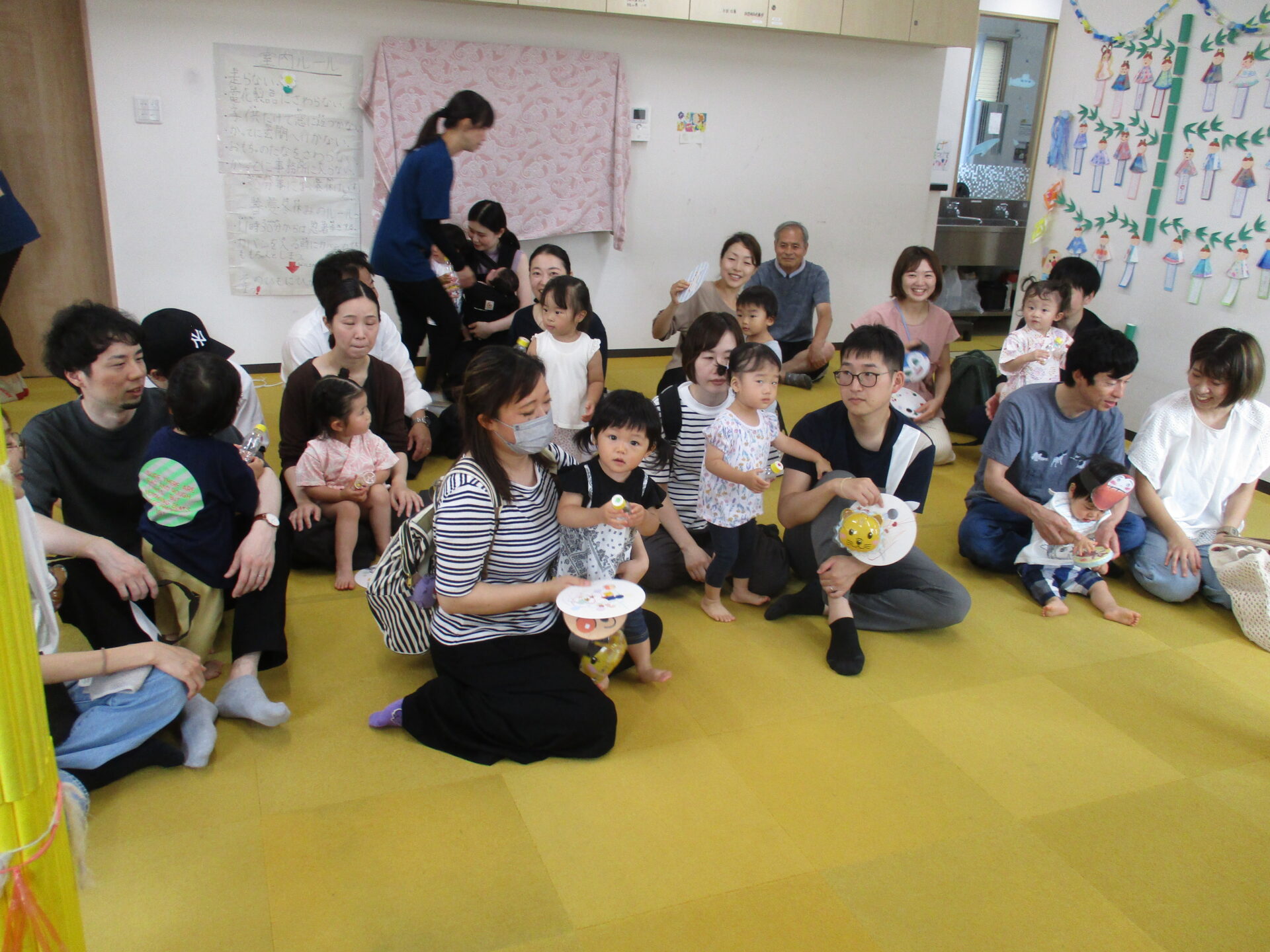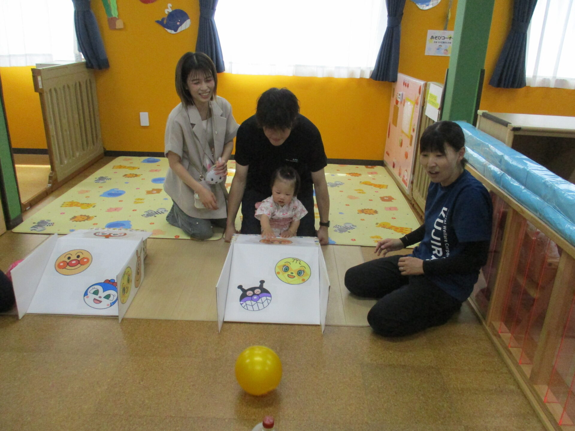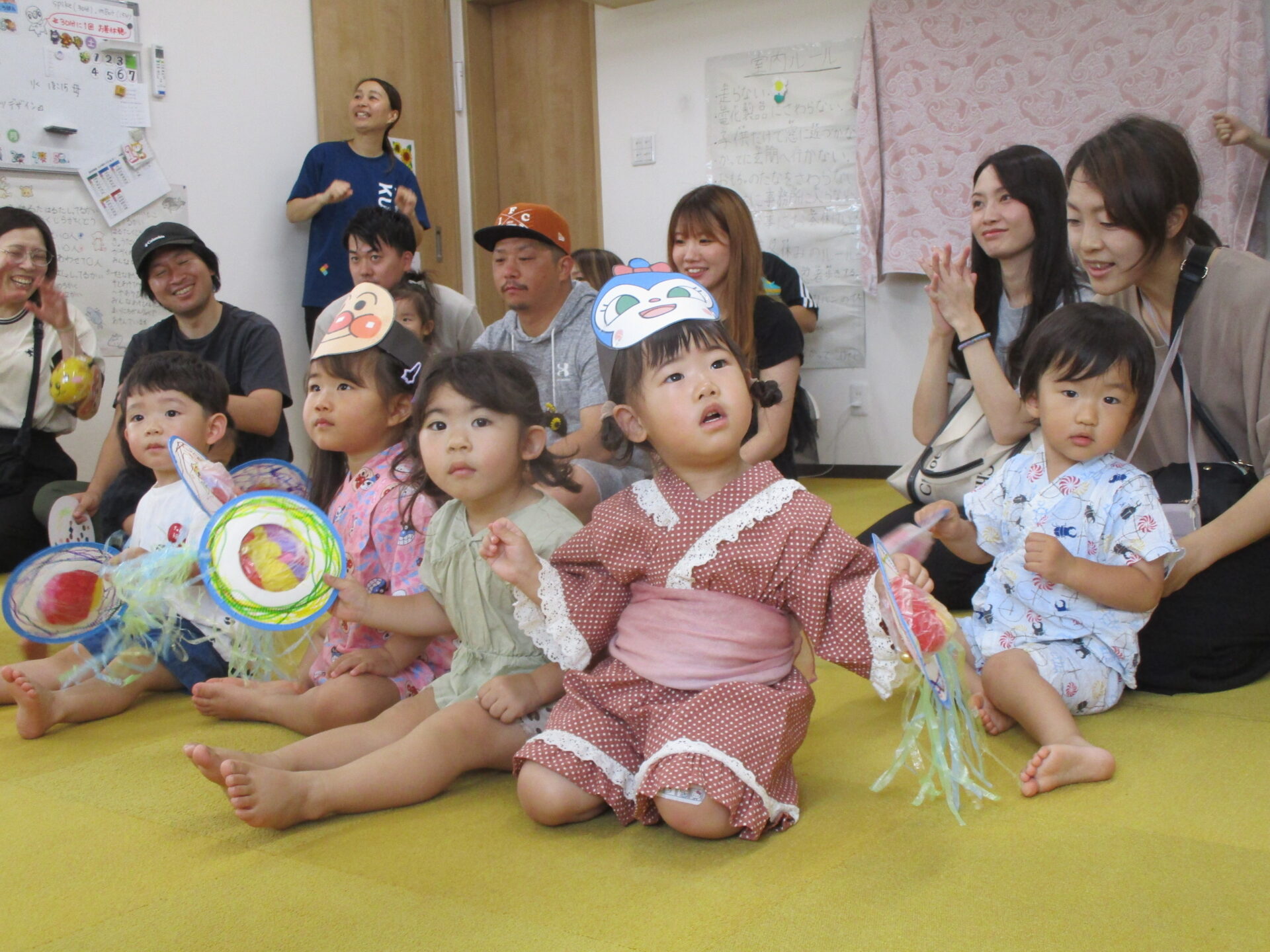 0歳児のお友だちもお家の方と一緒に挑戦してくれました(⌒∇⌒)💕浴衣姿がとっても可愛かったです💓