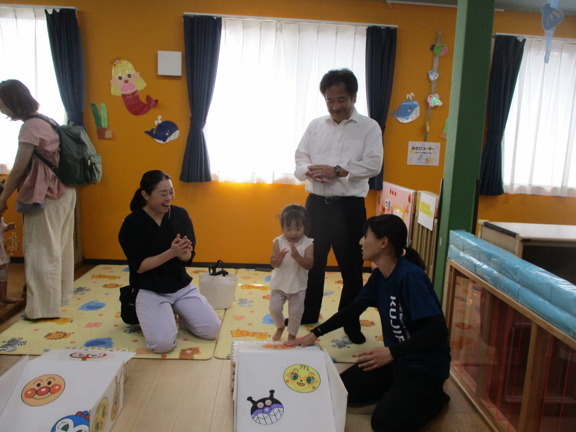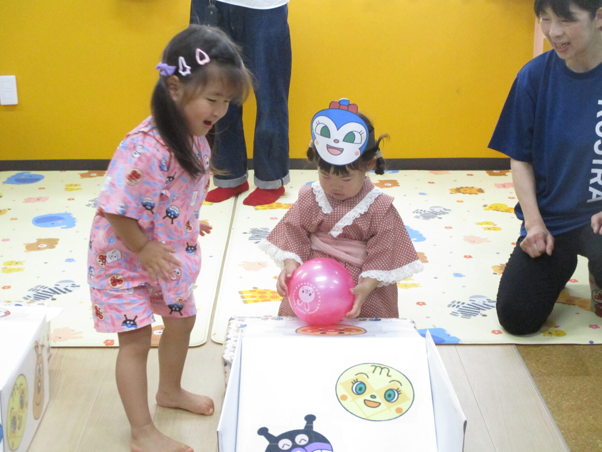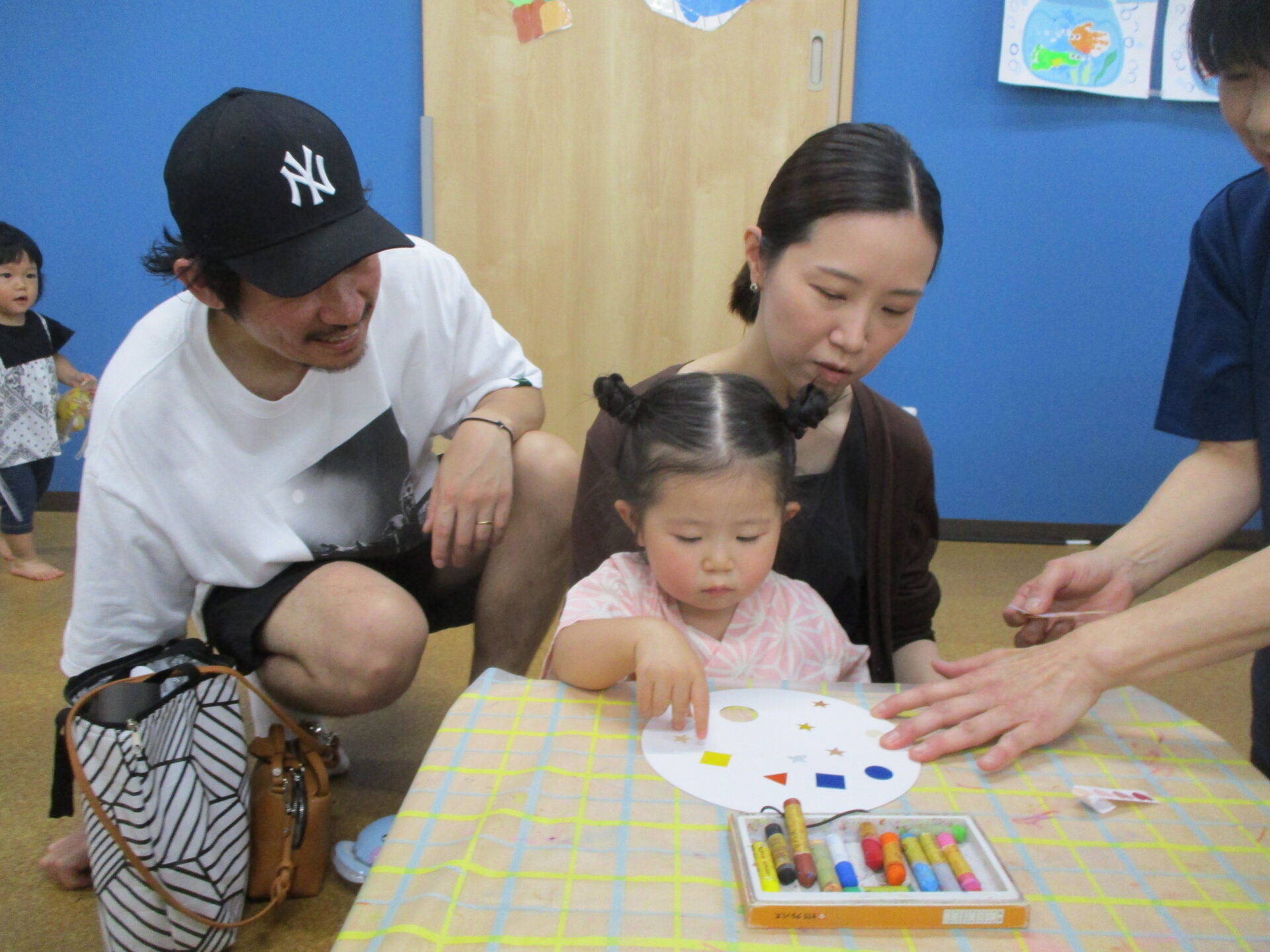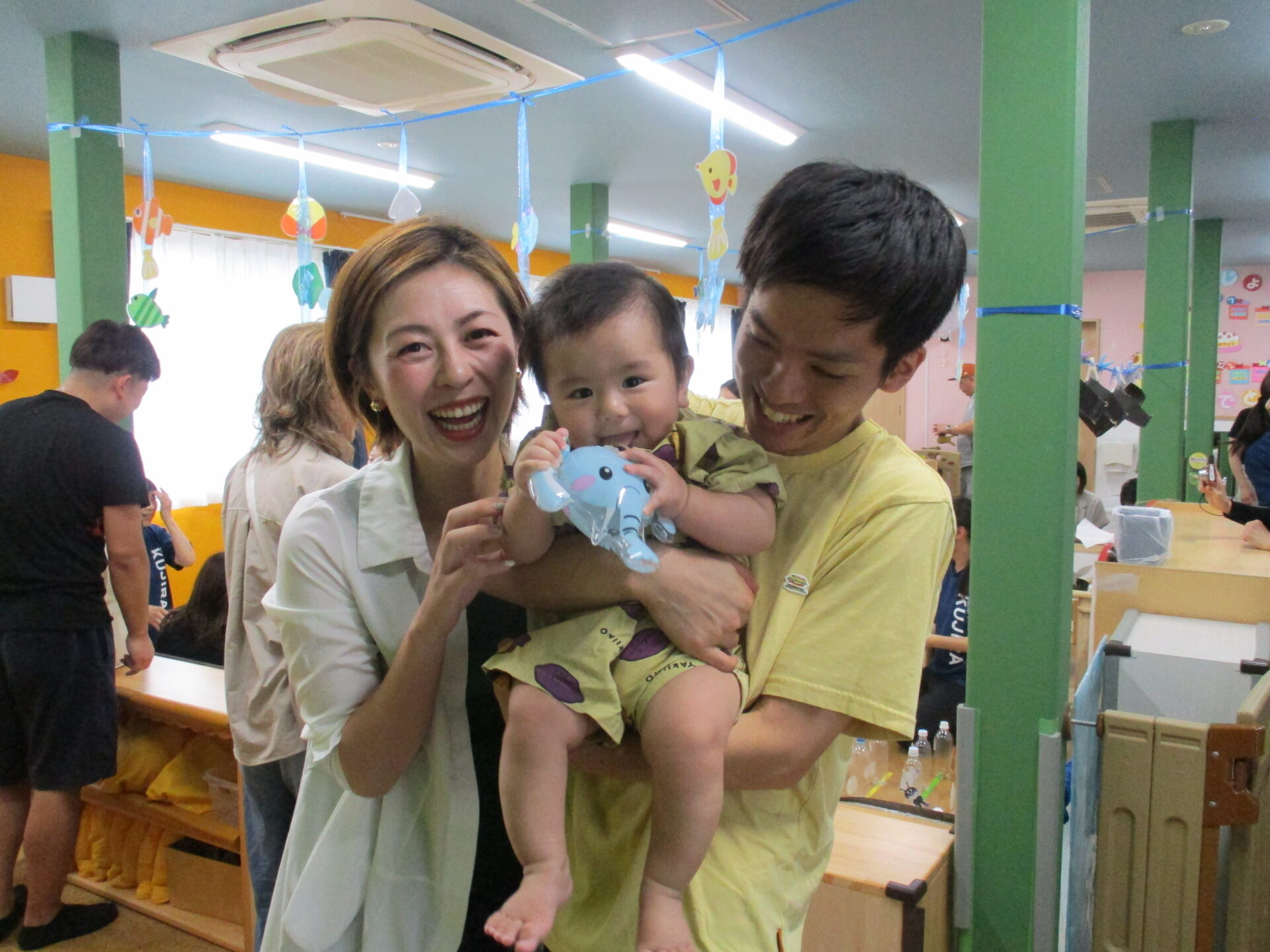 0歳児のお友だちもお家の方と一緒に挑戦してくれました(⌒∇⌒)💕浴衣姿がとっても可愛かったです💓