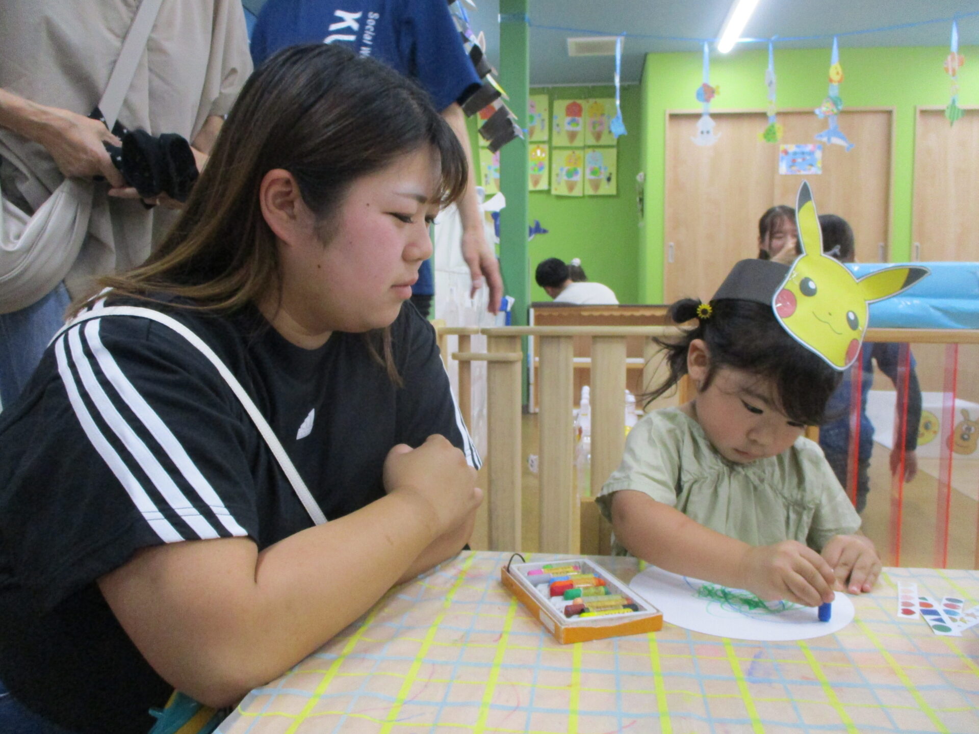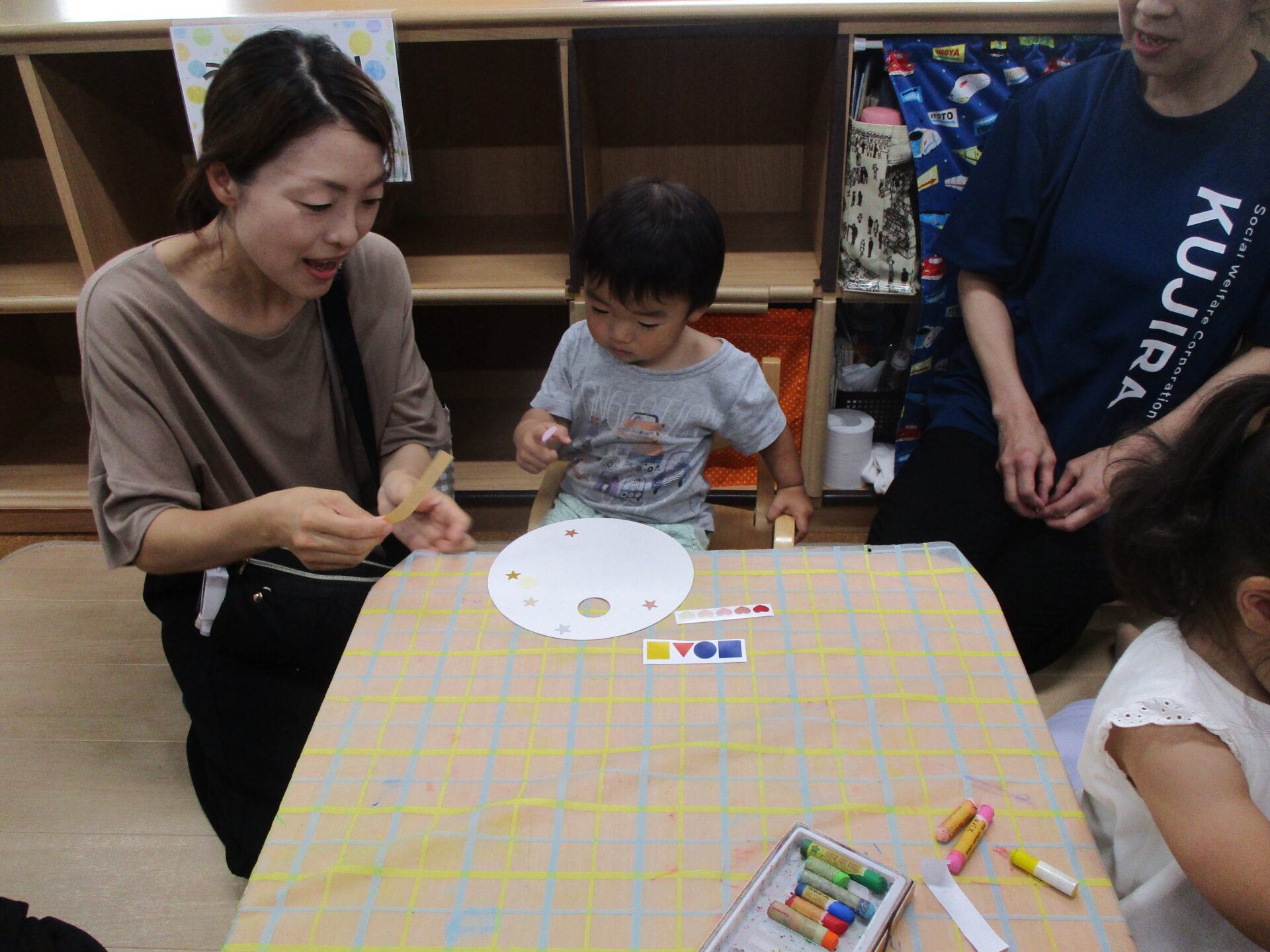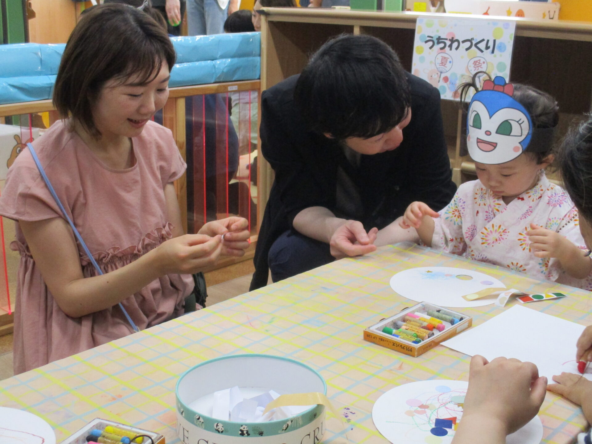 いつもと違う雰囲気に緊張しながらも、大すきなお家の方と一緒にうちわ作りに挑戦🥰