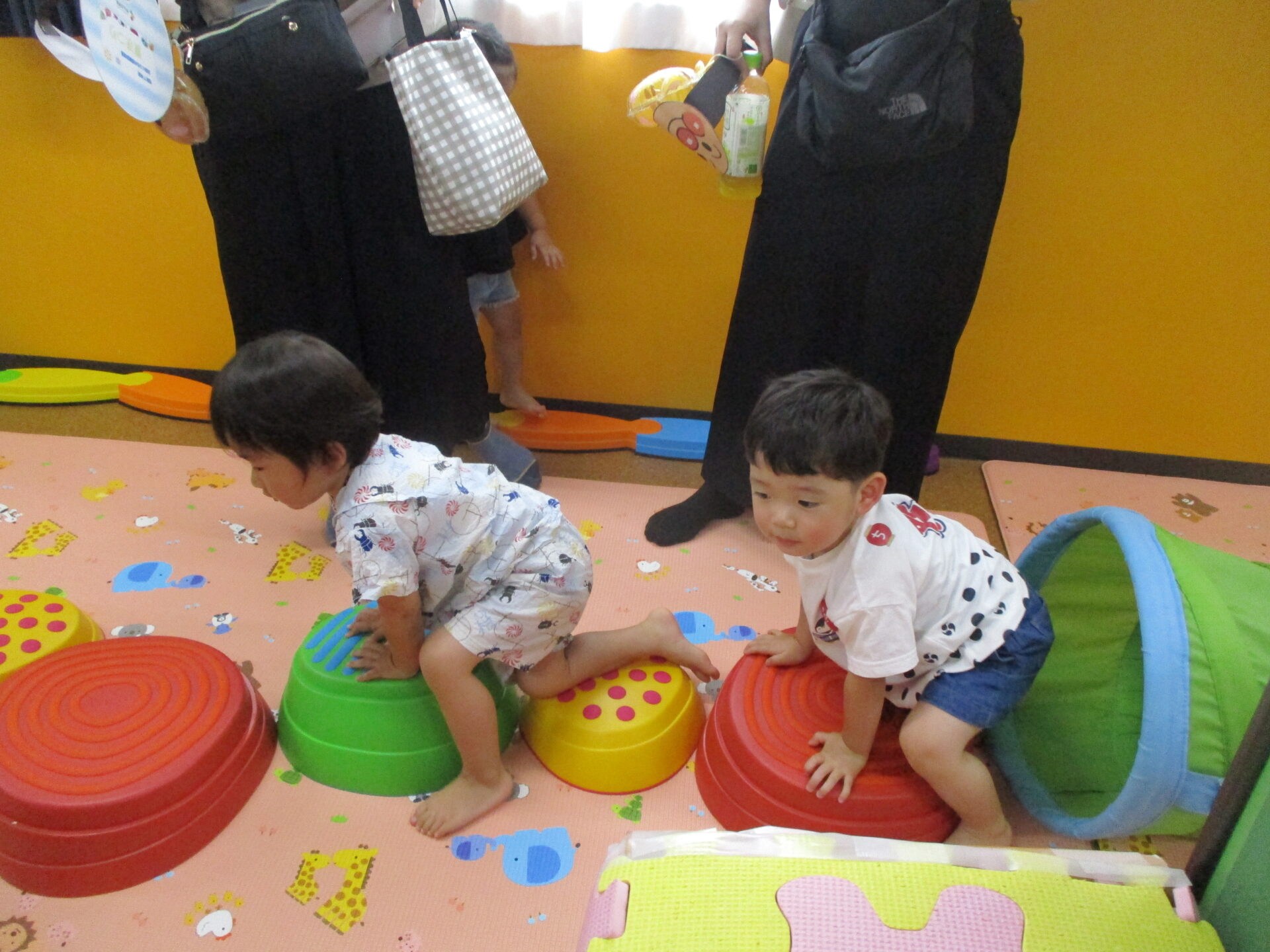 トンネルやバランスストーンに挑戦!!2歳児あめチームのお友だちは、身体の使い方が上手です(⌒∇⌒)✨