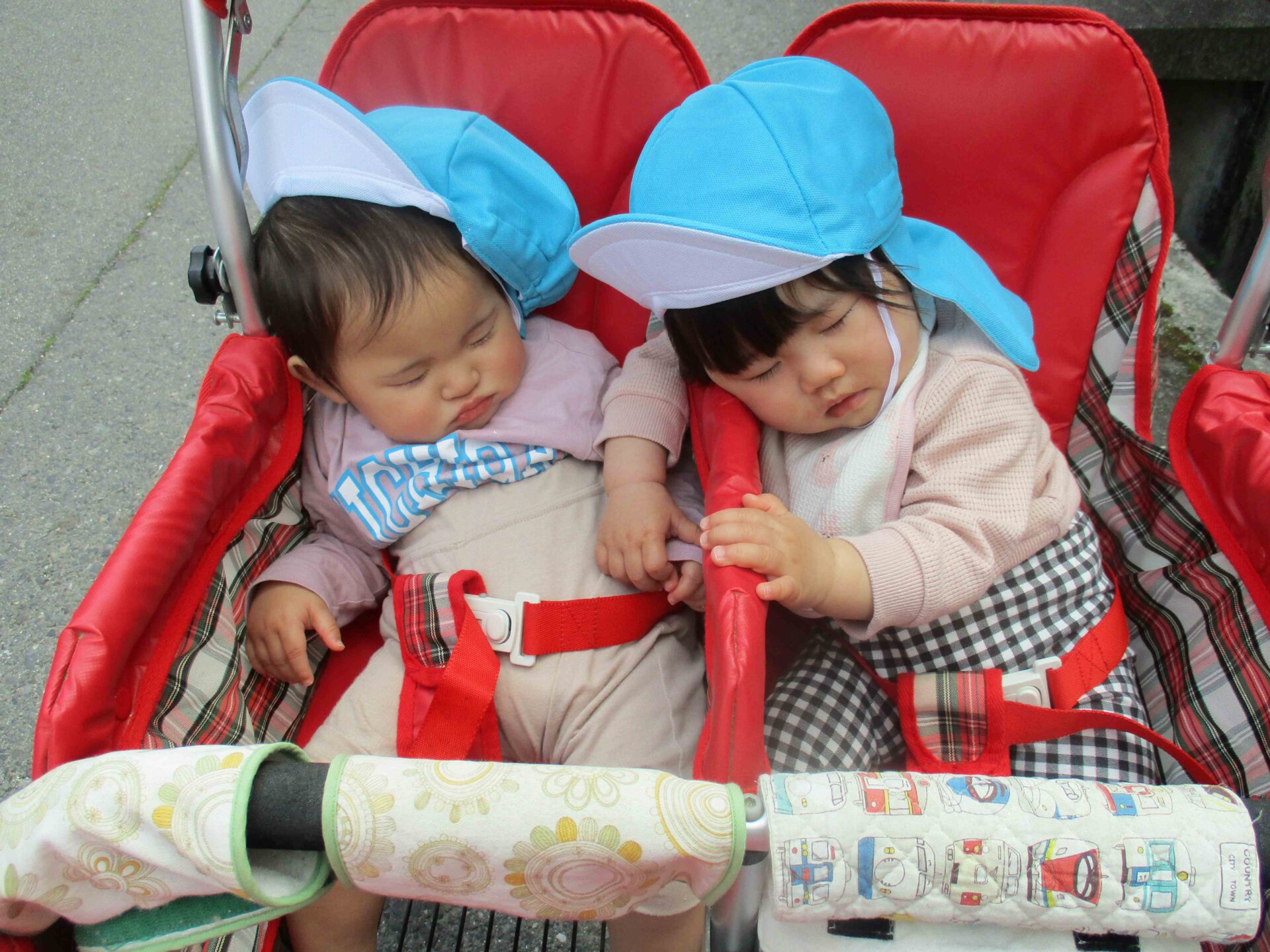 春風に吹かれてウトウトお散歩💕(0歳児うみチーム)