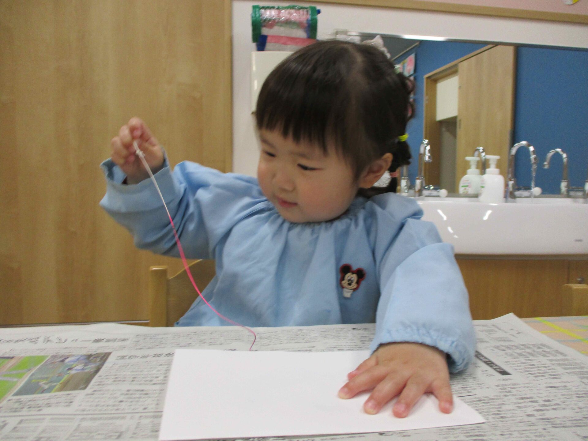 糸引き絵に挑戦🎵(2歳児あめチーム)