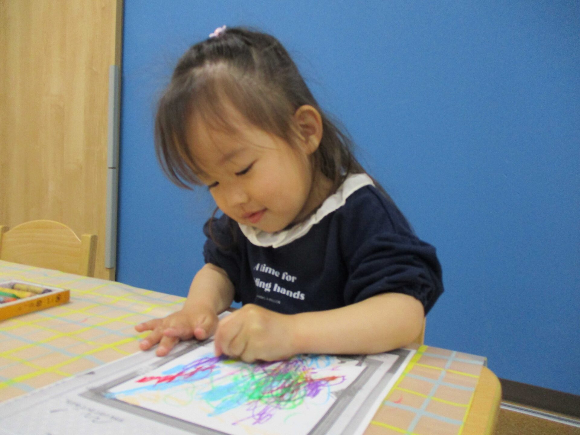 お絵描きもしました✨紙いっぱいにたくさん描いて、にっこり満足顔でした(⌒∇⌒)