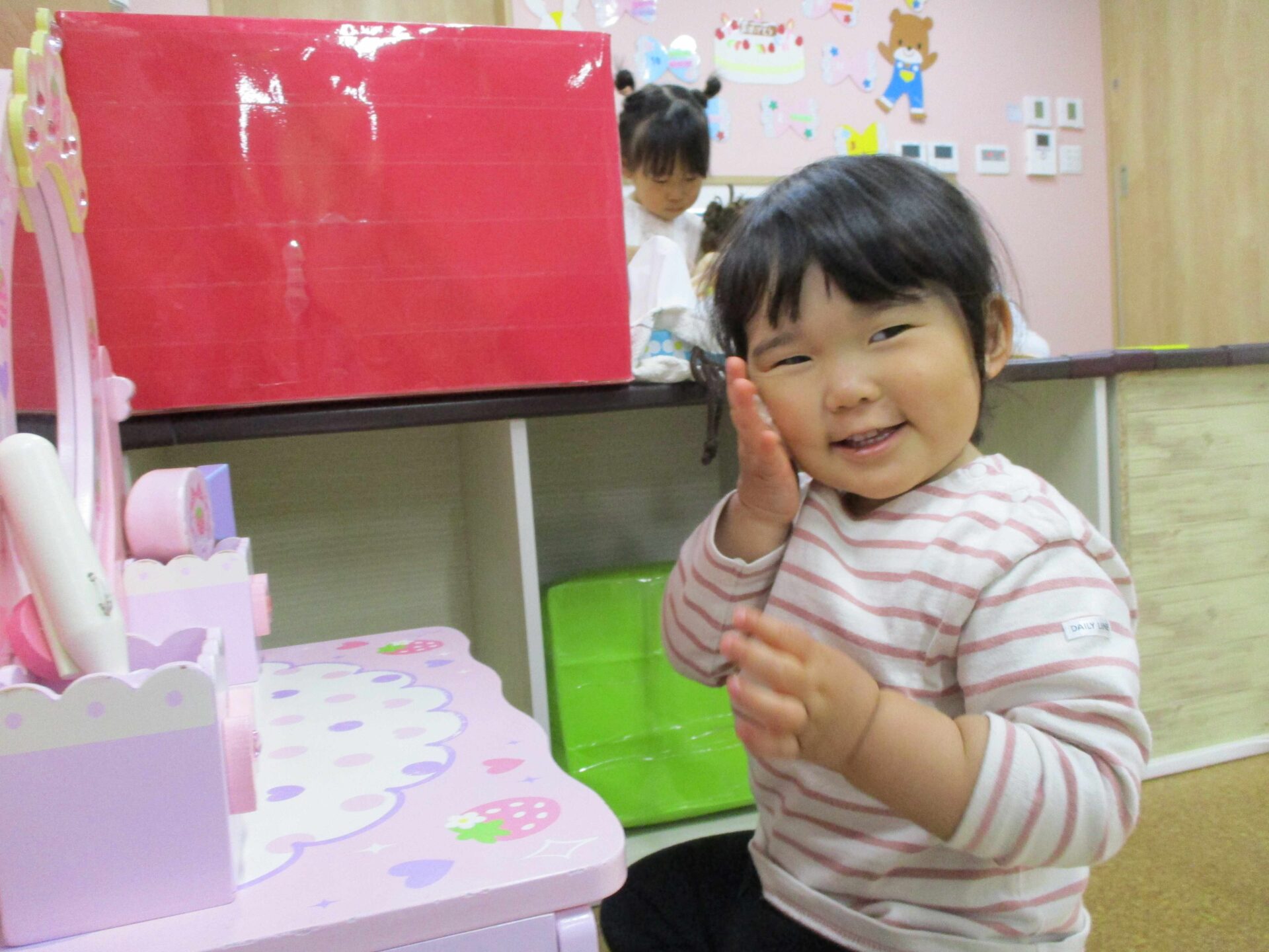 新しい環境にも少しずつ慣れ、室内でもやりたいことを見つけて夢中で遊べるようになりました(⌒∇⌒)これからも好きな遊びをたくさん見つけ、様々な経験ができるように傍で見守っていきたいです✨