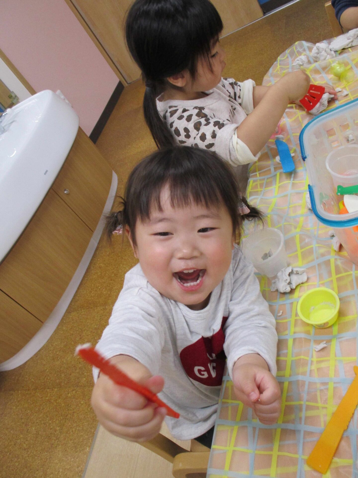こちらは、粘土遊びをした時の様子です(^▽^)/