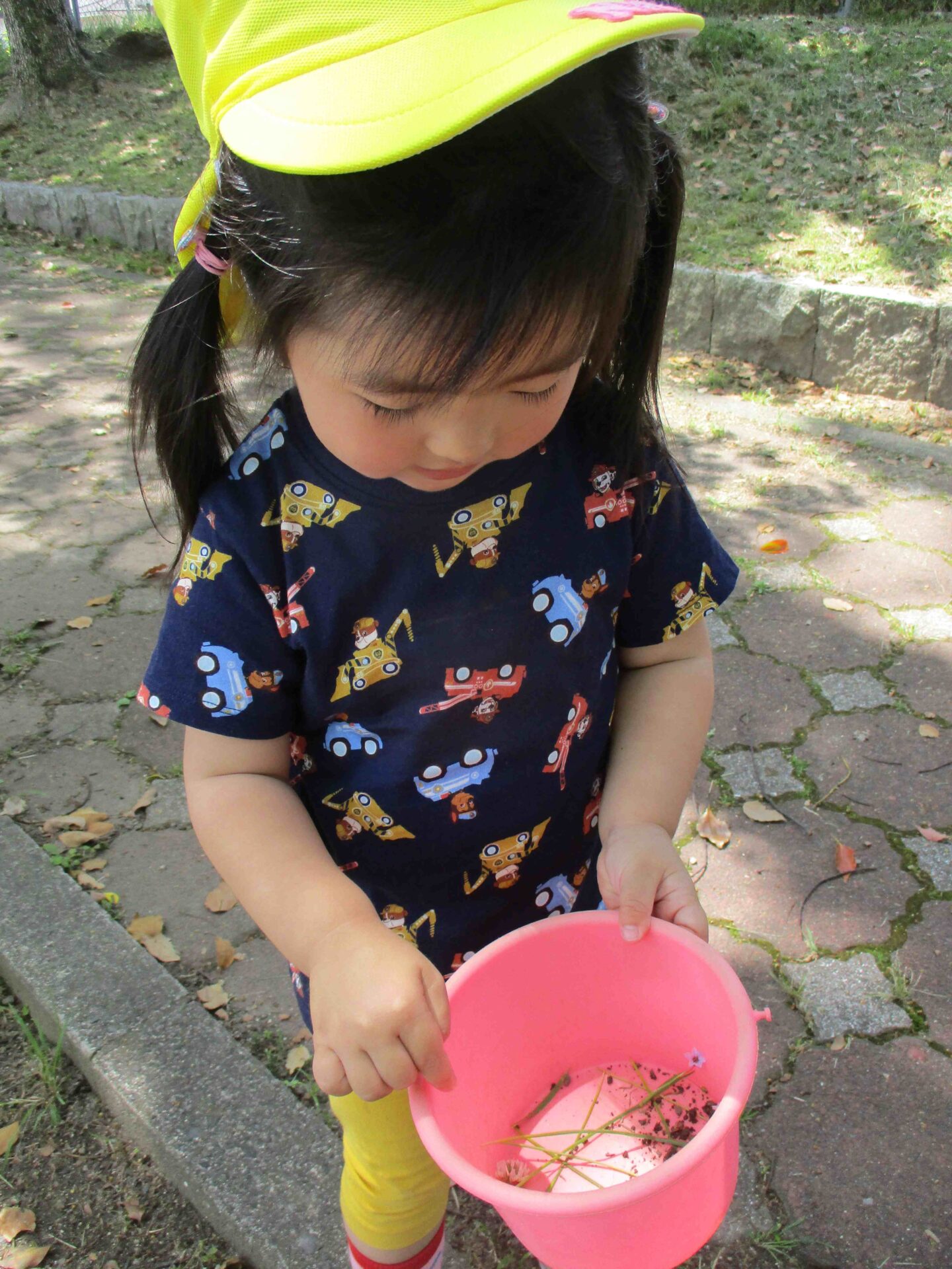 かわいいお花をバケツに入れて、「ダンゴムシのお家を作ったの」と見せてくれました✨