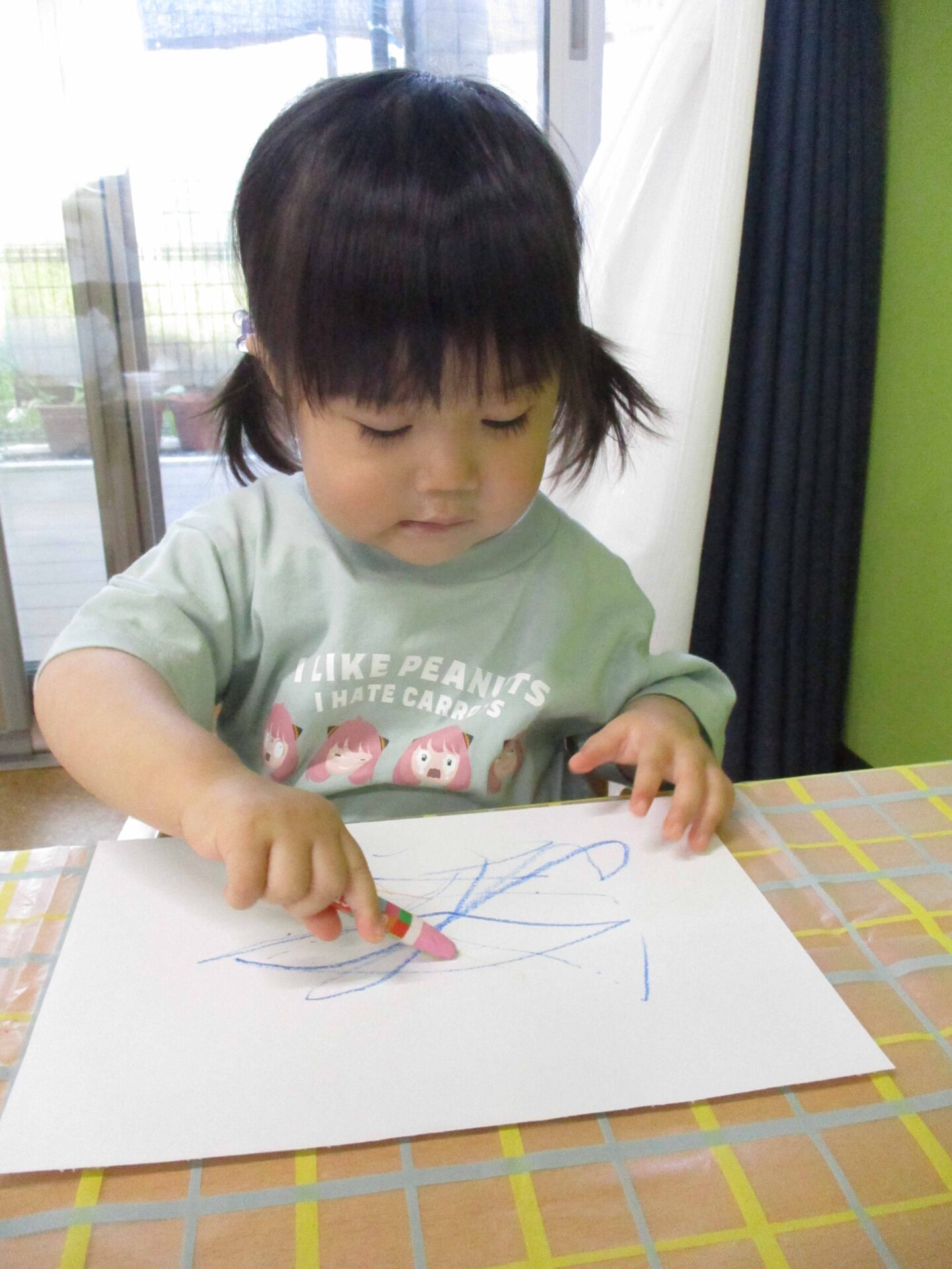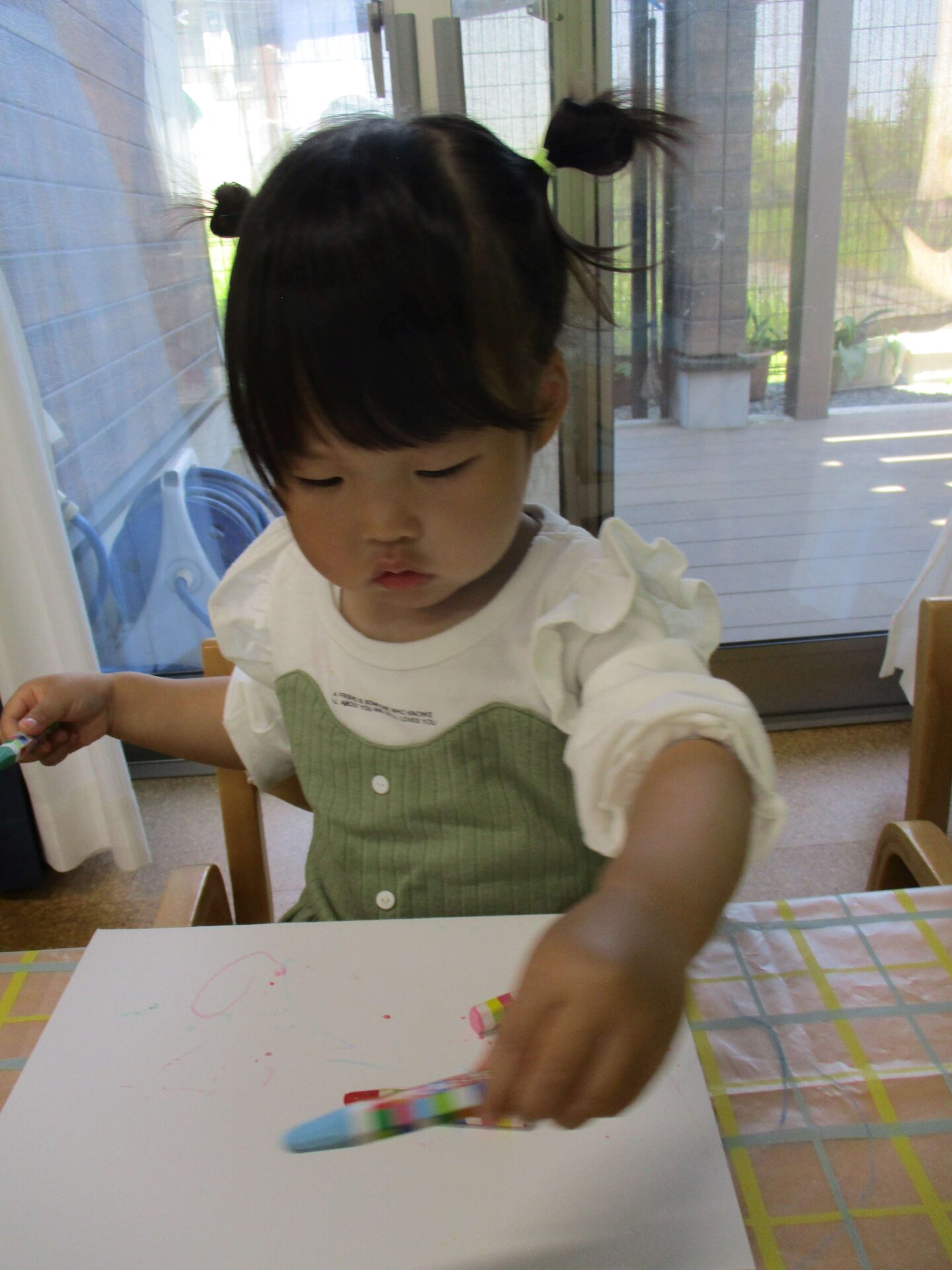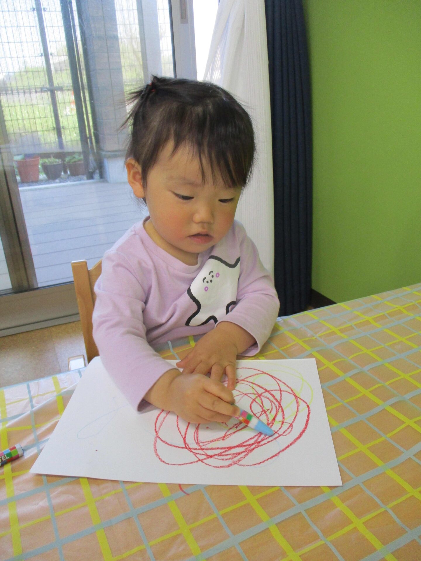 しっかりとクレパスを握って、夢中になって描いていました(⌒∇⌒)