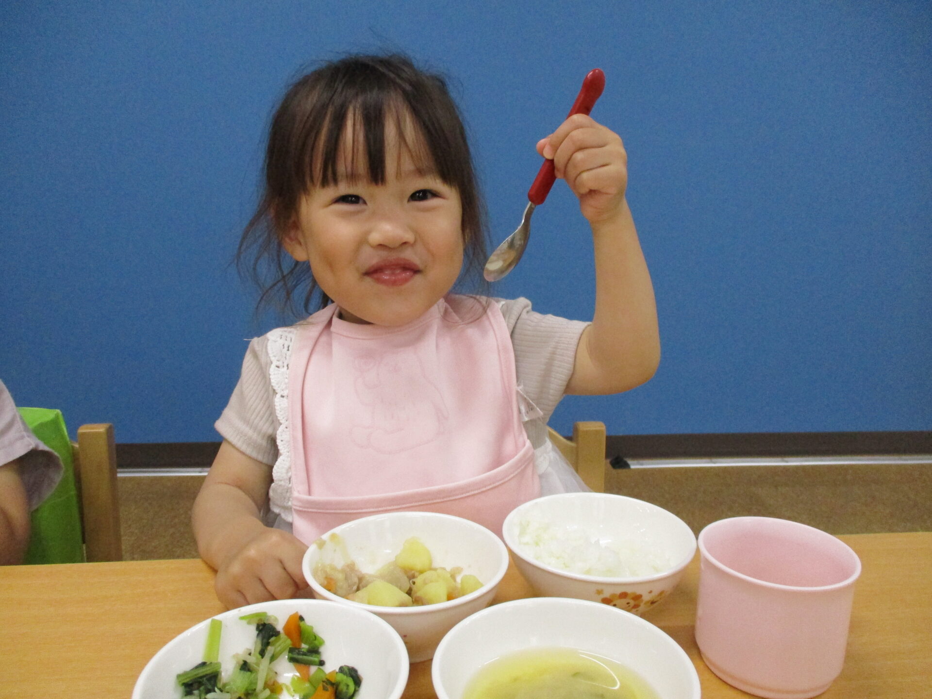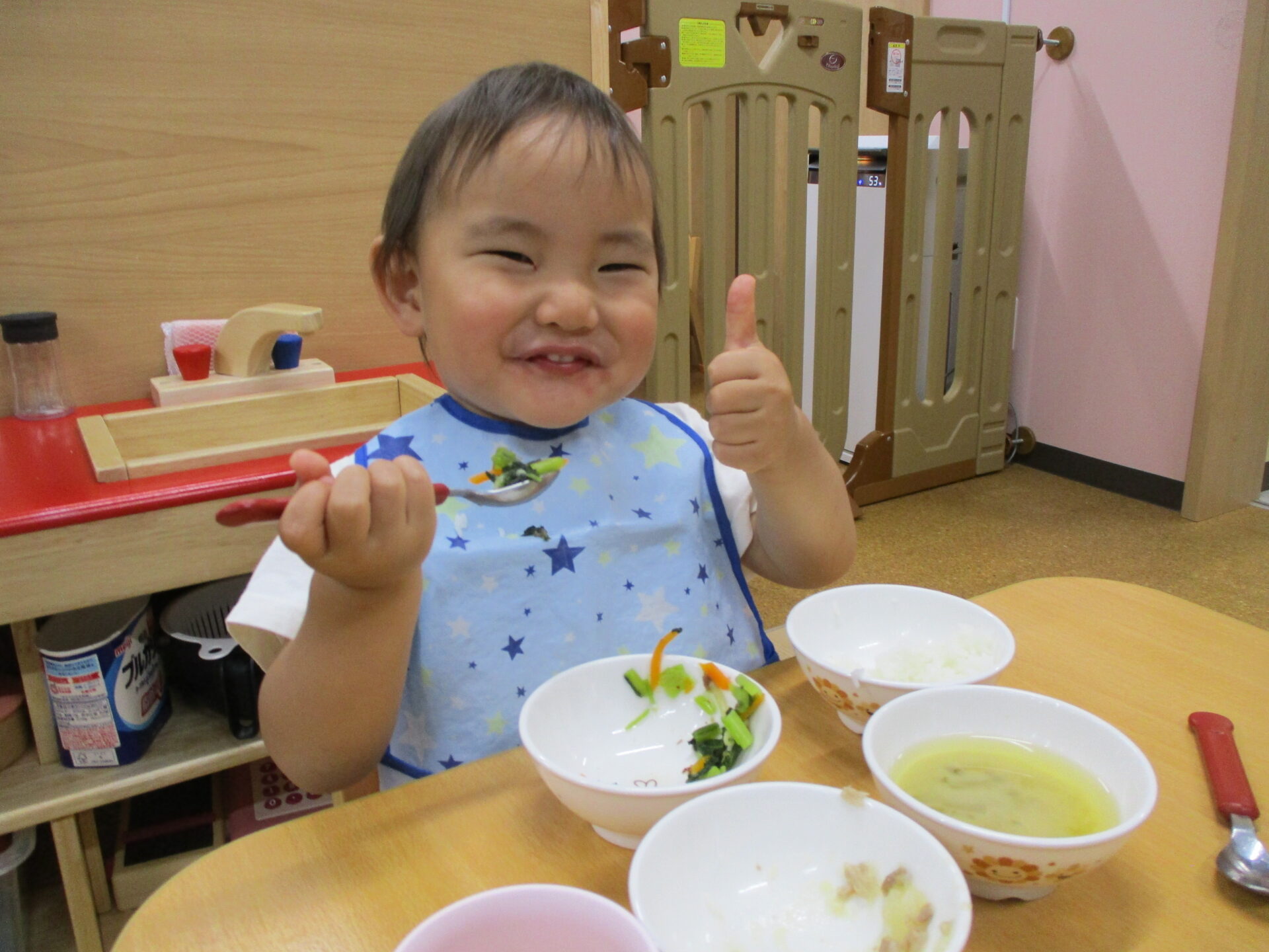 自分でしっかりとスプーンを持ち、「おいしいね!!」と言いながら意欲的に食べています😊