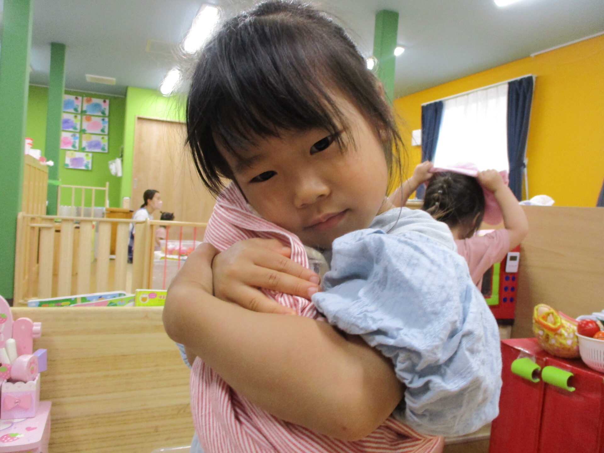 「ごはん、できたよ~🎵」「大変!!赤ちゃんお熱あるみたい…」子どもたちから、色々な場面を想像した会話が聞こえてきます😊