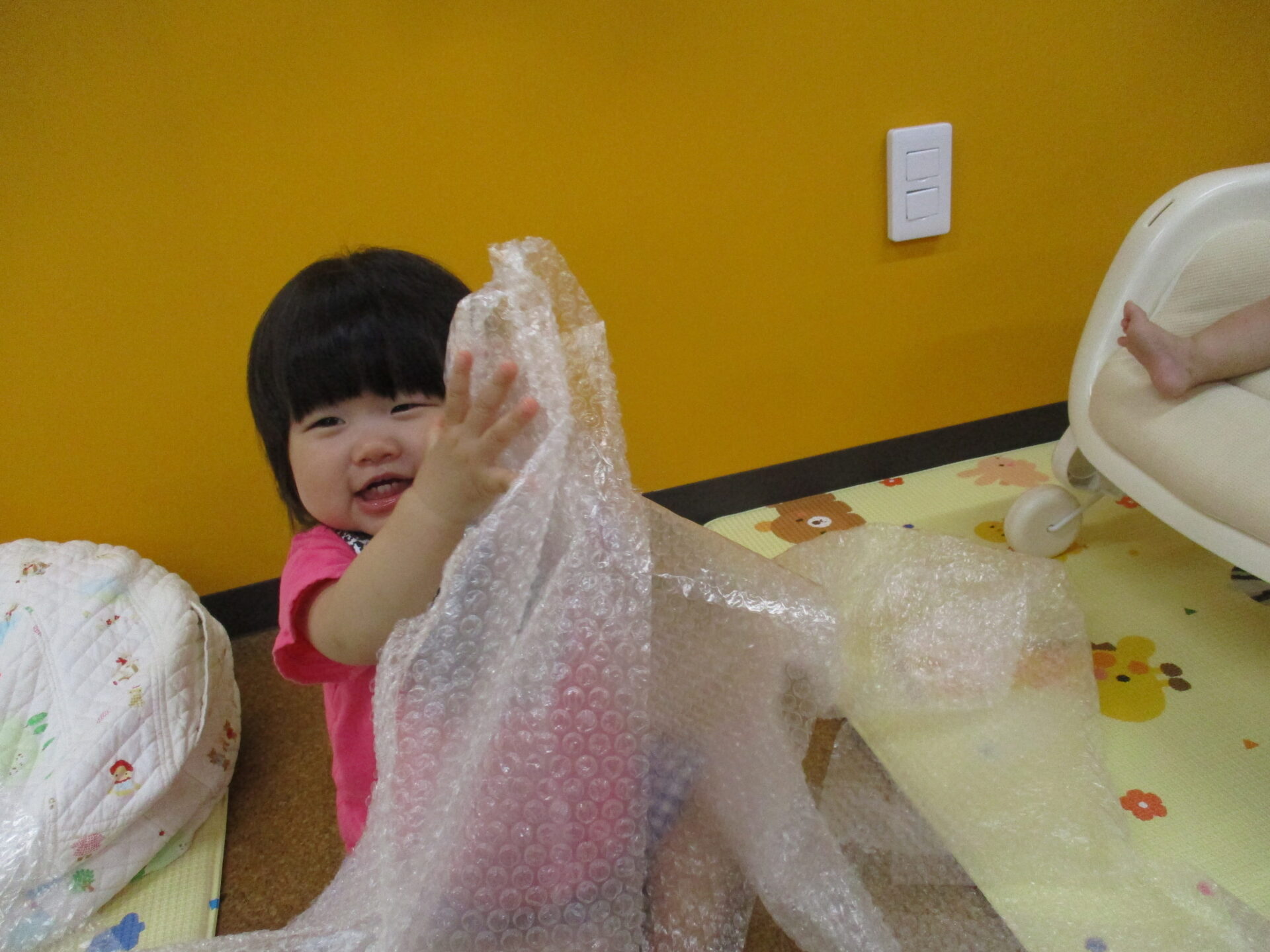 こちらは、プチプチを楽しんでいる様子です(⌒∇⌒)