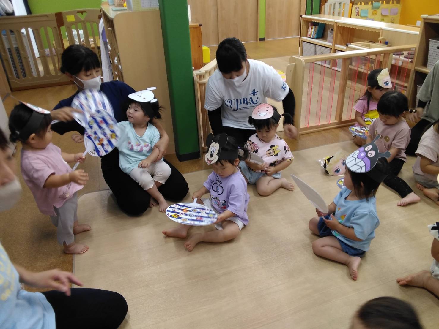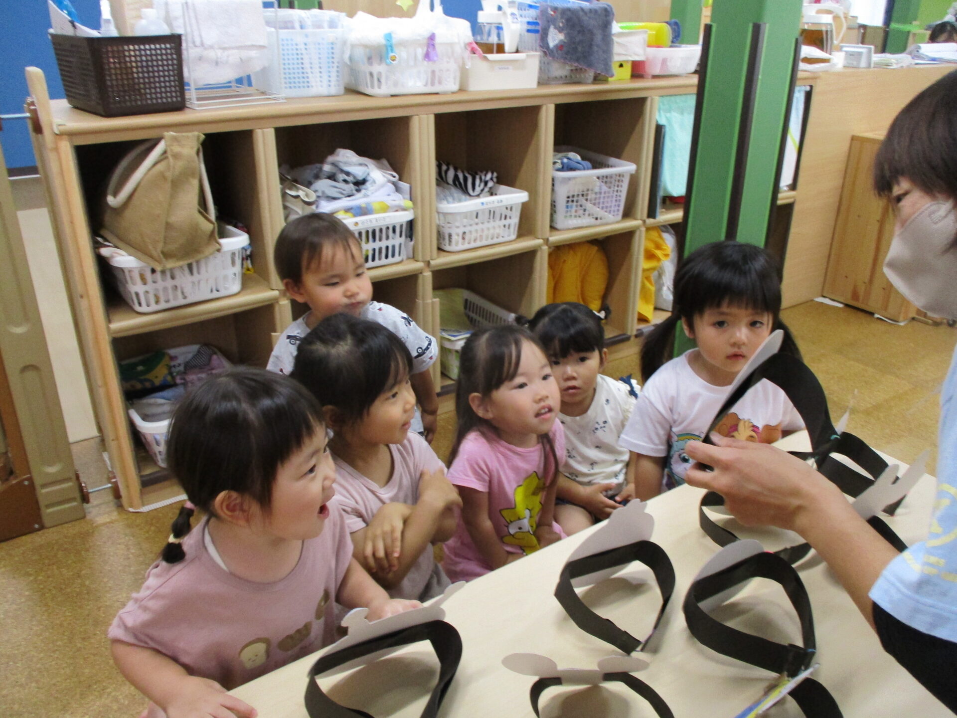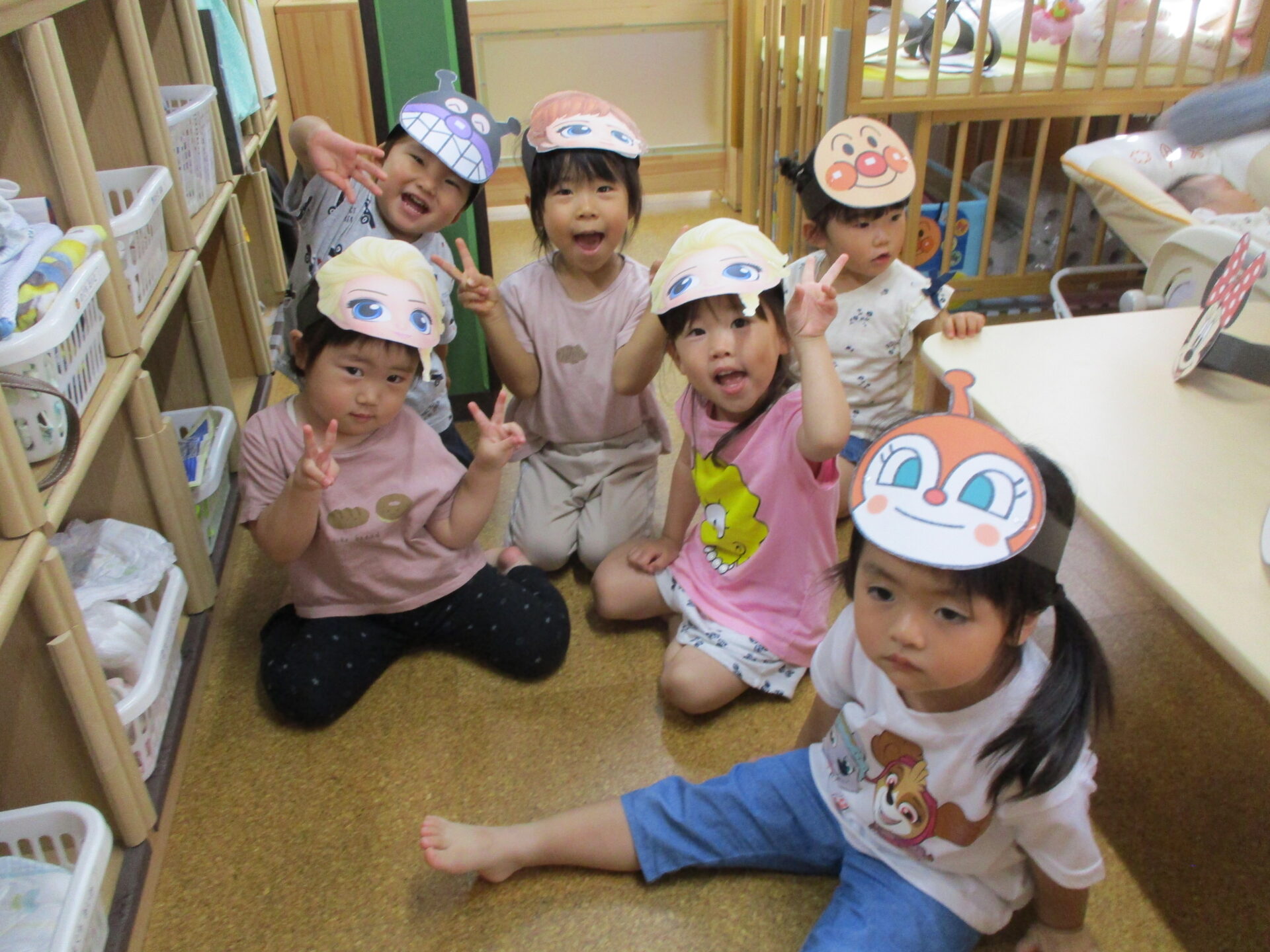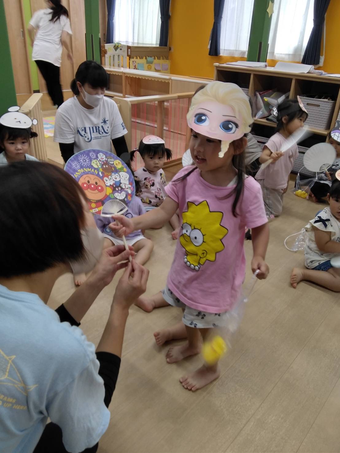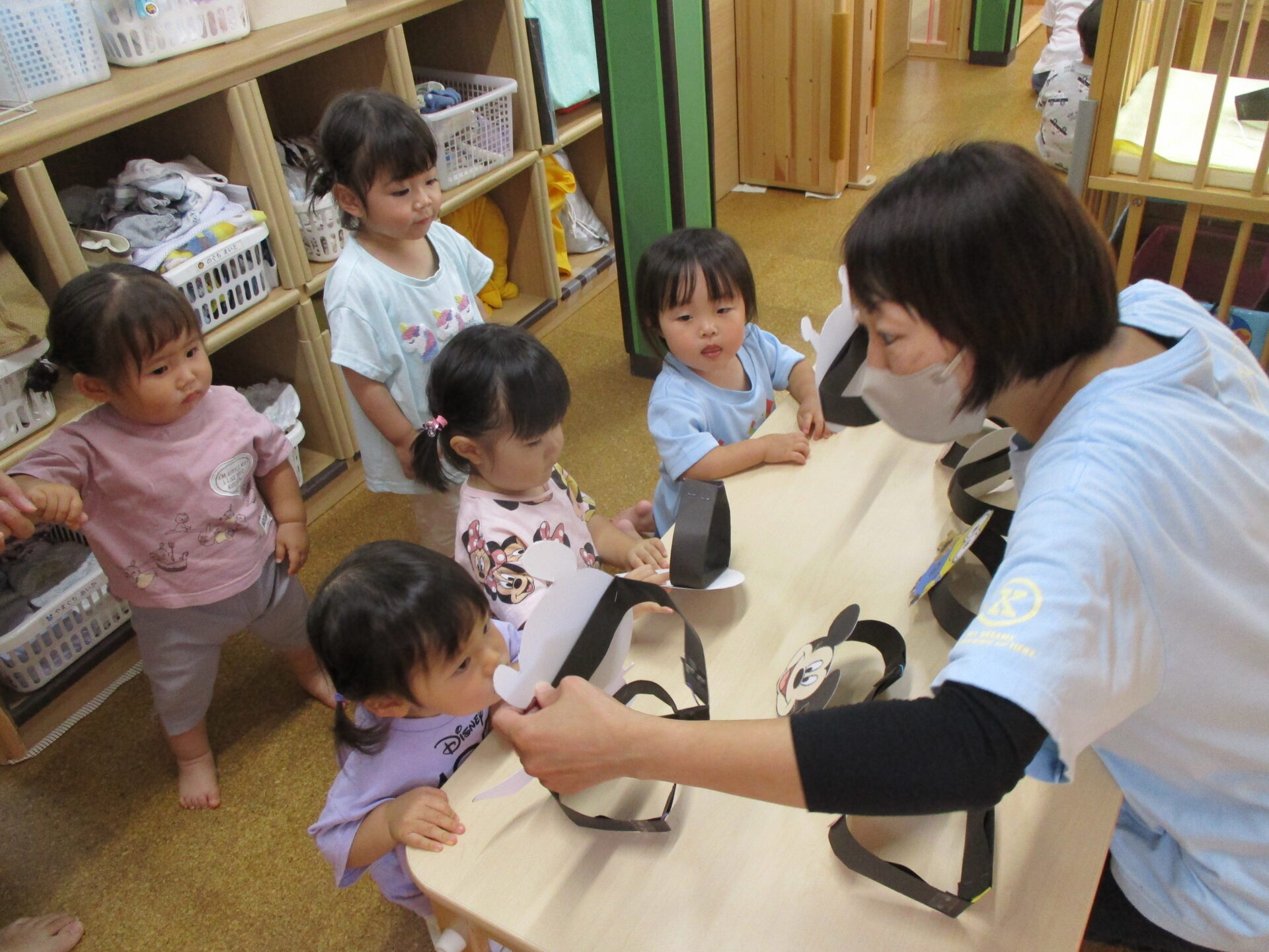 順番にすきなお面を選んでつけてもらいました✨みんなとても可愛いです(⌒∇⌒)