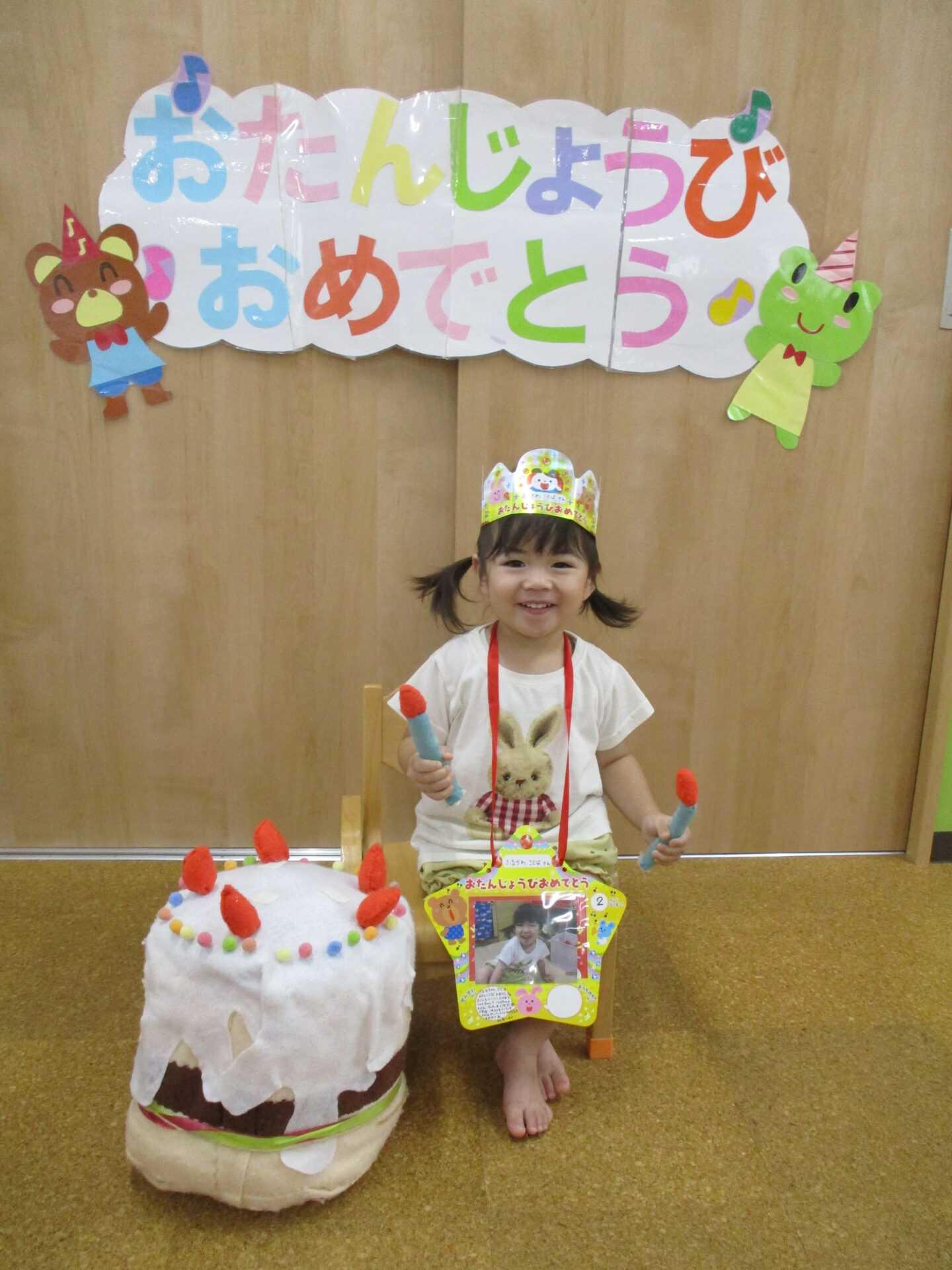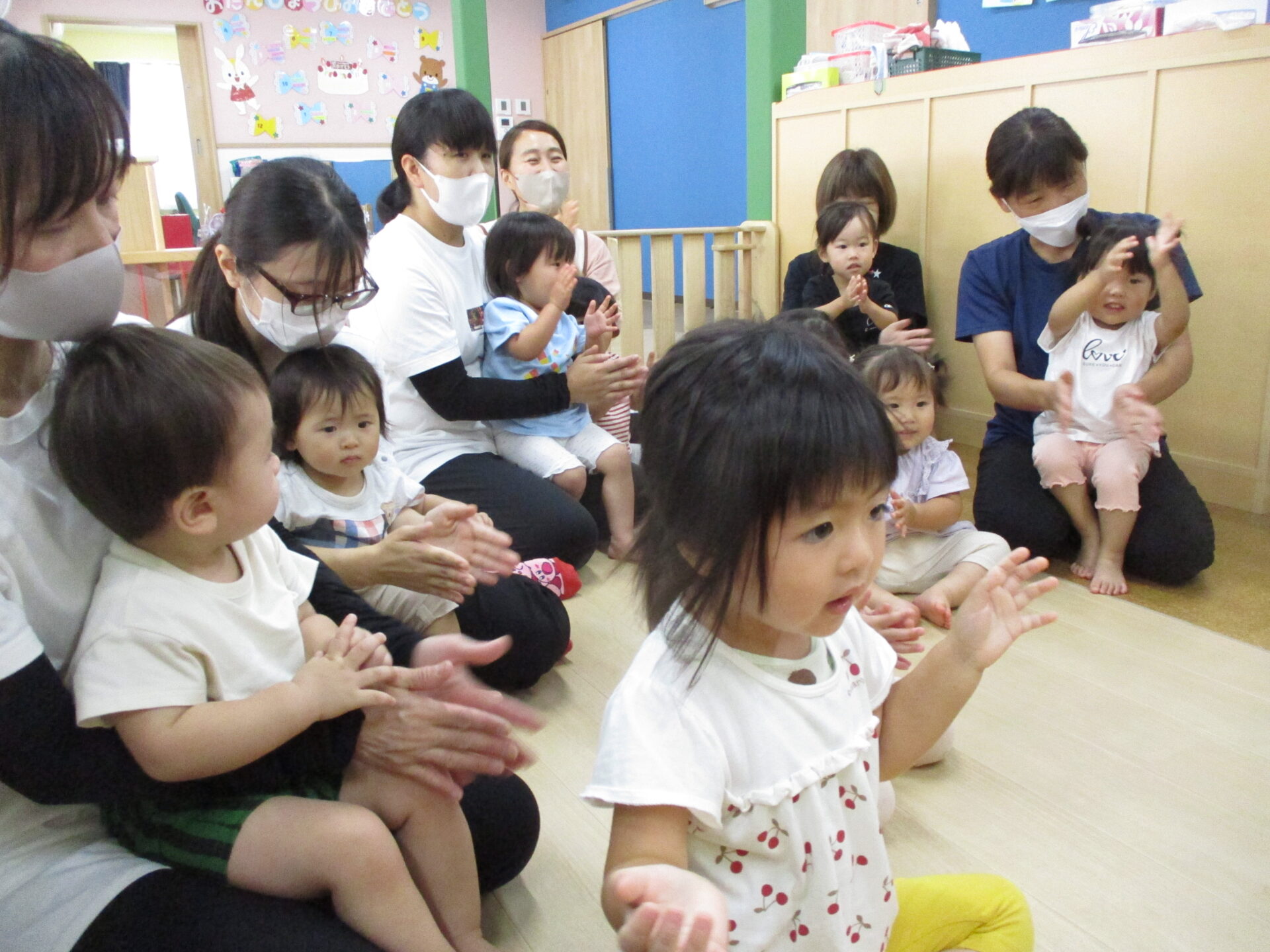 7月生まれはもう一人、うみチームの女の子がいますが、今日はお休みでした。またみんなでお祝いしたいと思います(⌒∇⌒)
