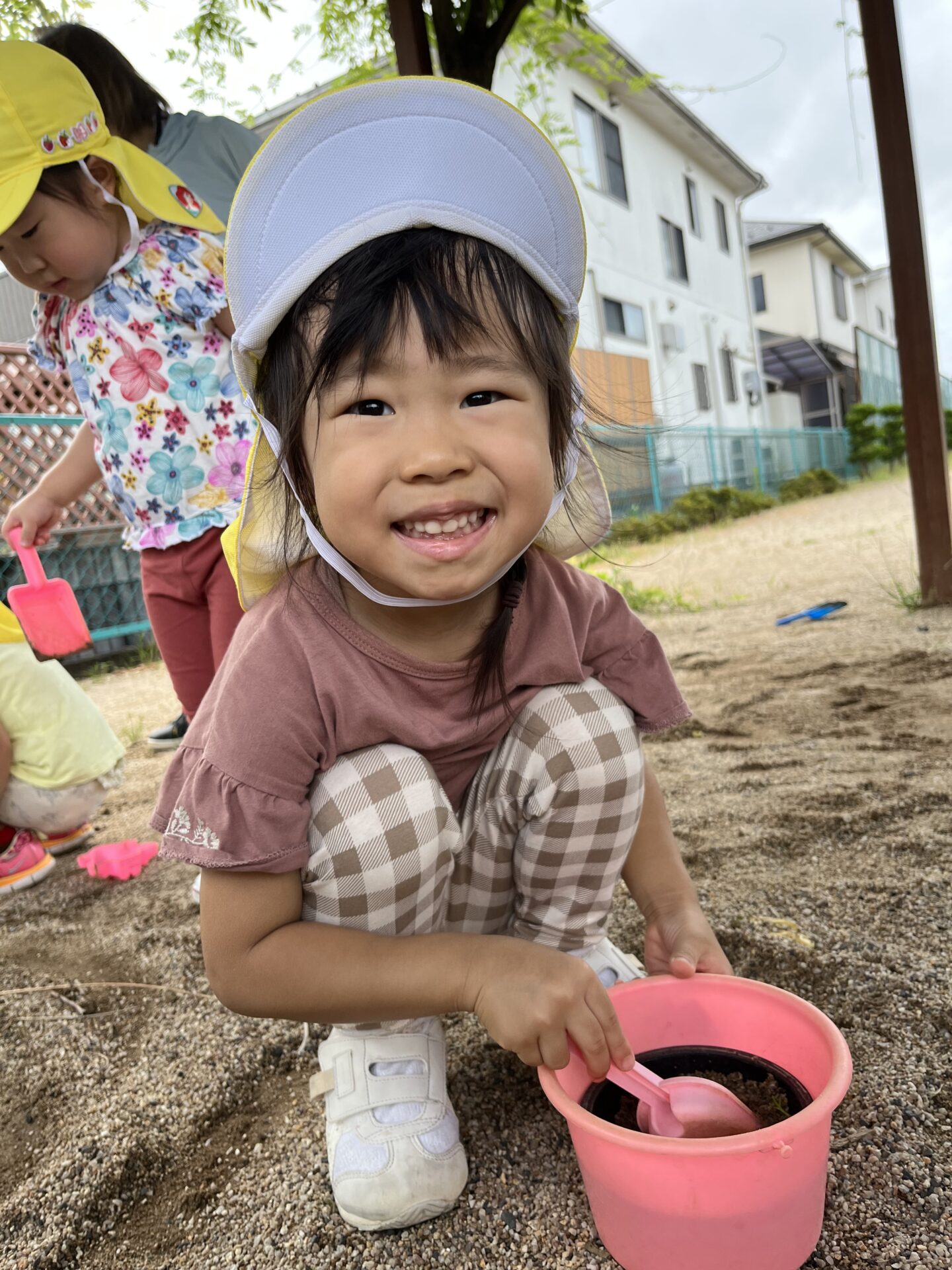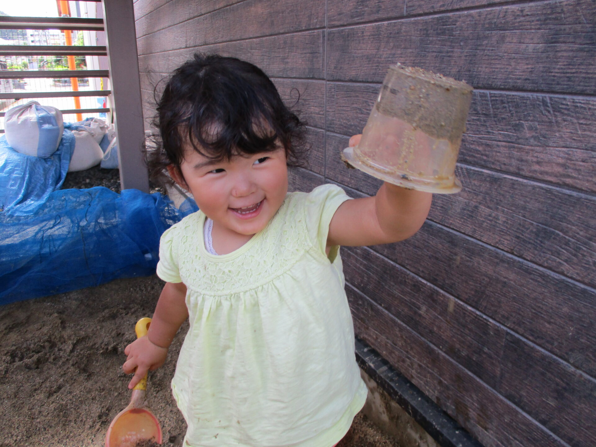 泥んこ遊びの楽しさが、日に日に増してきて「楽しい💕」と言いながらにっこり笑顔😊