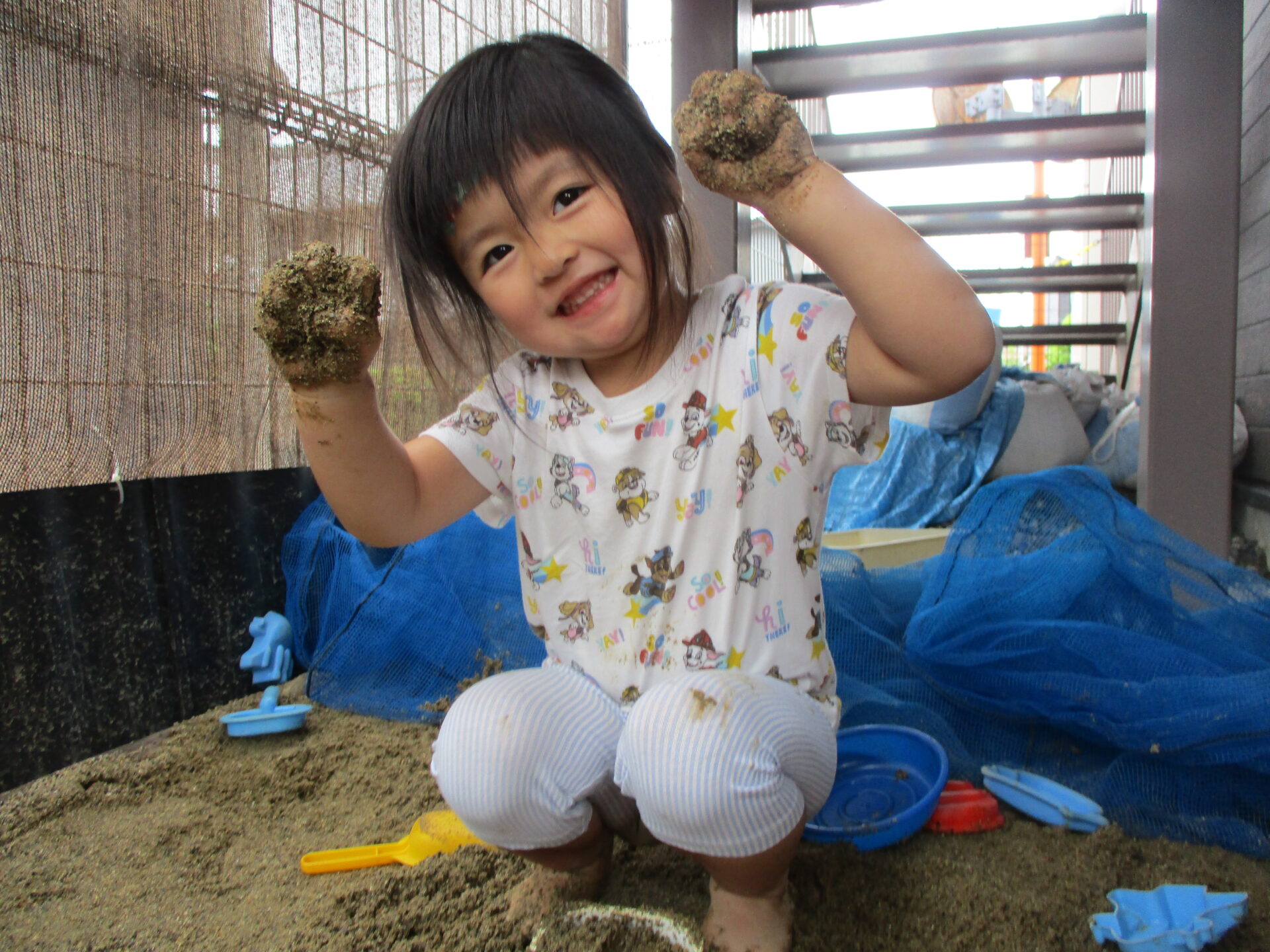 「手が泥んこになっちゃった💕」とたくさん遊んだ手を見せてくれます😊💕