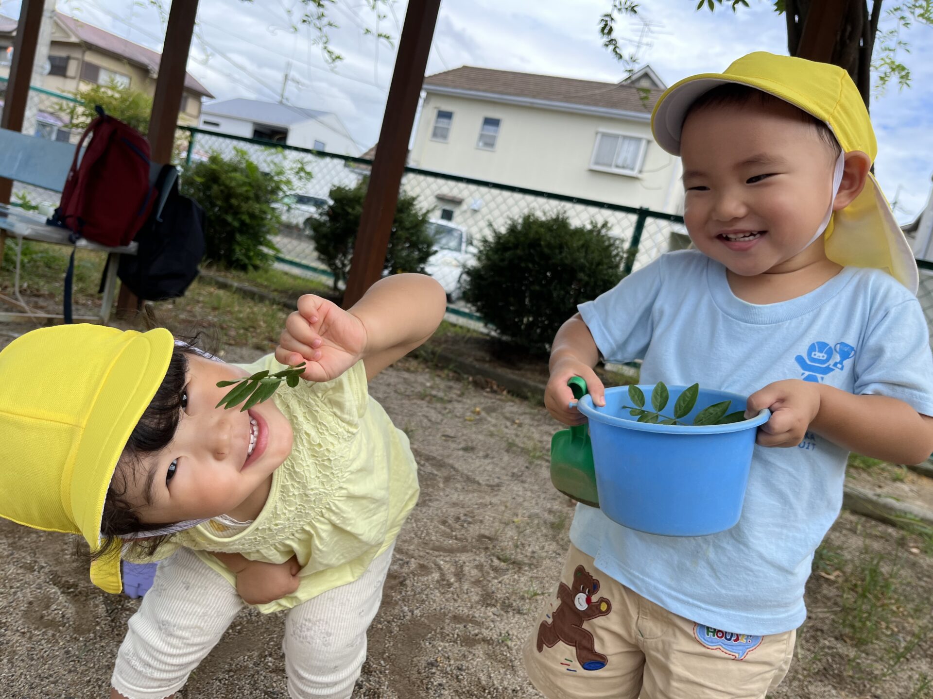 「葉っぱあったよ🎵」と嬉しそうに見せてくれた二人です🎵