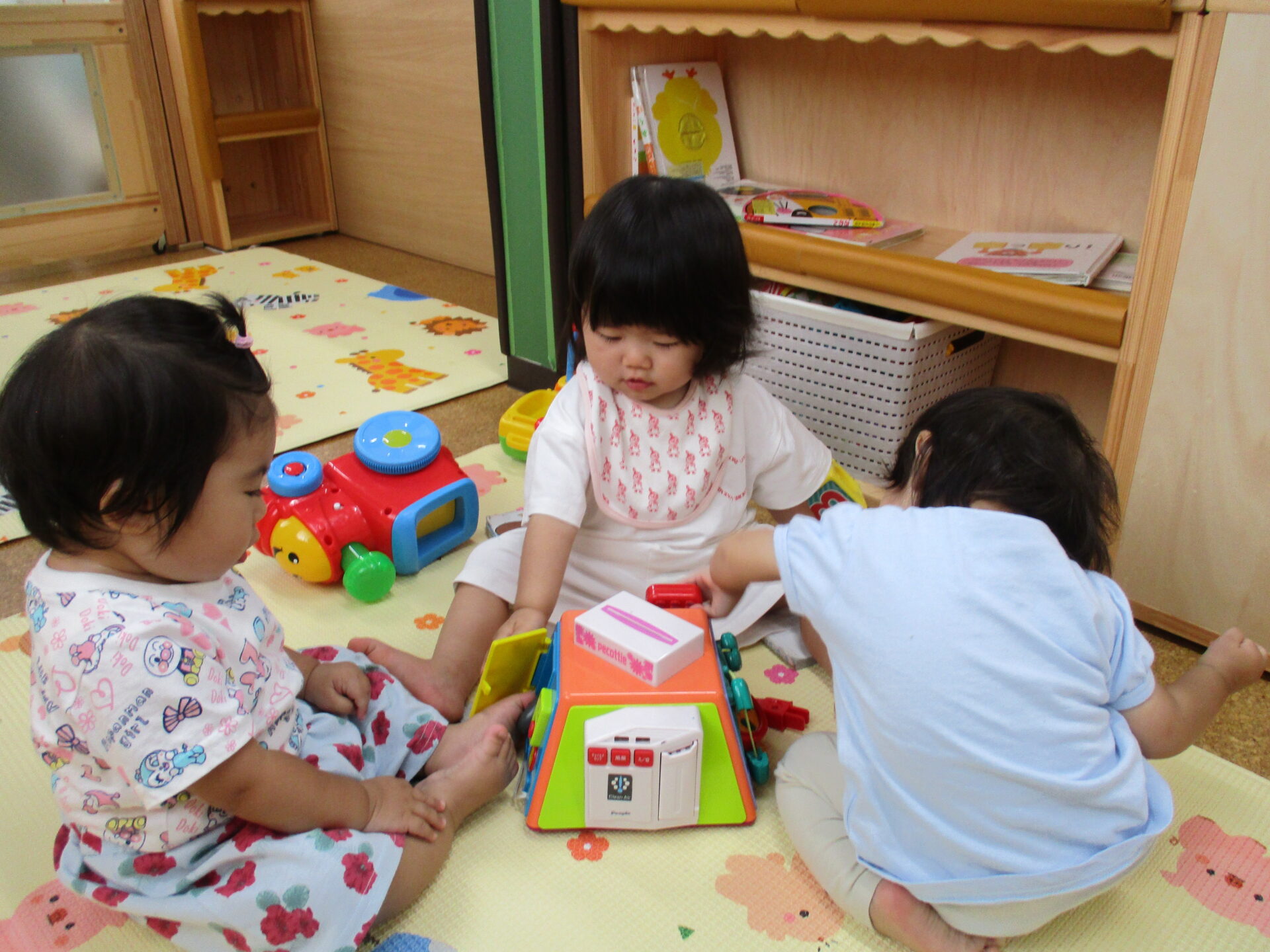 お友だちが遊び始めた玩具に興味津々で、”わたしも~💕”と言わんばかりに集まっていました(⌒∇⌒)