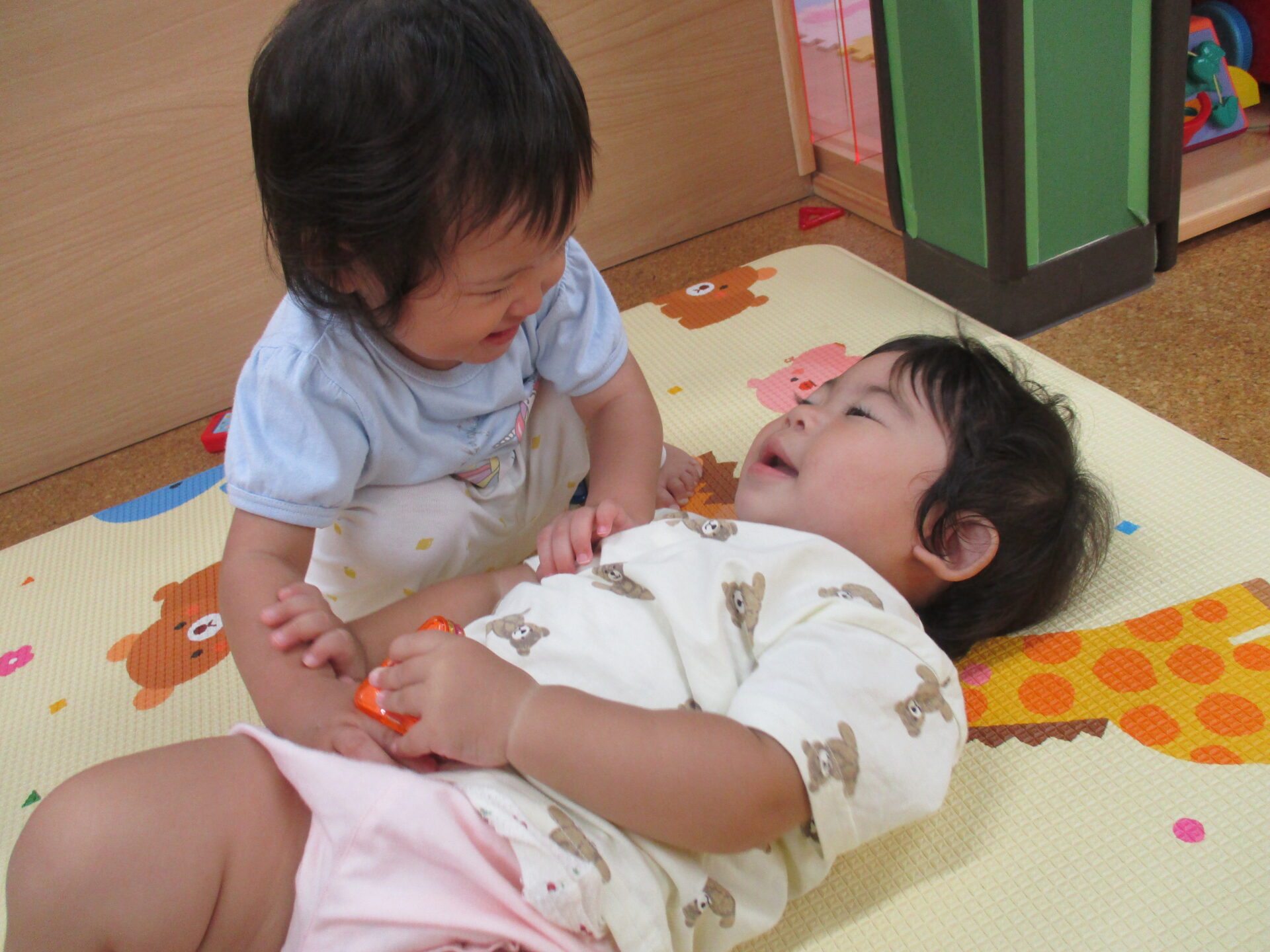 お友だちに興味津々(⌒∇⌒)💓(0歳児うみチーム)