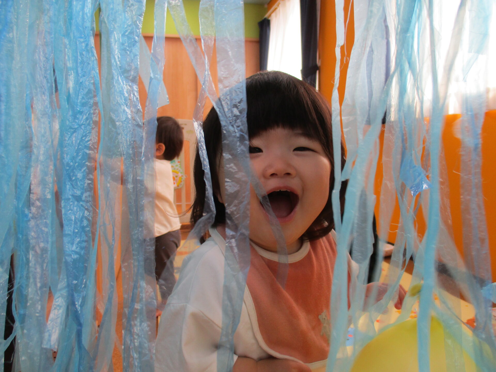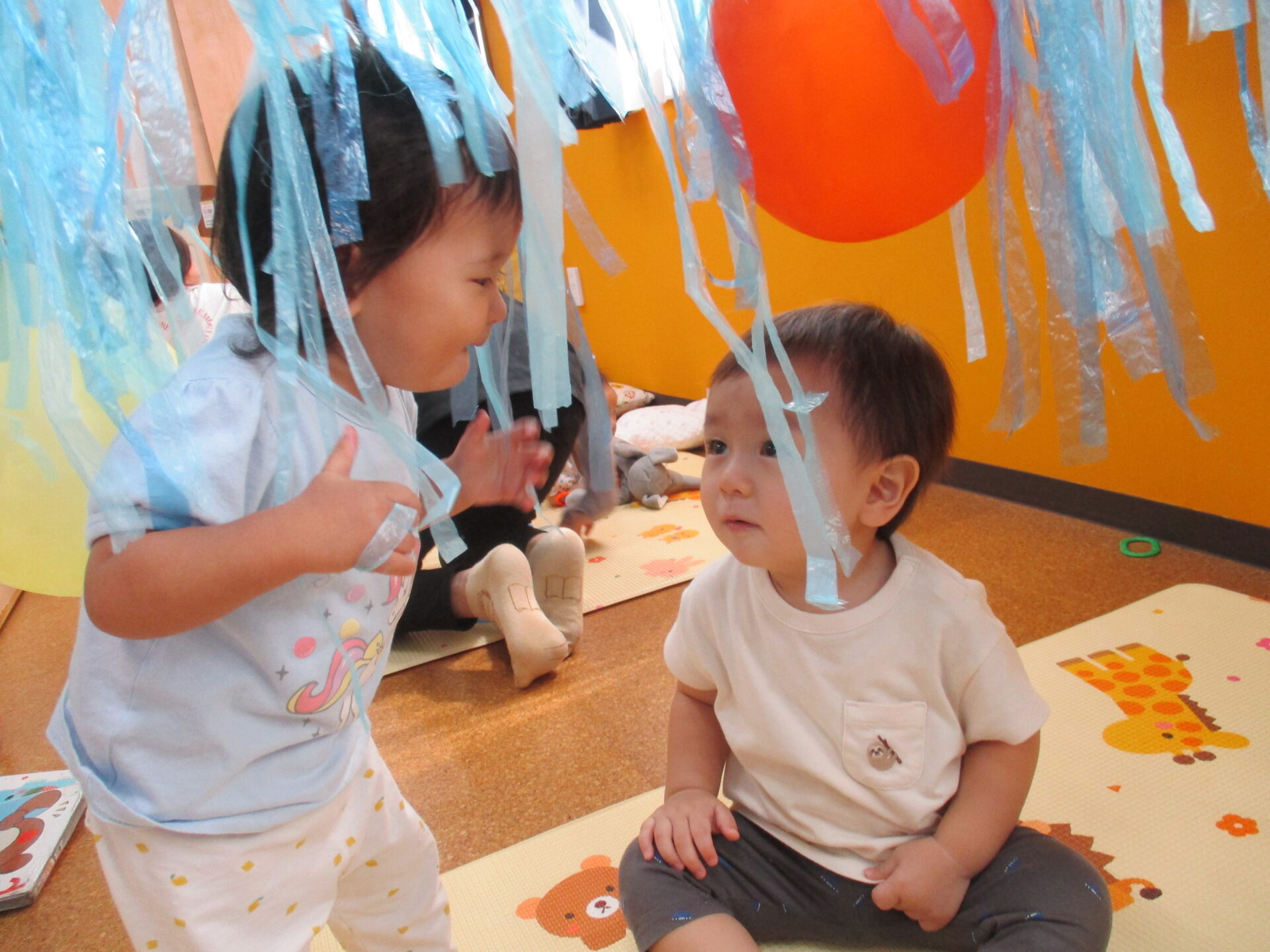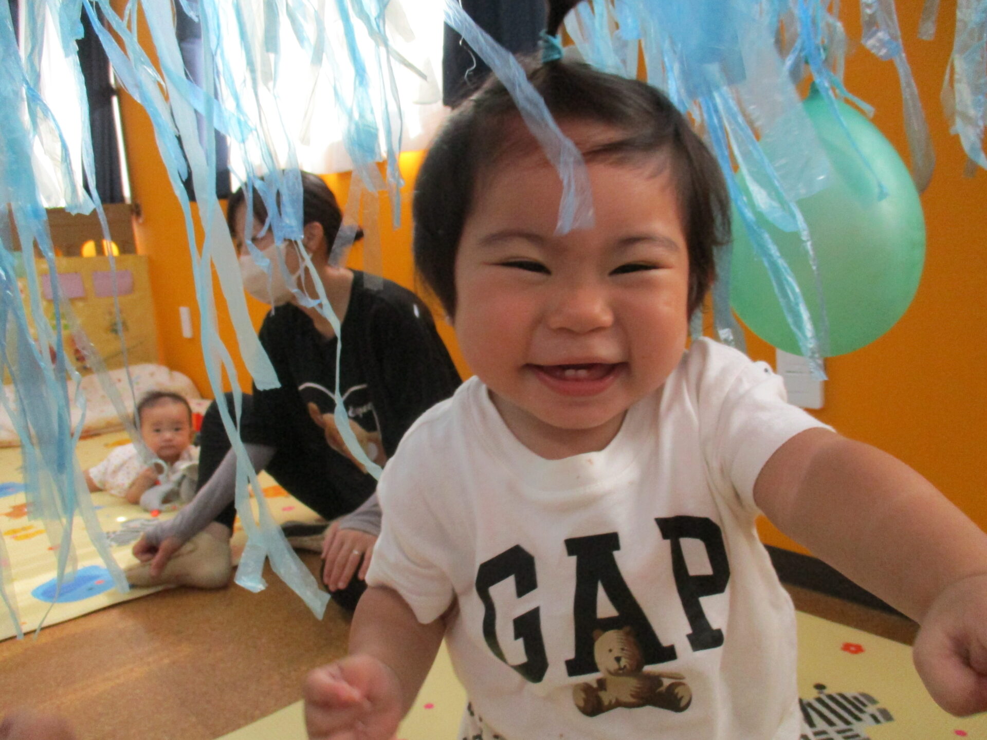 お部屋では、風船とスズランテープののれんをぶら下げて遊びました(^▽^)/