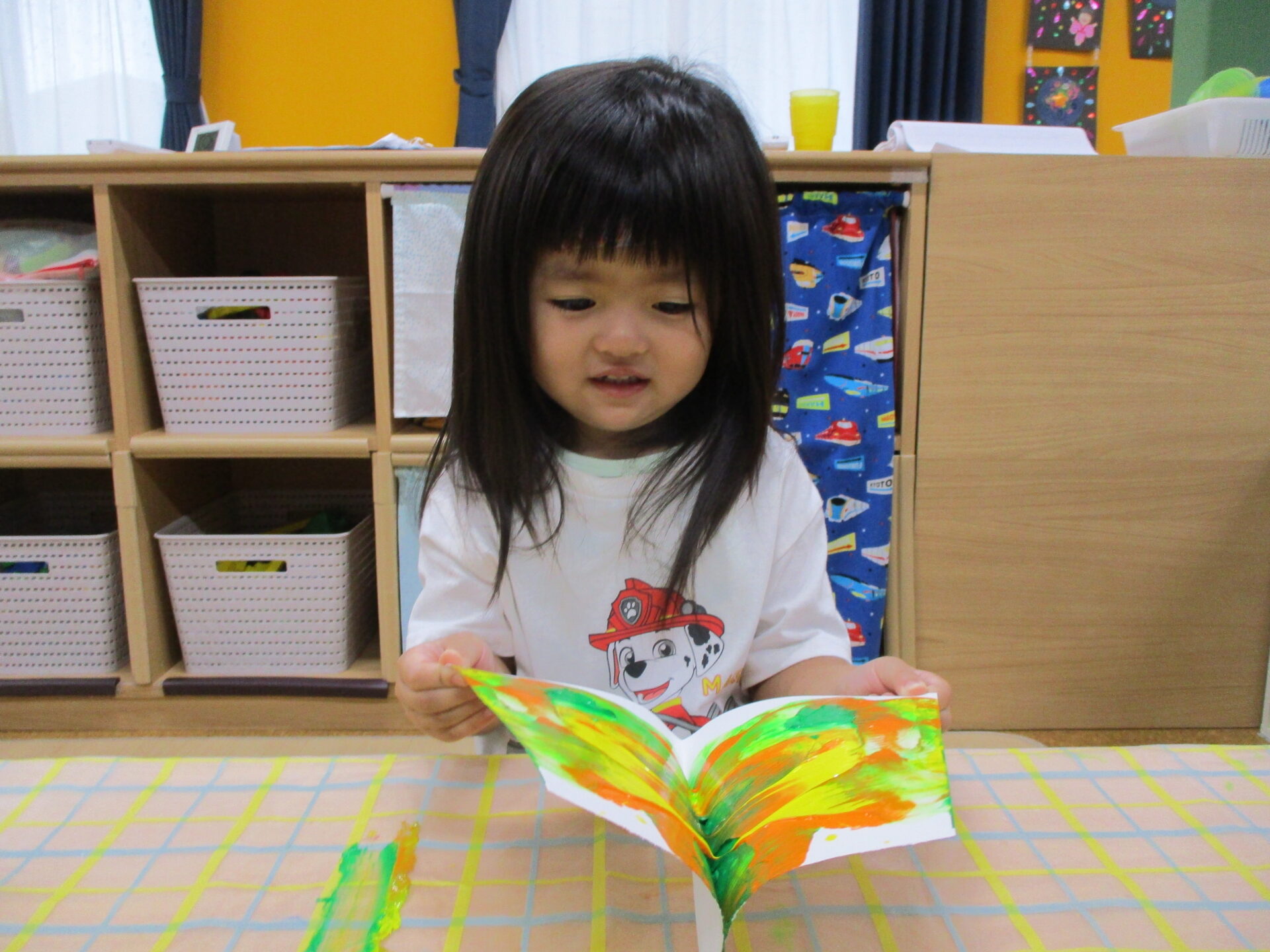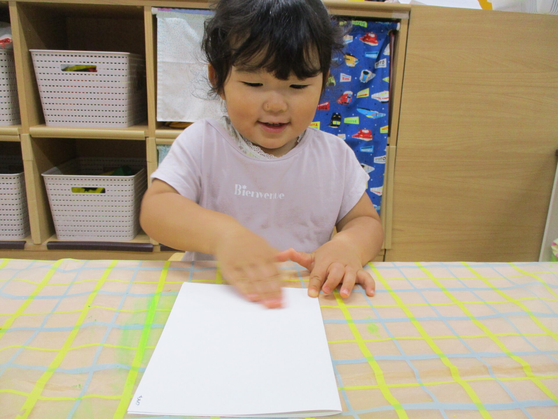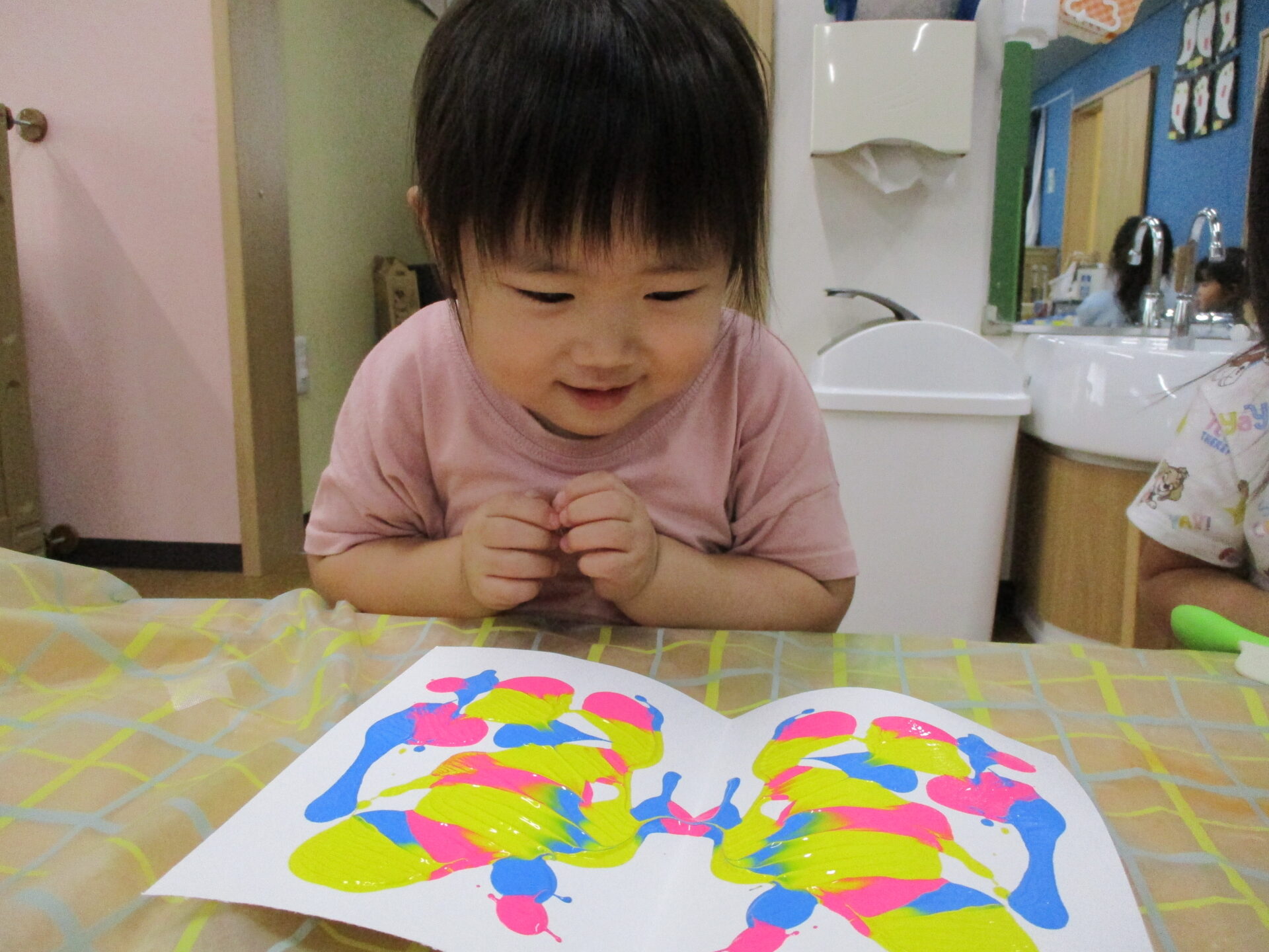 デカルコマニーに挑戦(^^)/(2歳児あめチーム)