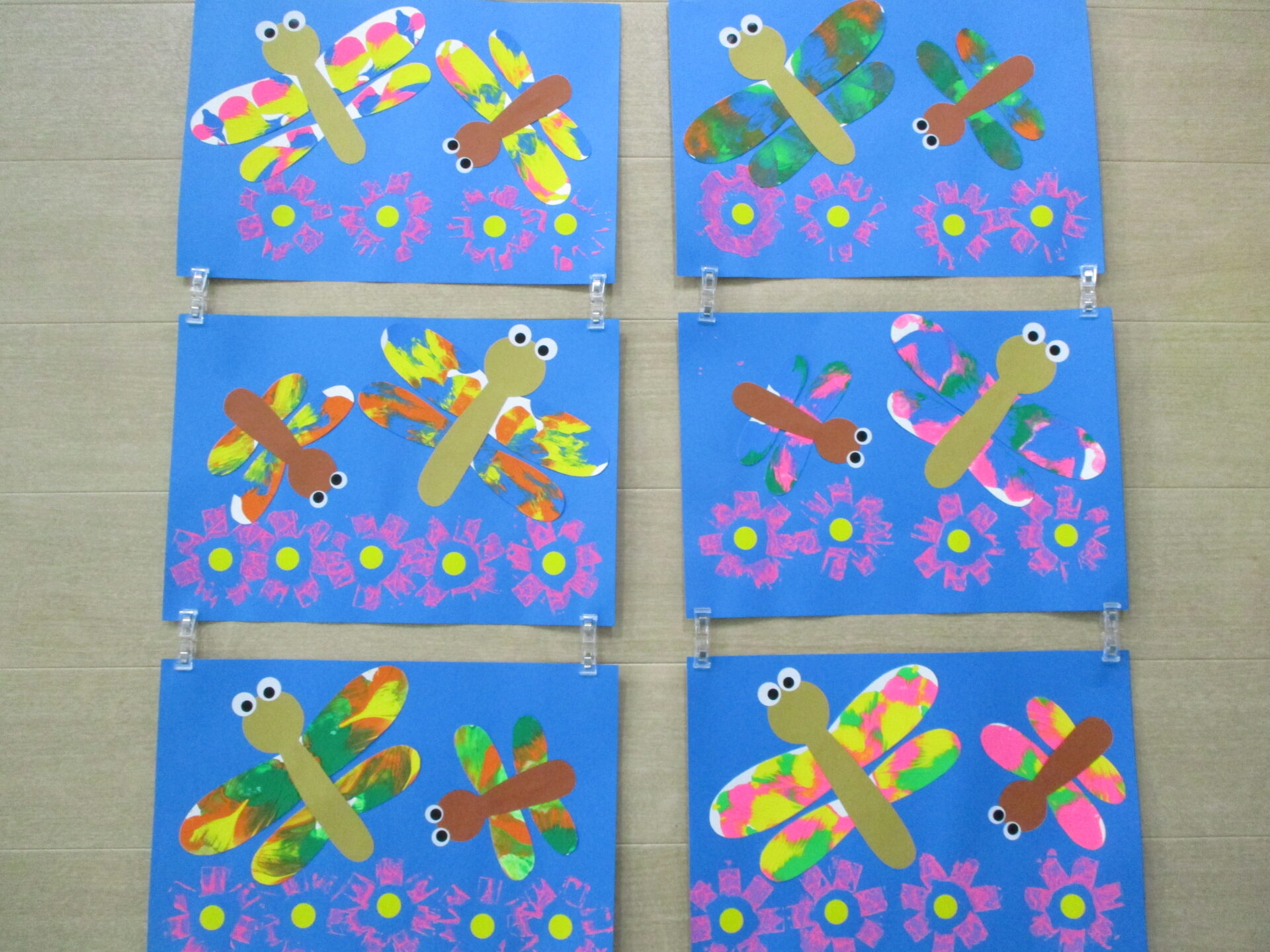 今回の作品は、とんぼに大変身して、保育室に飾っています。