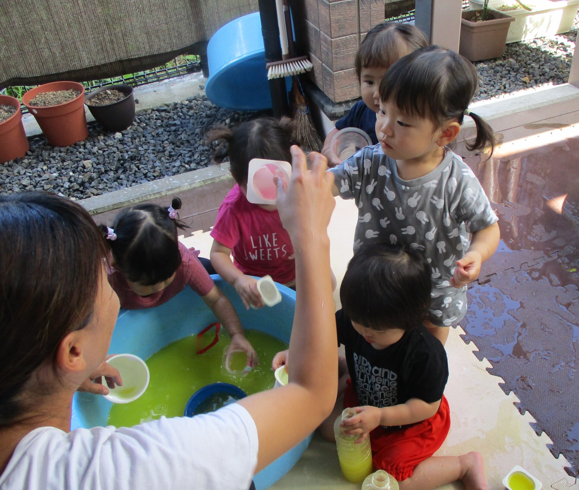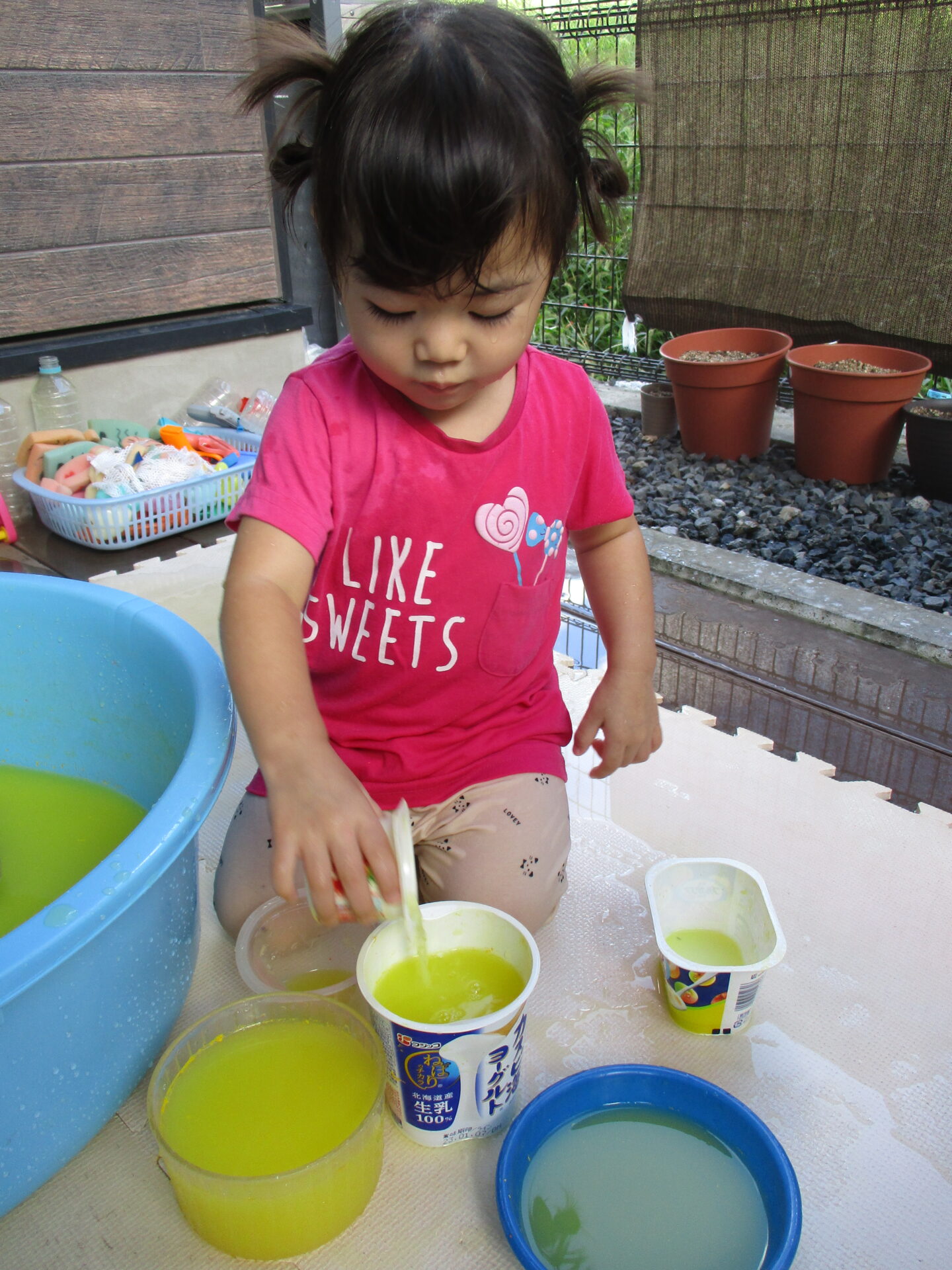 初めての色水遊び(^^)/(1歳児だいちチーム)