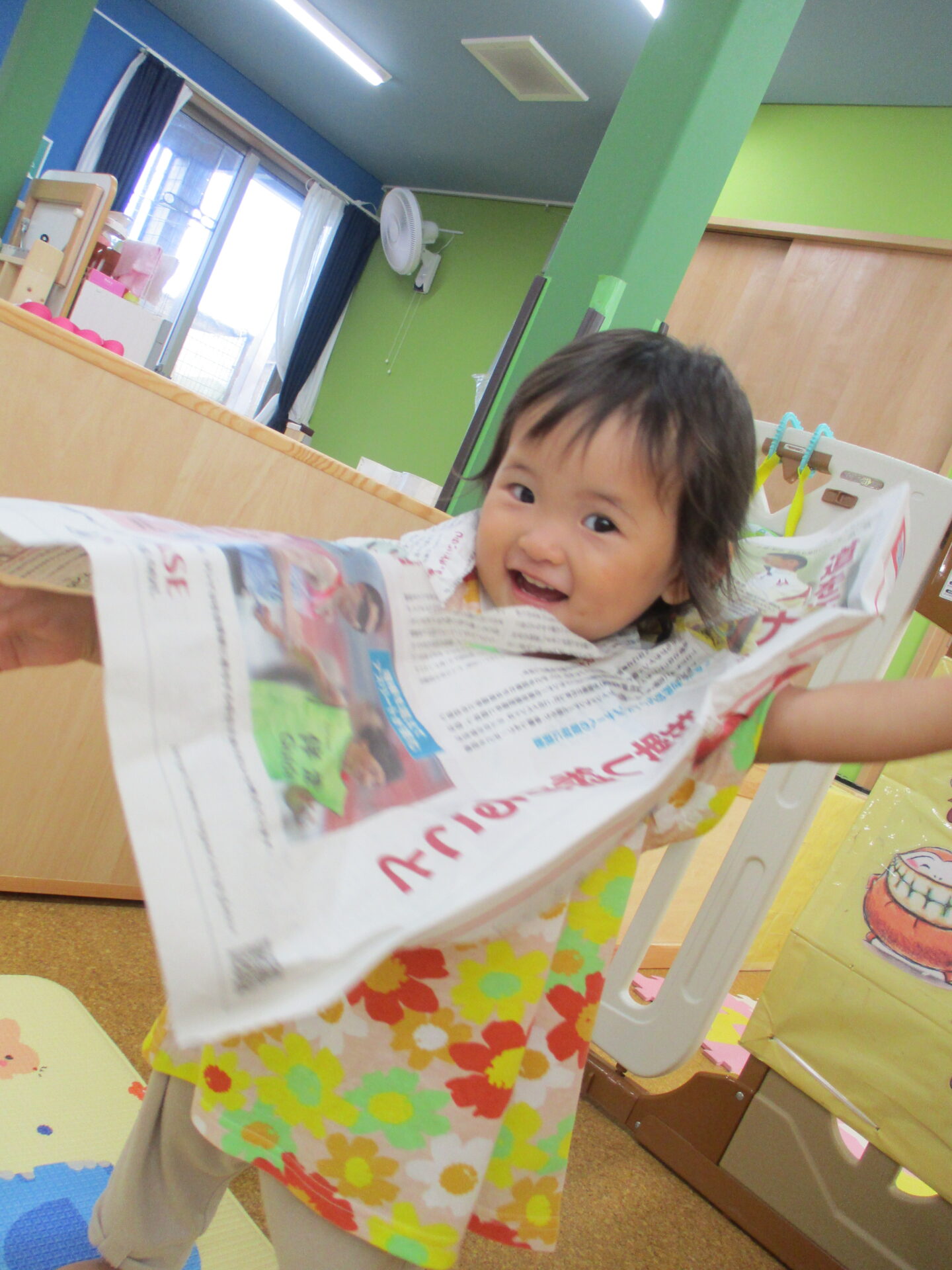 新聞紙の魅力は、破ったり、丸めたり、見立てたり…色々な遊び方ができるところです👌