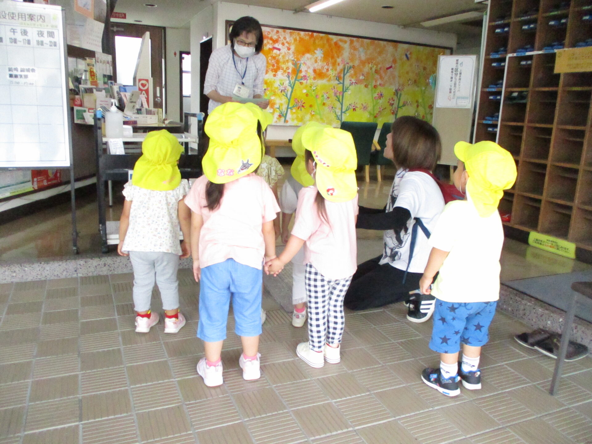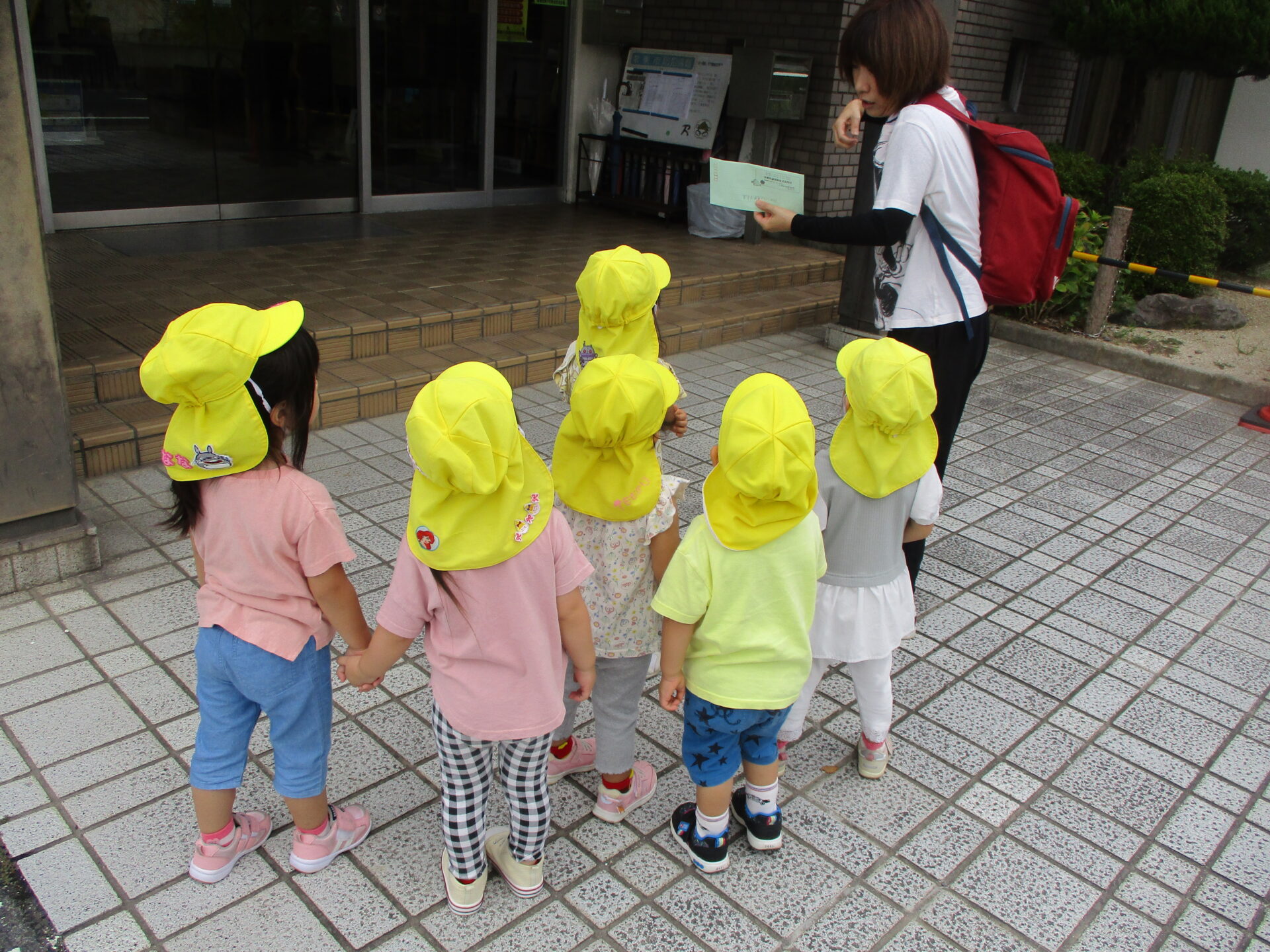 避難訓練後、あめチームの子どもたちが保育園の代表で、コミュニティセンター治田まで、芋堀りの申し込みの手紙を持って行ってくれました😊