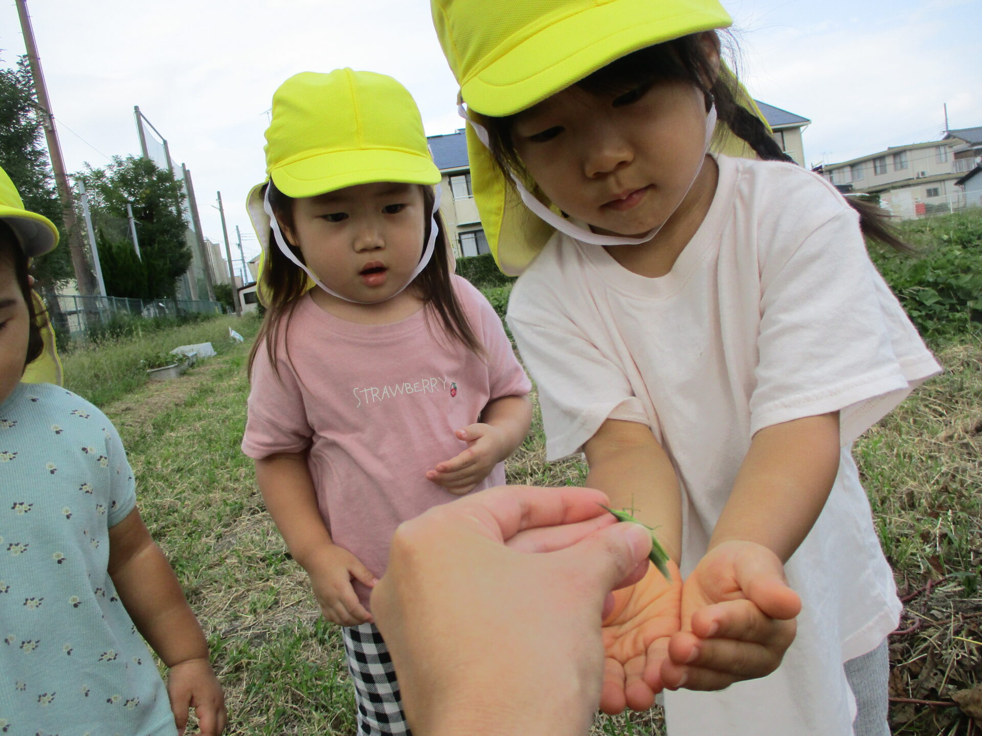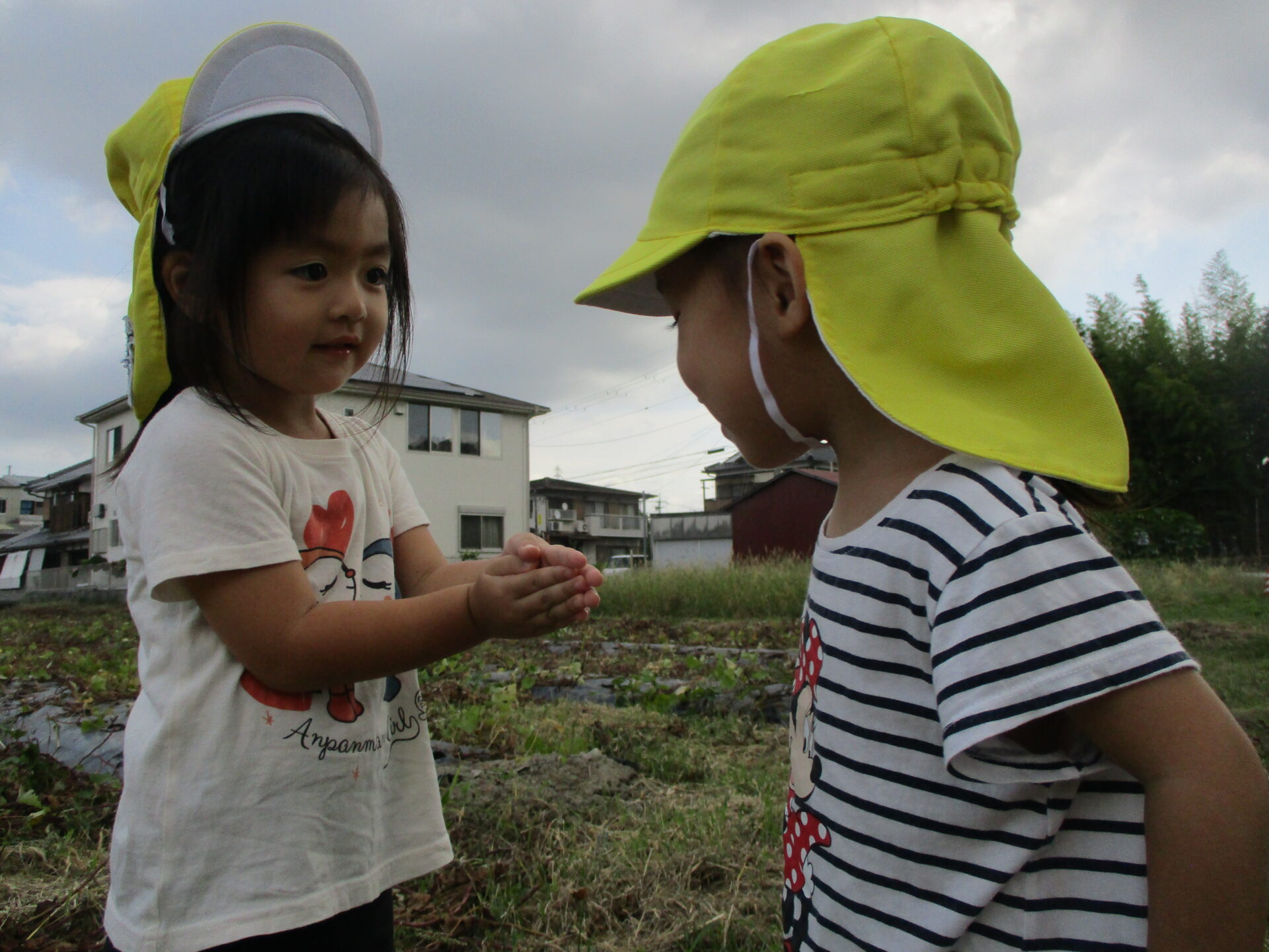 「バッタ、つかまえたよ💕」「すごい!!見せて💕」と、子どもたち同士のやりとりが、かわいいです💕