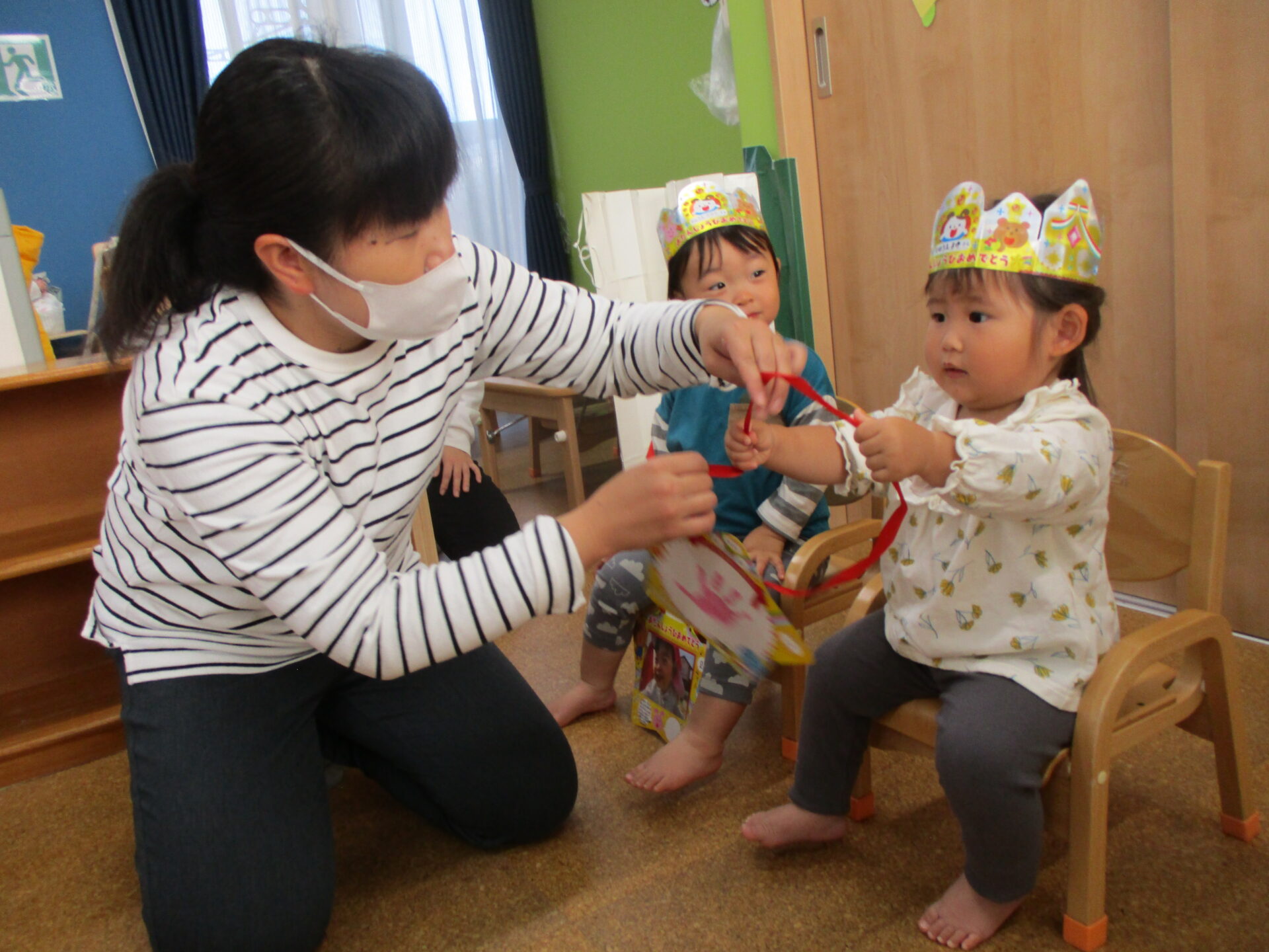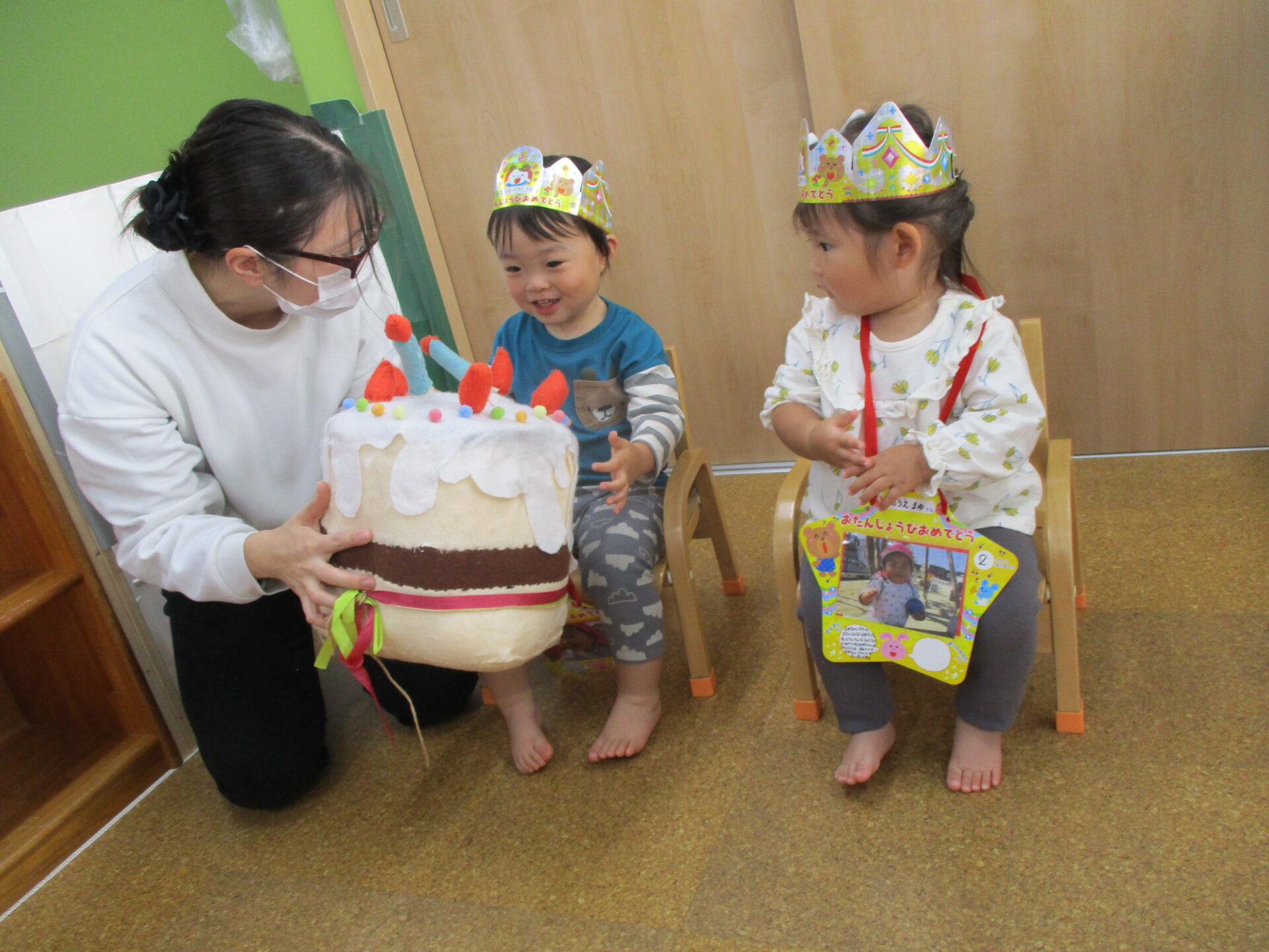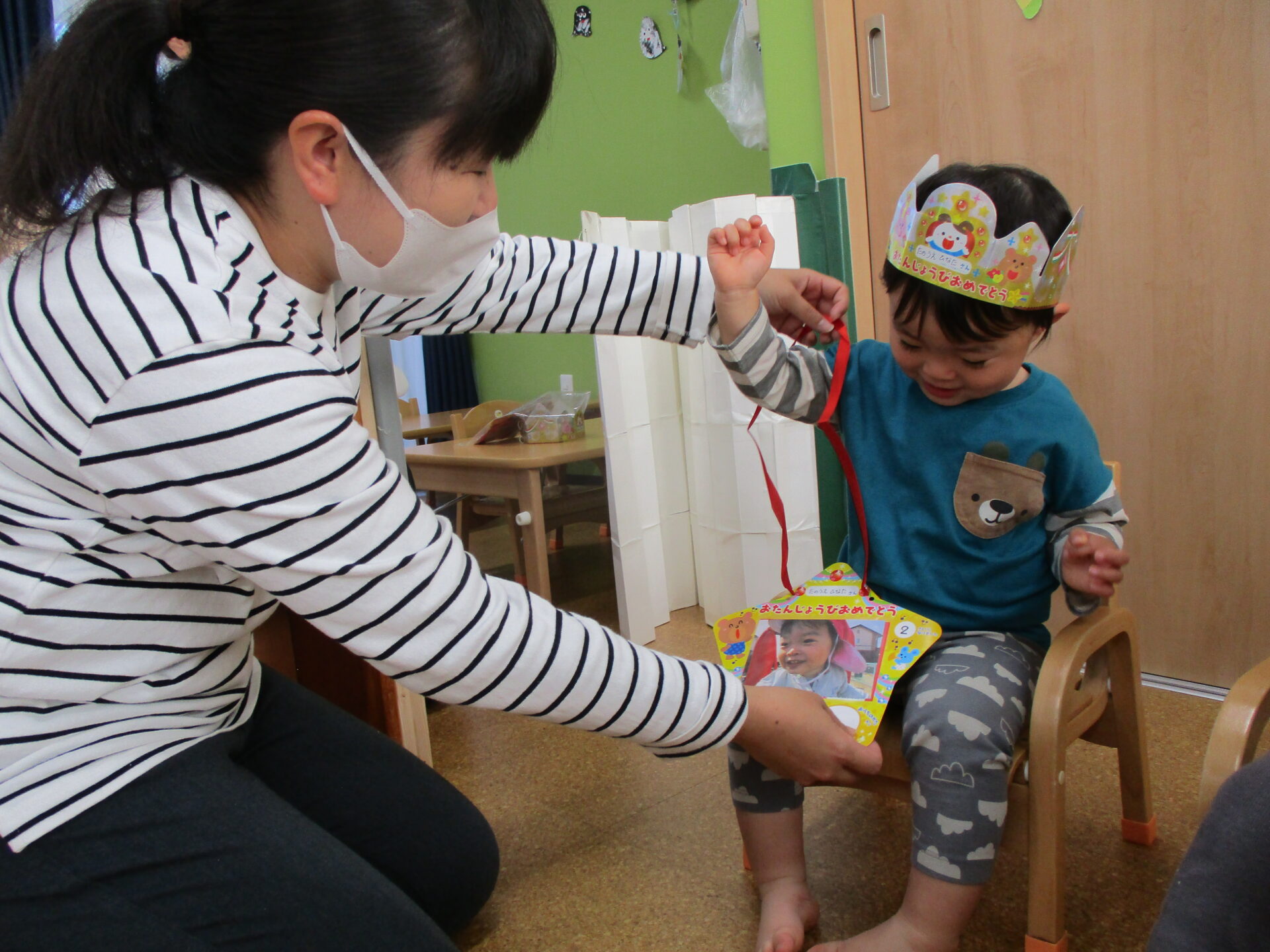 次は、担任の先生からかんむりと誕生日カードのプレゼントをもらいました👑