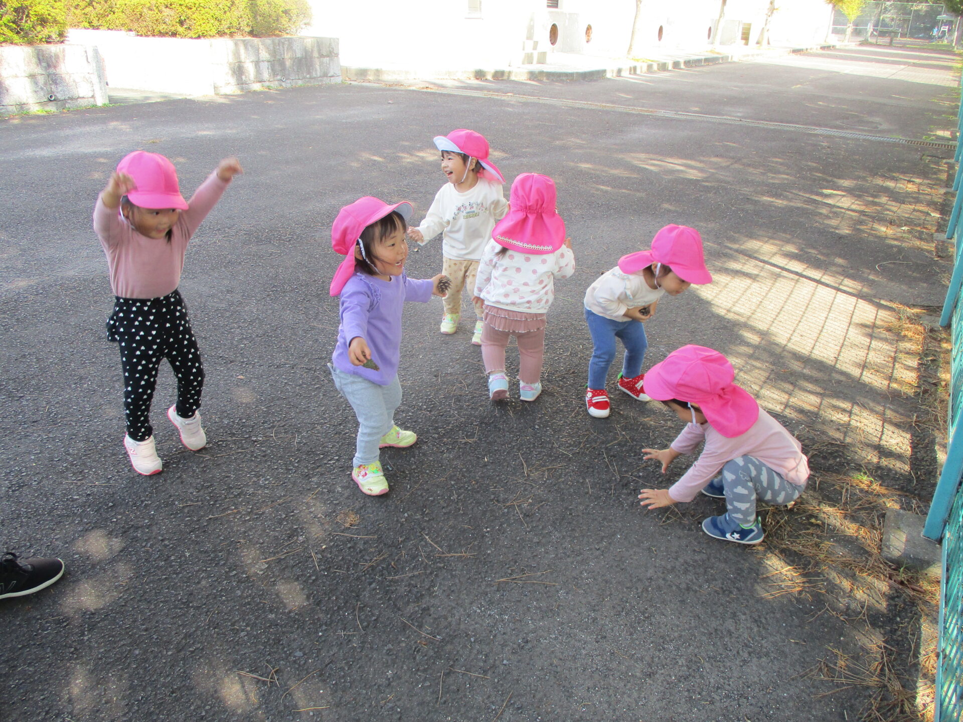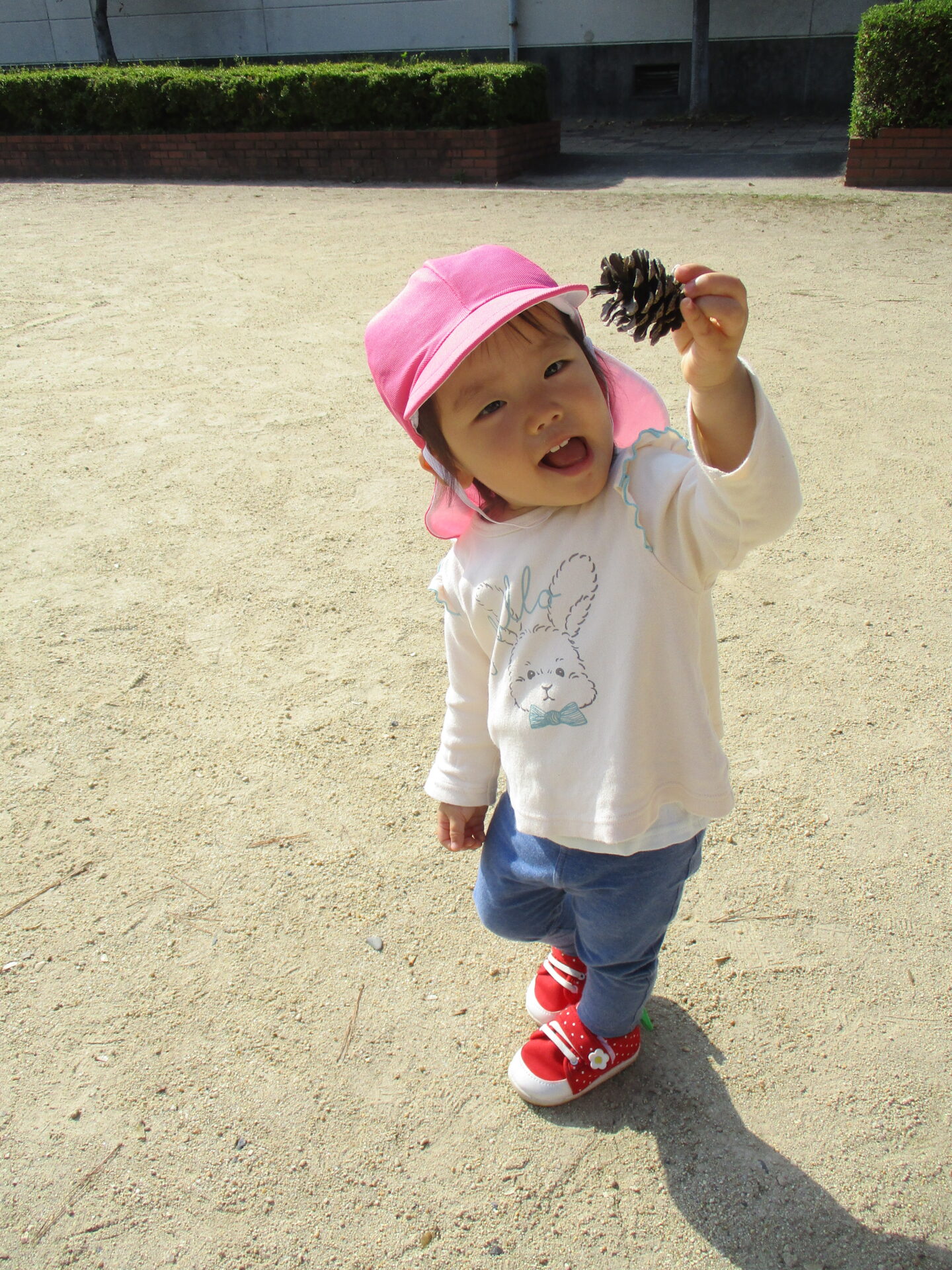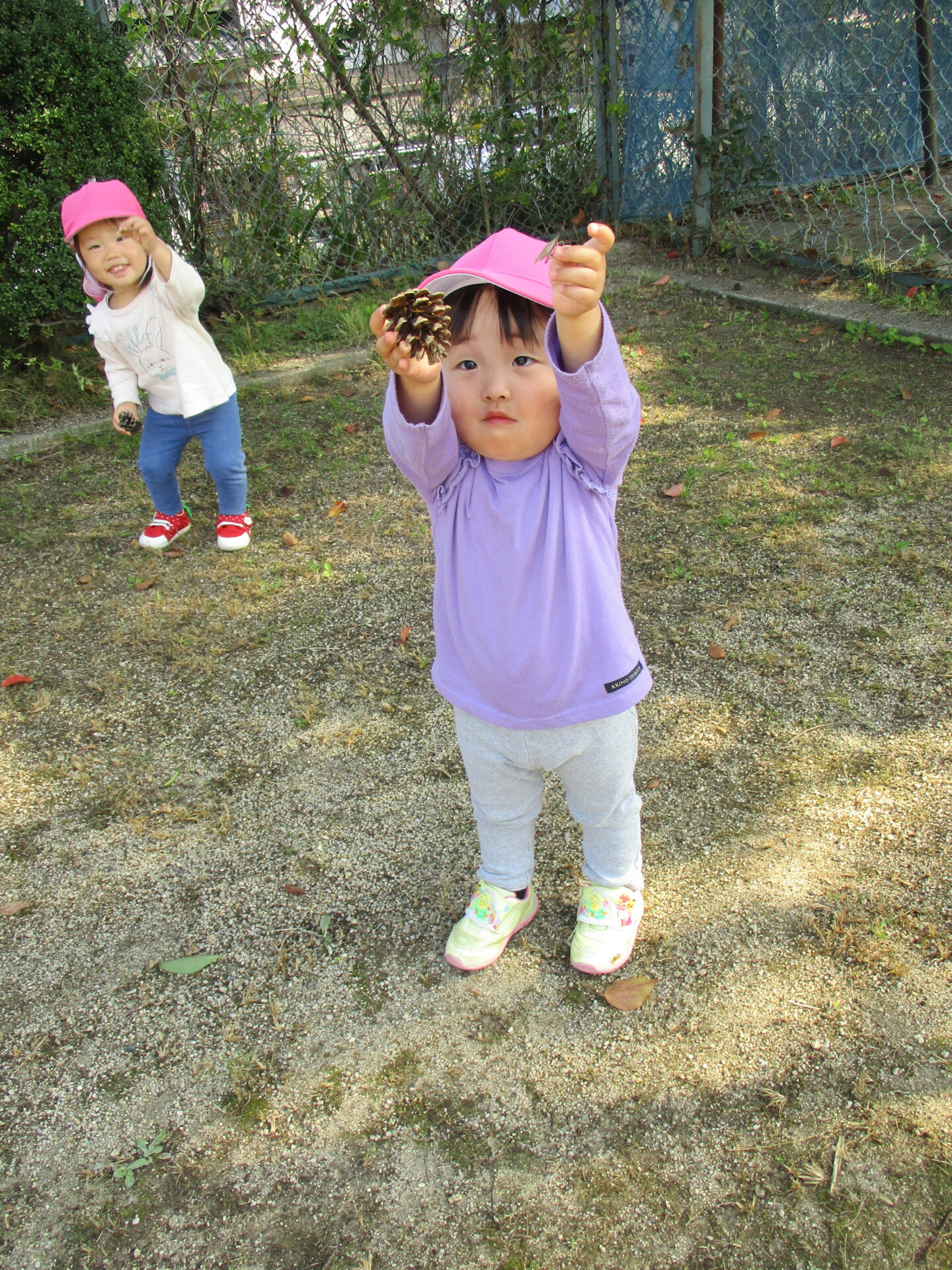 「まつぼっくりあったよ~💕」大事そうに持ち歩いていました(⌒∇⌒)