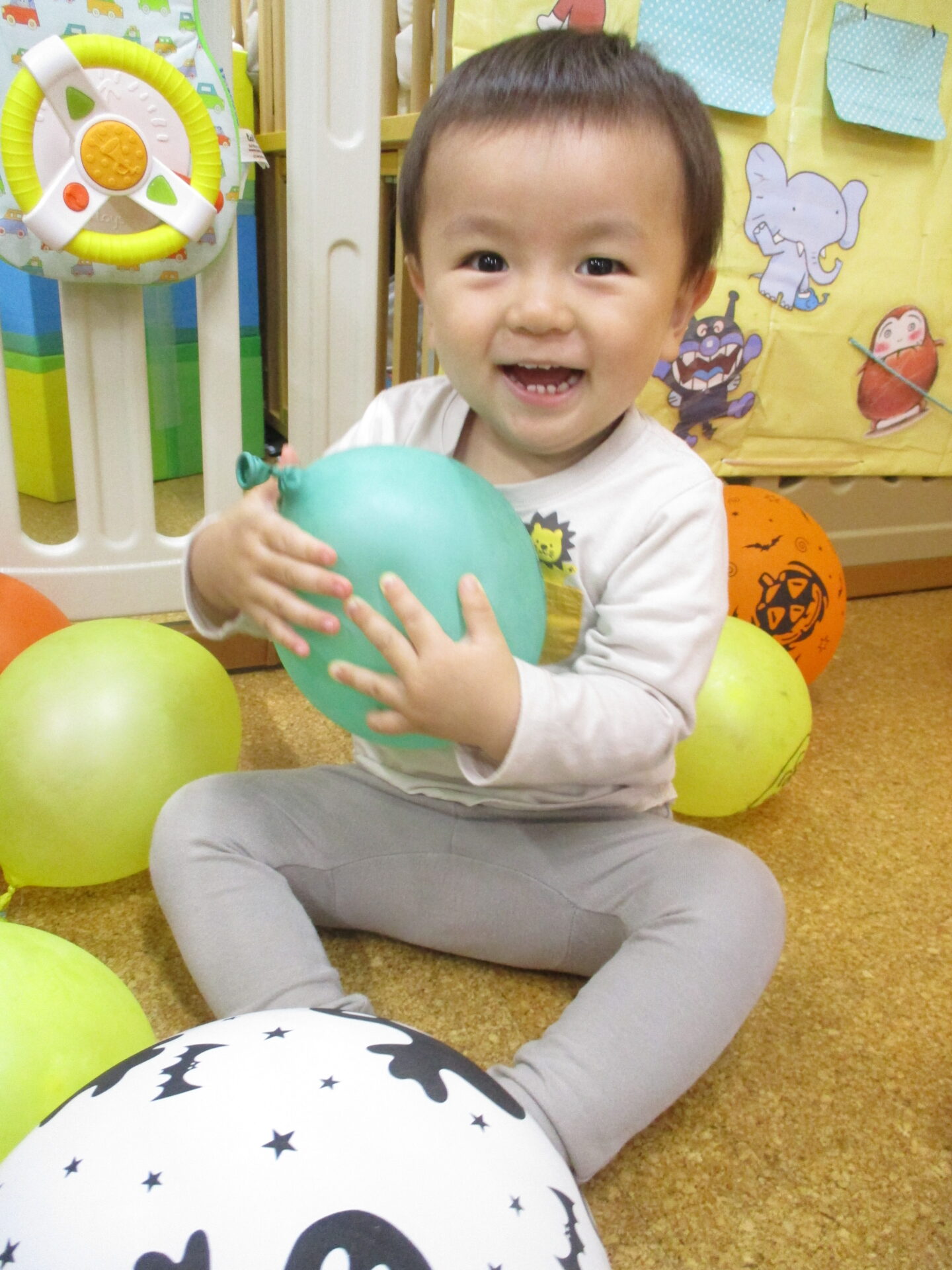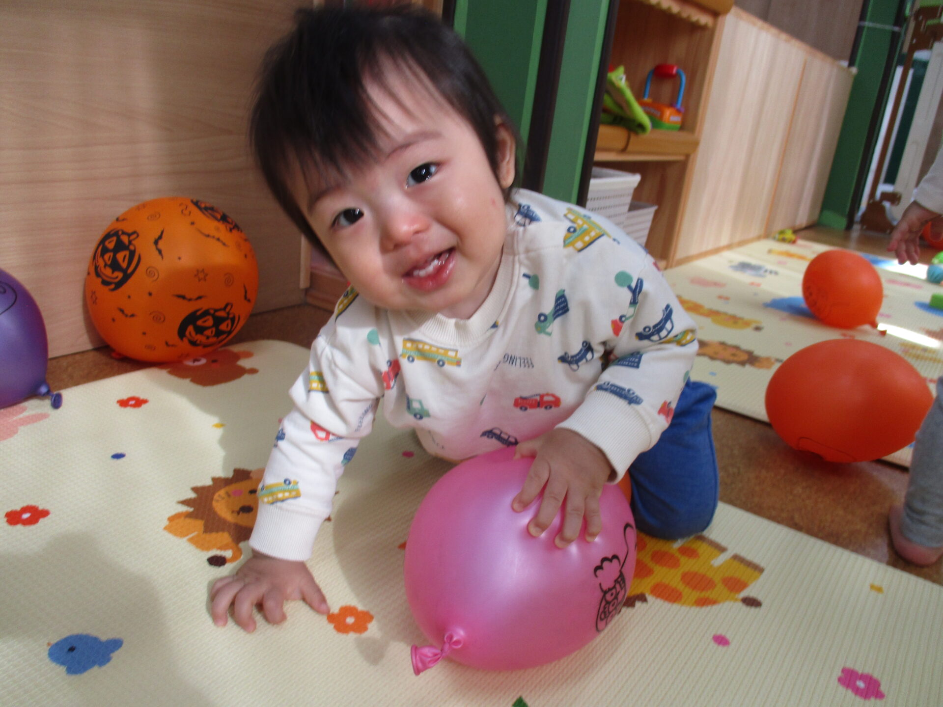 たくさんの風船が保育室に広がると、目を輝かせていた子どもたちです✨