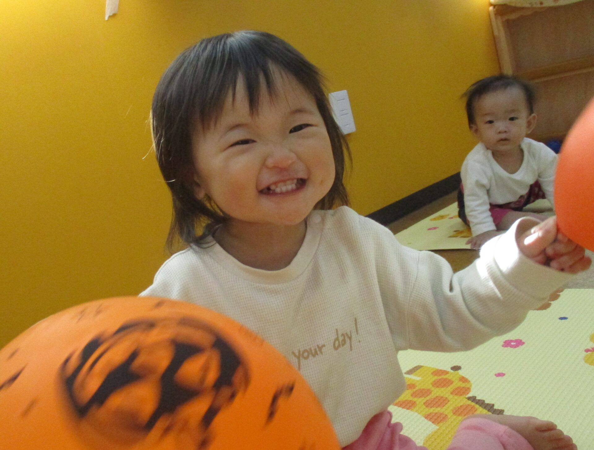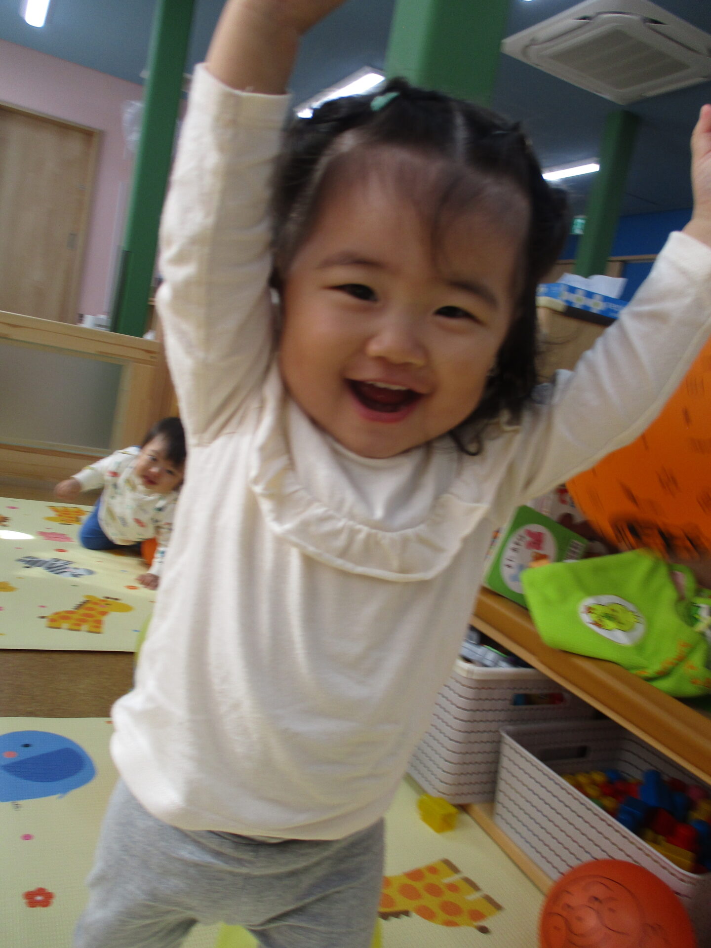 お家の方と離れて、涙する姿もありますが、まわりの友達へ興味をもちながら、やわらかい表情で過ごせるようになってきました✨