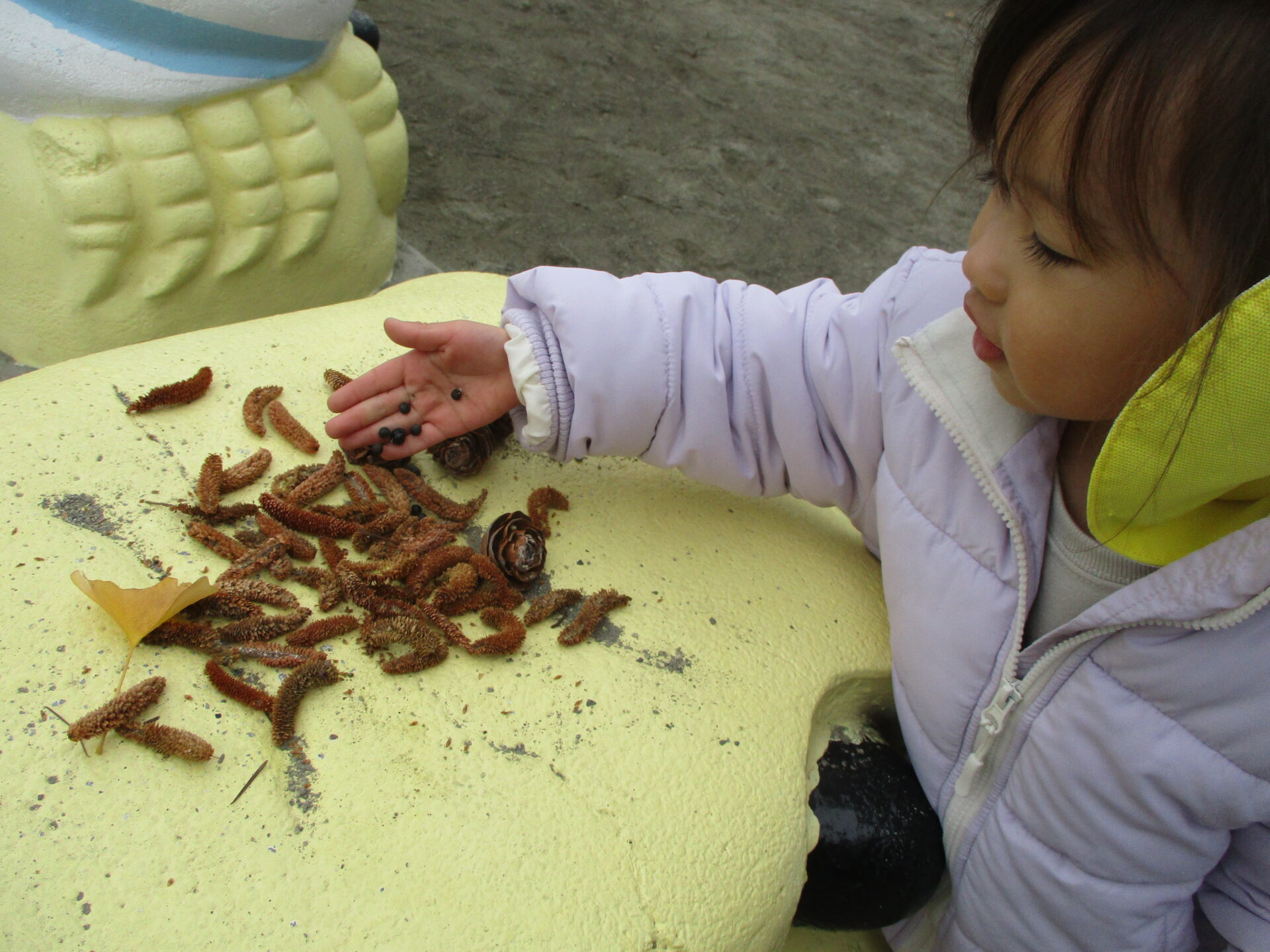 木の実など、色々な自然物を発見!!あめチームみんなで盛り上がって集めます😊