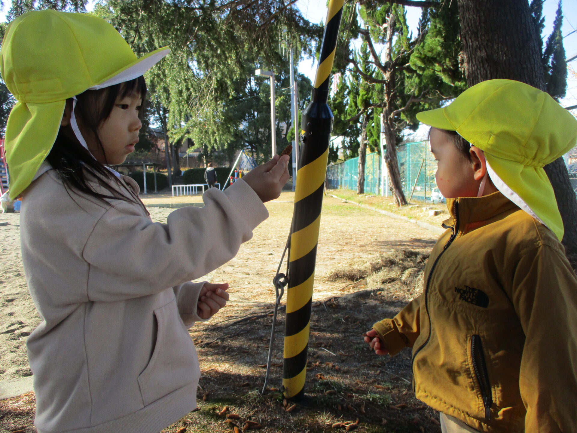遊び始める前に、保育者が遊具や敷地の安全確認をし、危険の無いように子どもたちといくつかの約束をします。