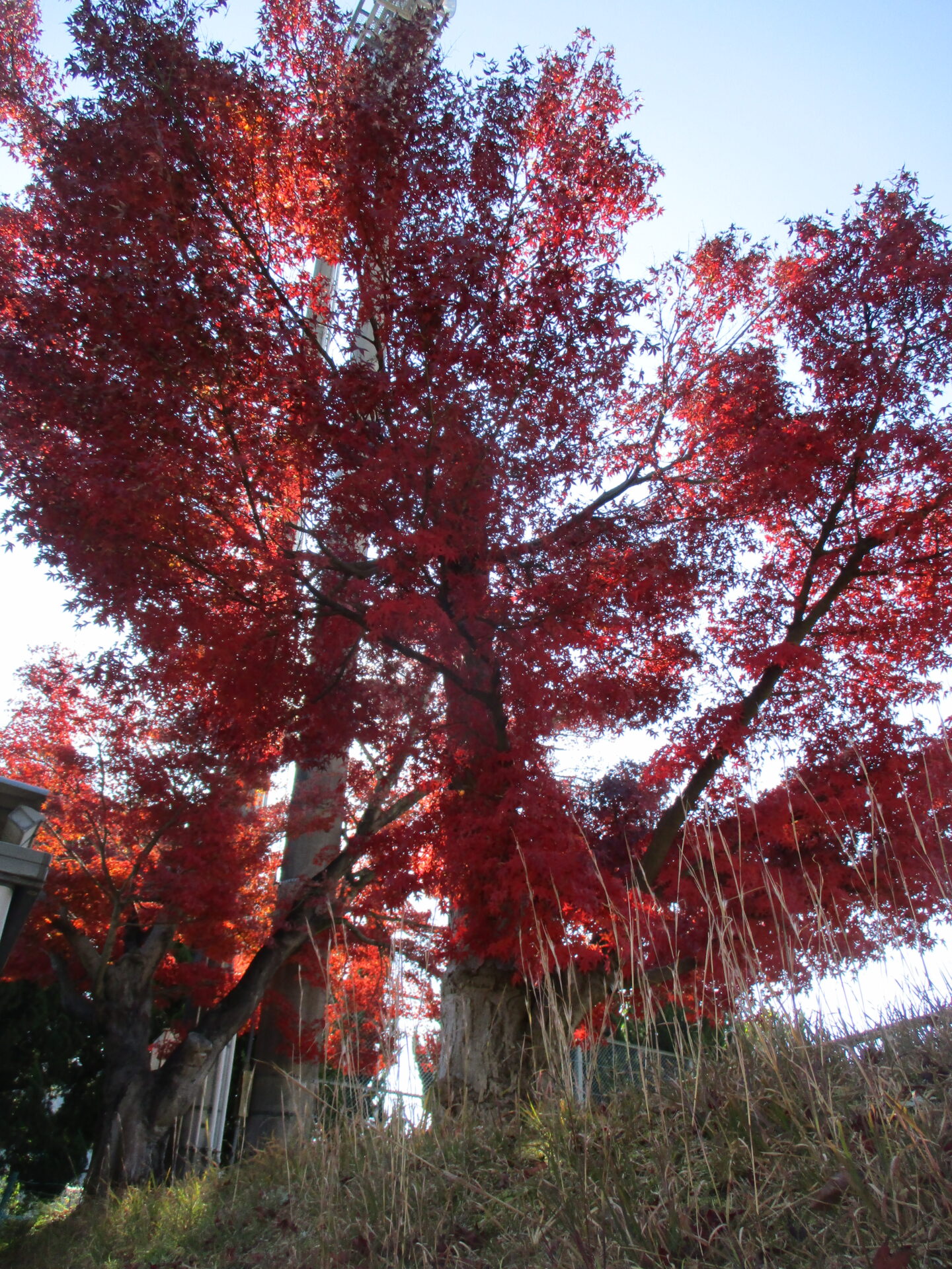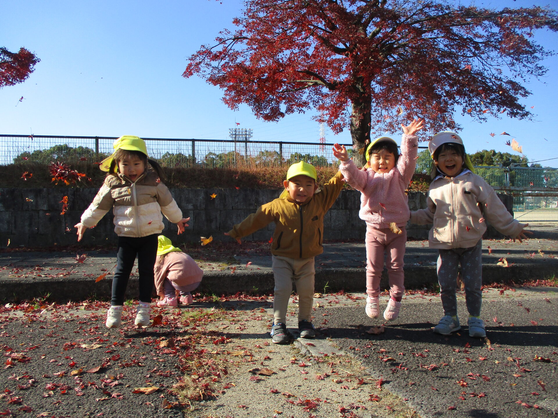 落ち葉を集めて、それー!!と空へ紅葉を舞わせます⤴⤴
