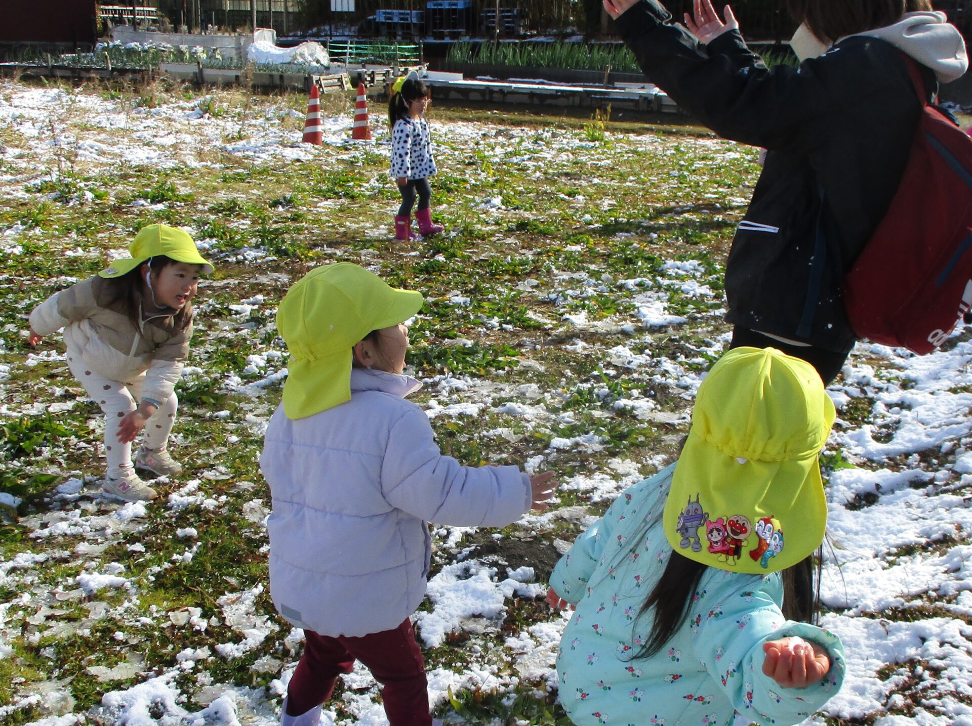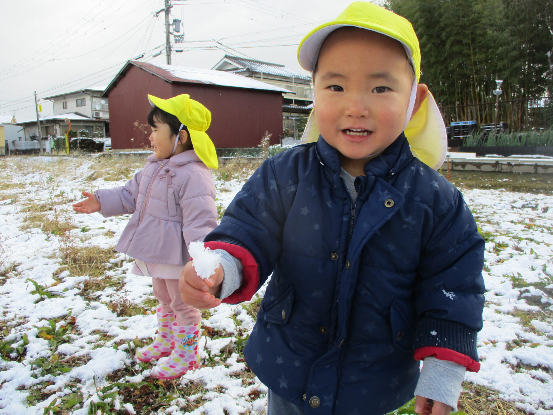 以前から「雪が積もってほしいな♪」と、話をしていたあめチームの子どもたち😊
