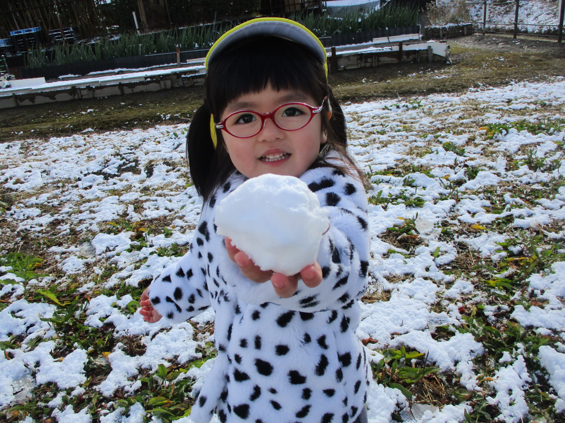 「みて!!、雪が丸くなったよ💕」と嬉しそうに見せてくれました😊