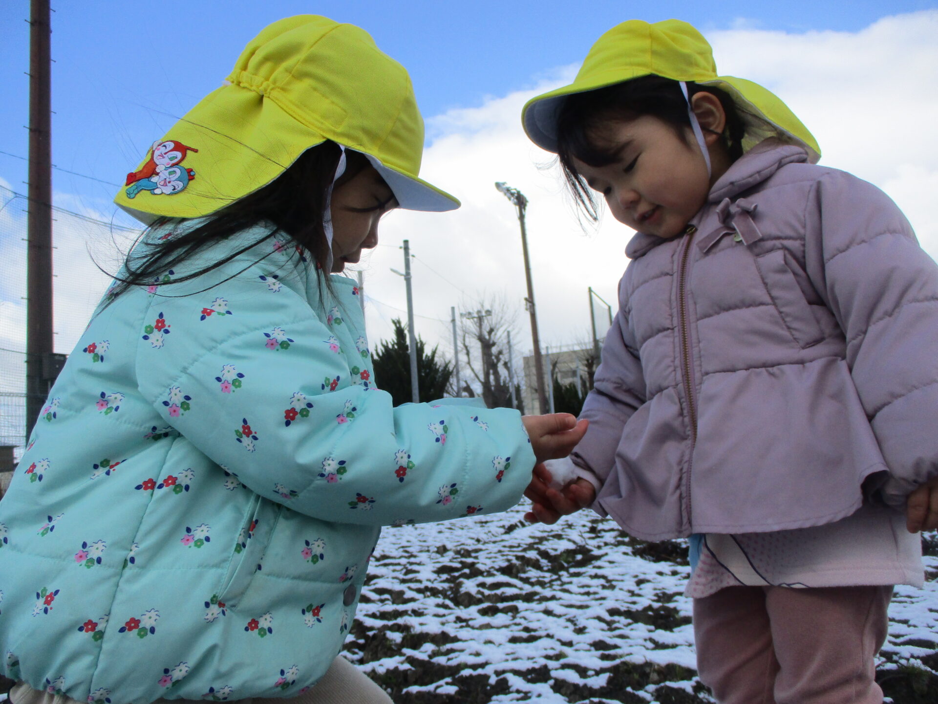 すくった雪を「あげる💕」と、お友達におすそ分けする優しい姿も😊💕