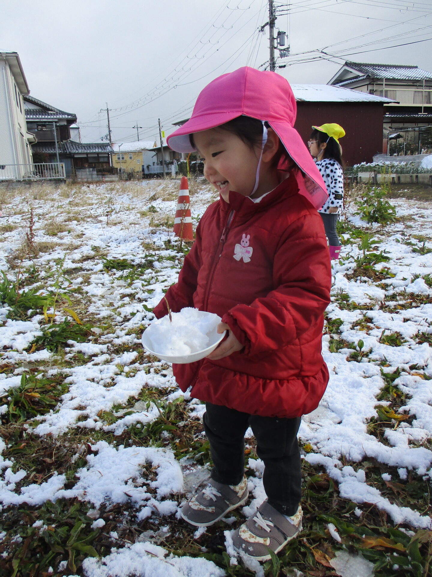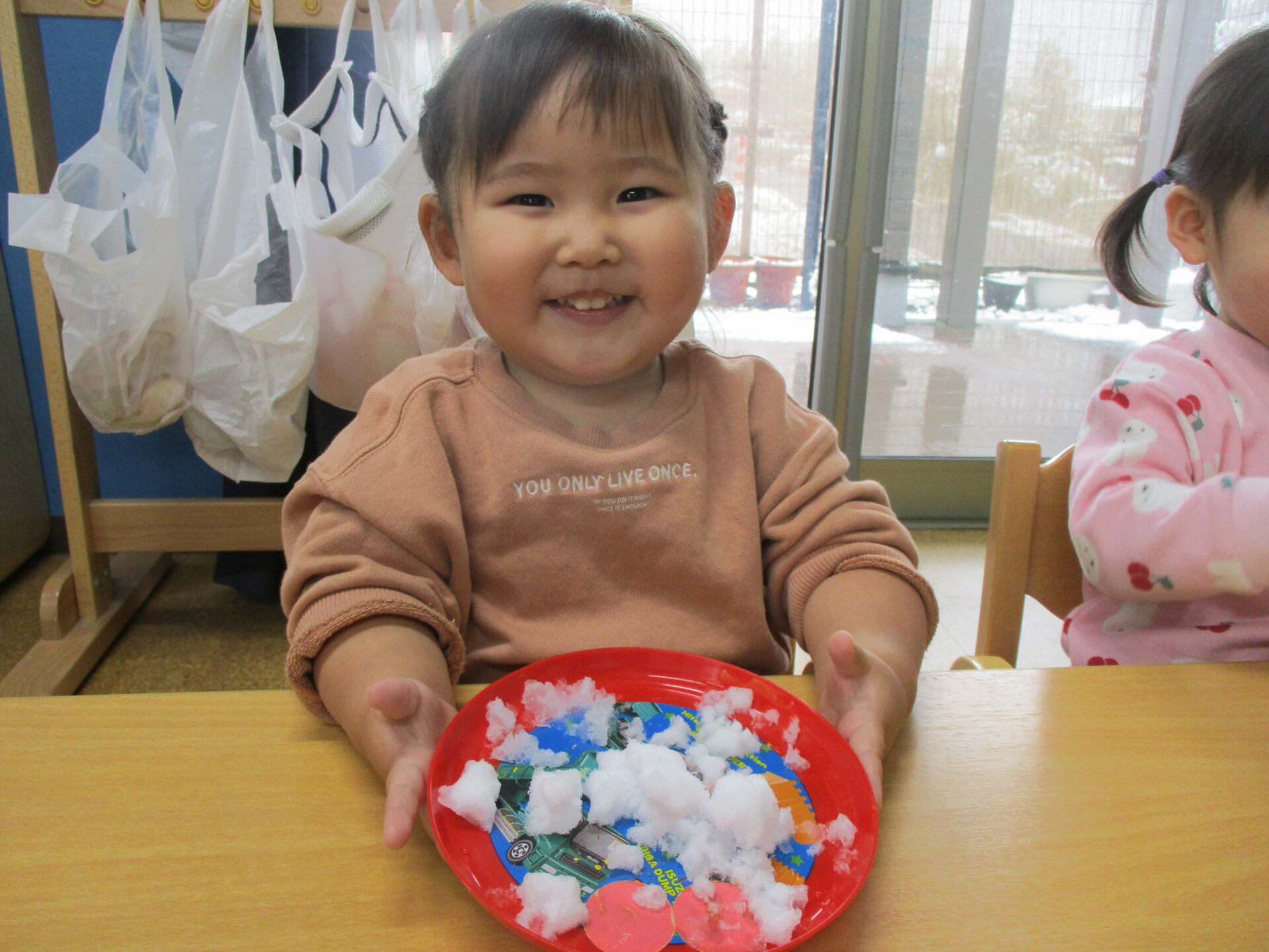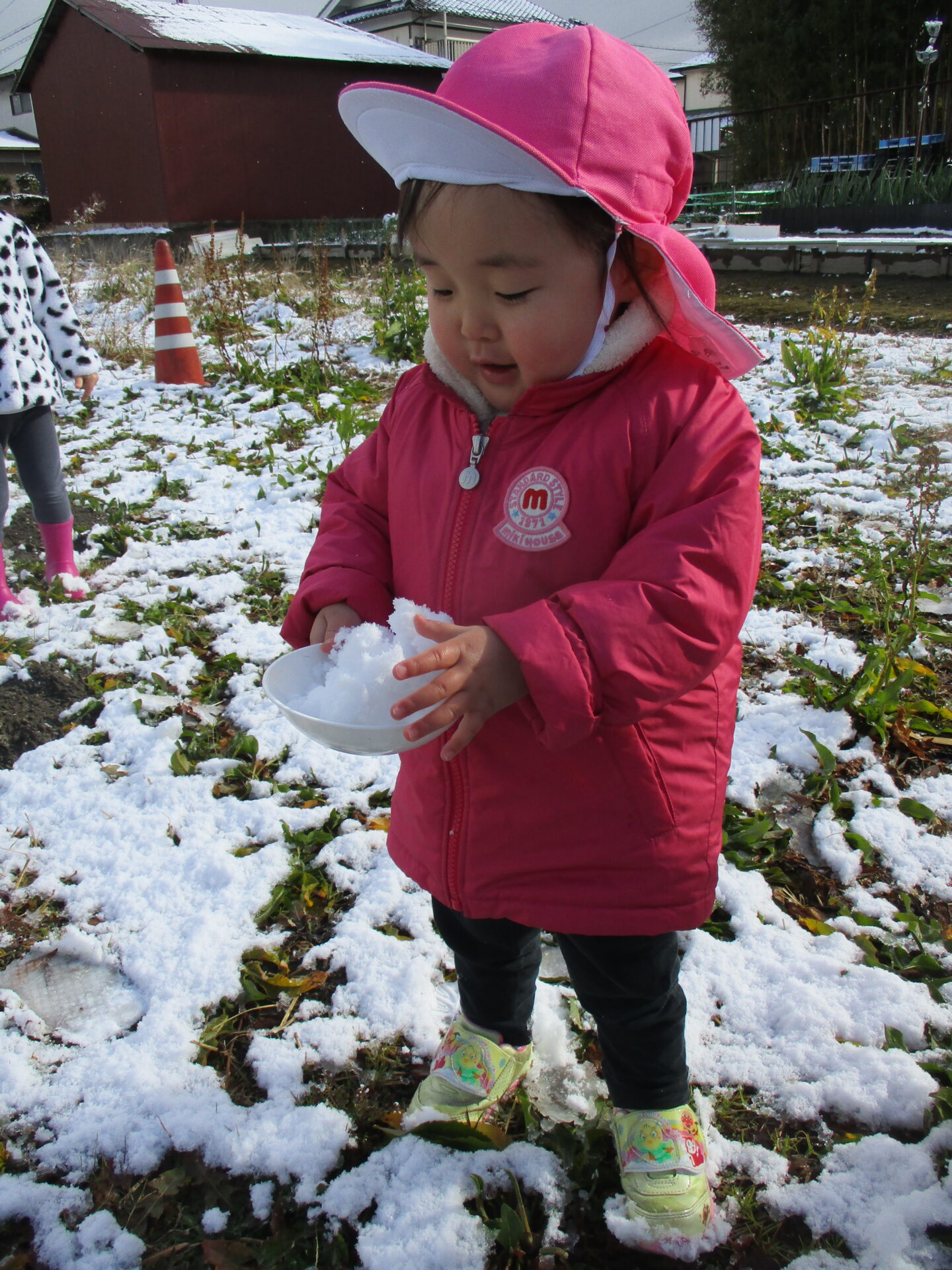 保育者と小さい雪だるまを作り、「わぁ~💕」と、目を輝かせていました😊✨