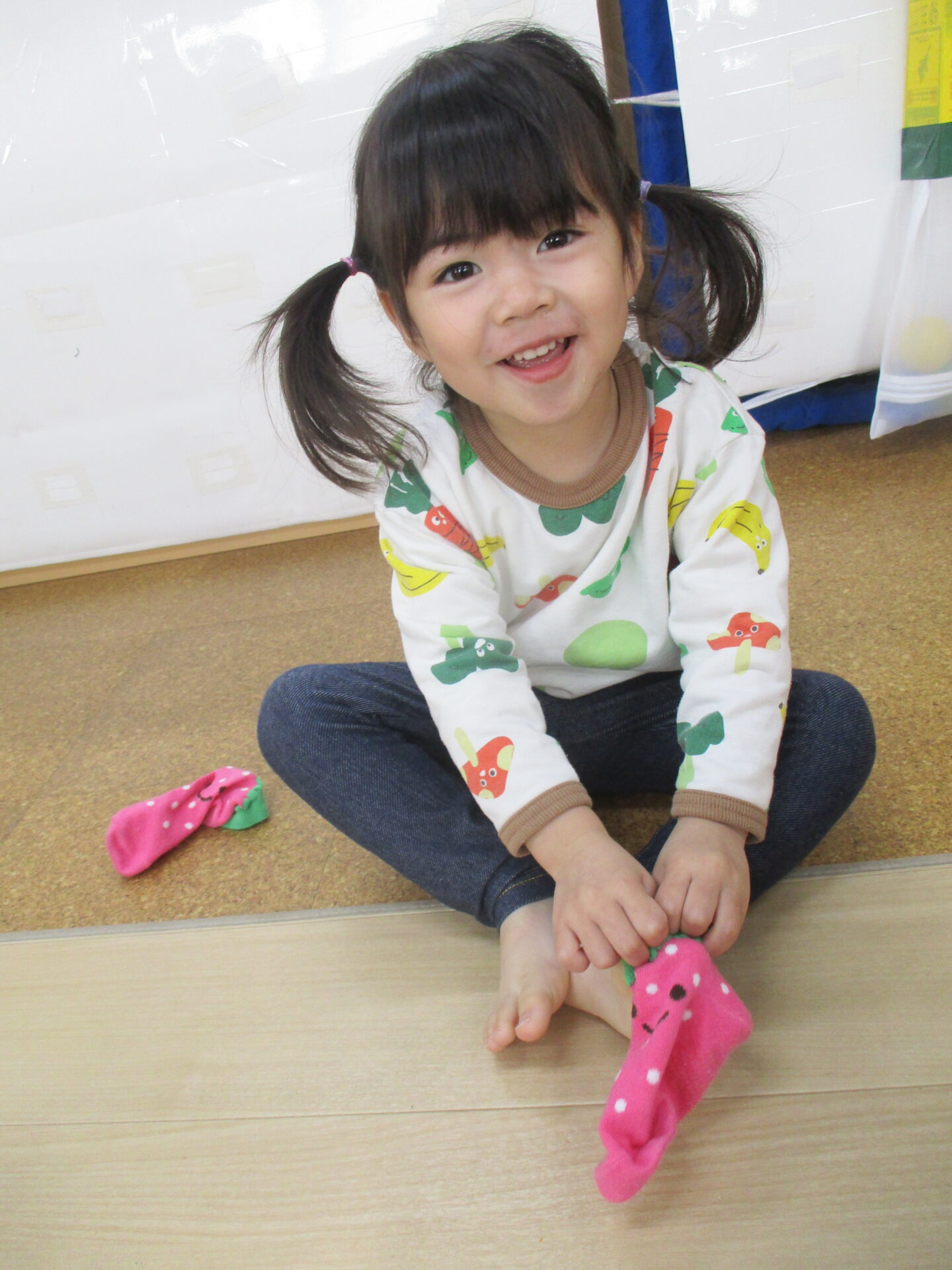 以前は、靴下を履くことがなかなか難しくて「できない~💦」となっていましたが、最近は自分でできるよ!!と言わんばかりの表情で履いて見せてくれます👌