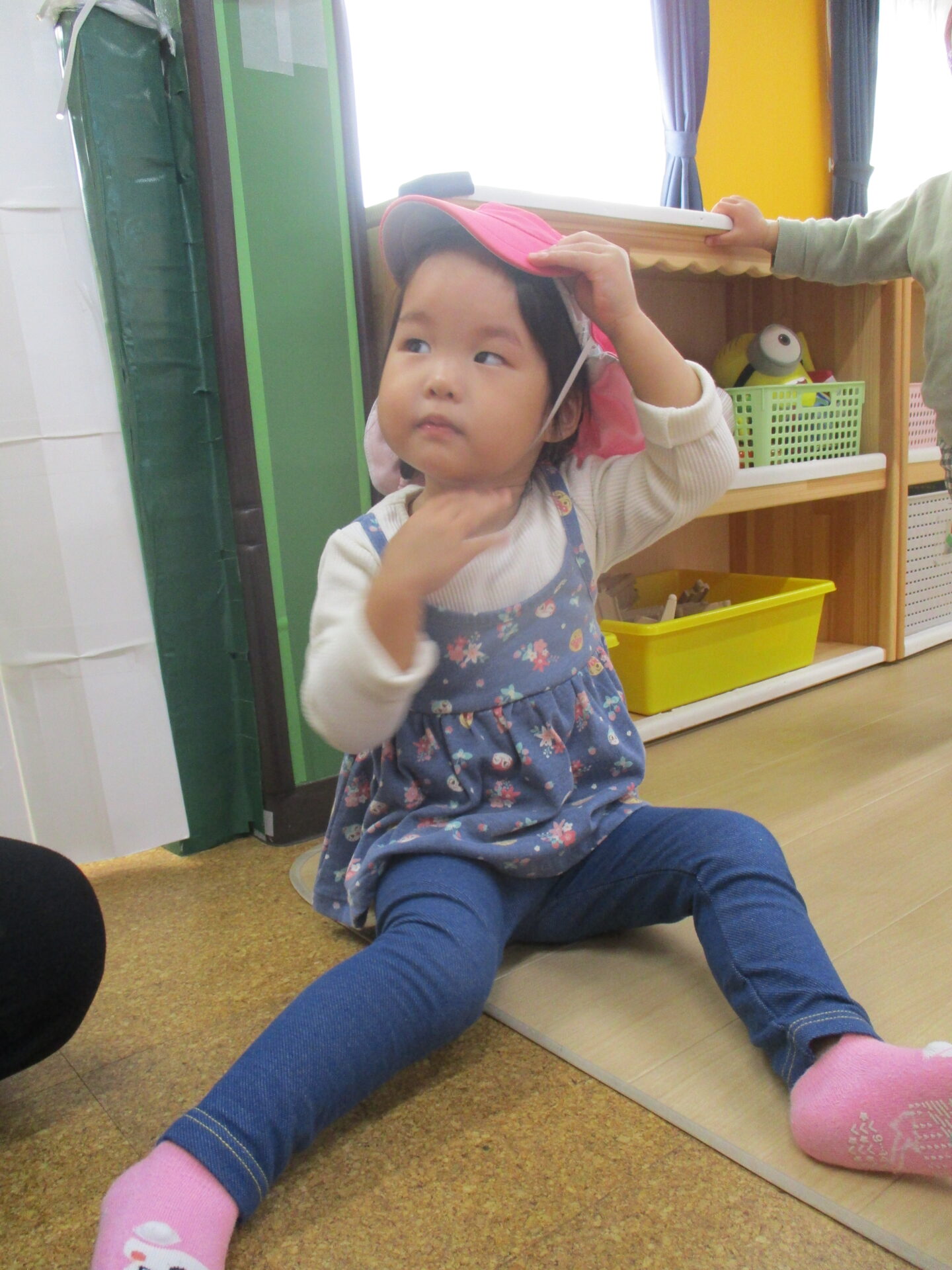 靴下が履けると、次は帽子です😊