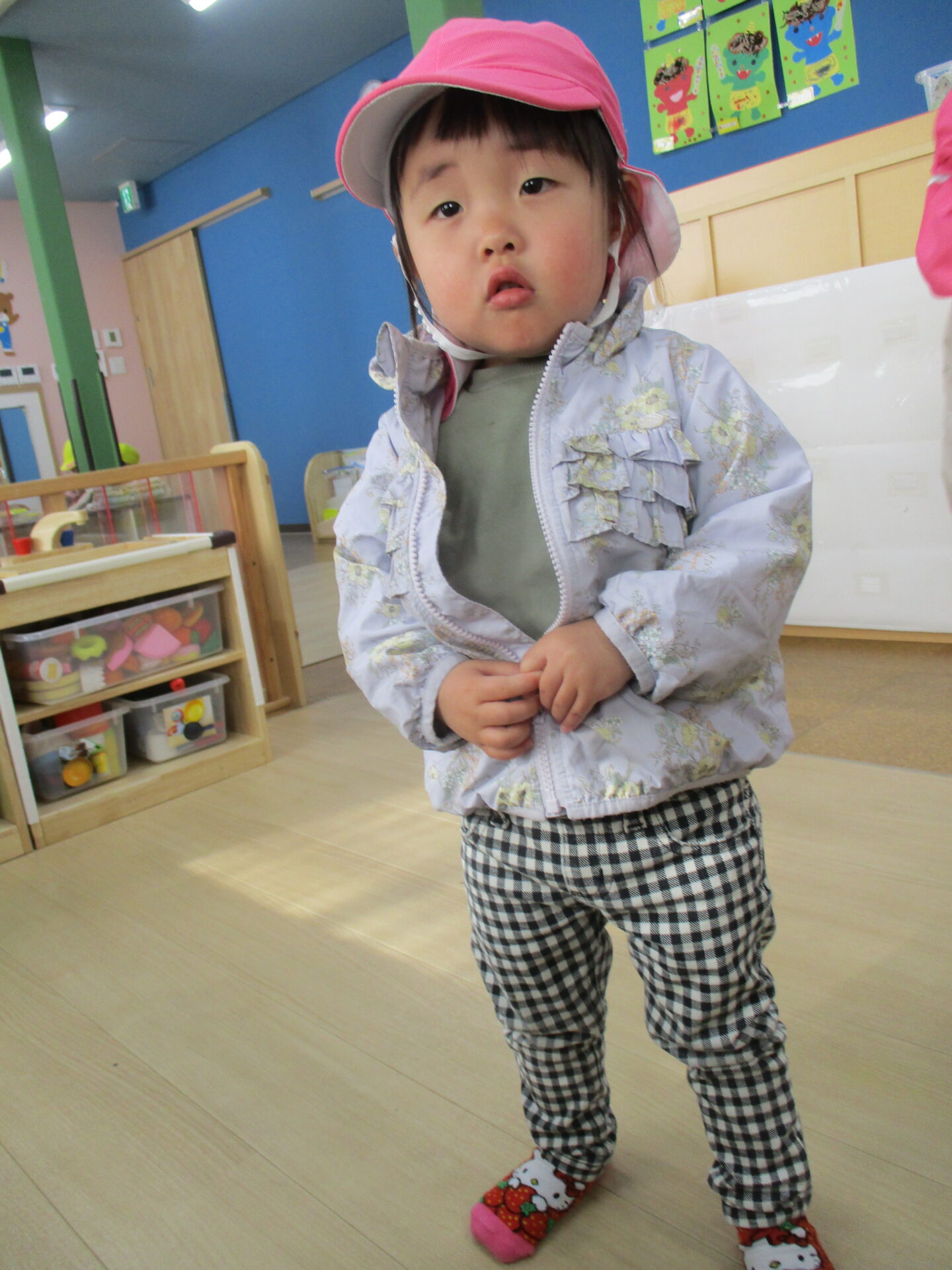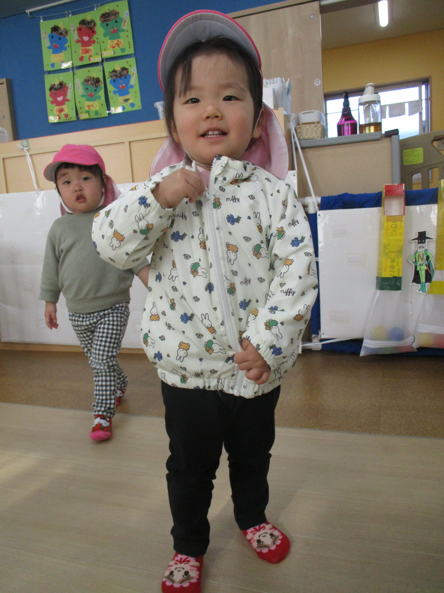 上着のファスナーは、保育者が途中まで手伝うと、自分で上げることができるようになりました✨