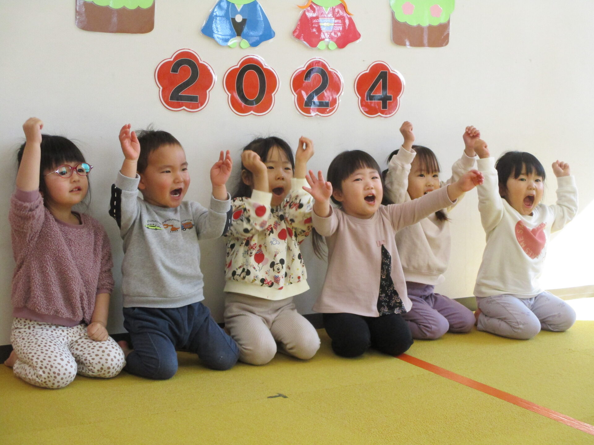「きょうも げんきに エイエイオー!!」