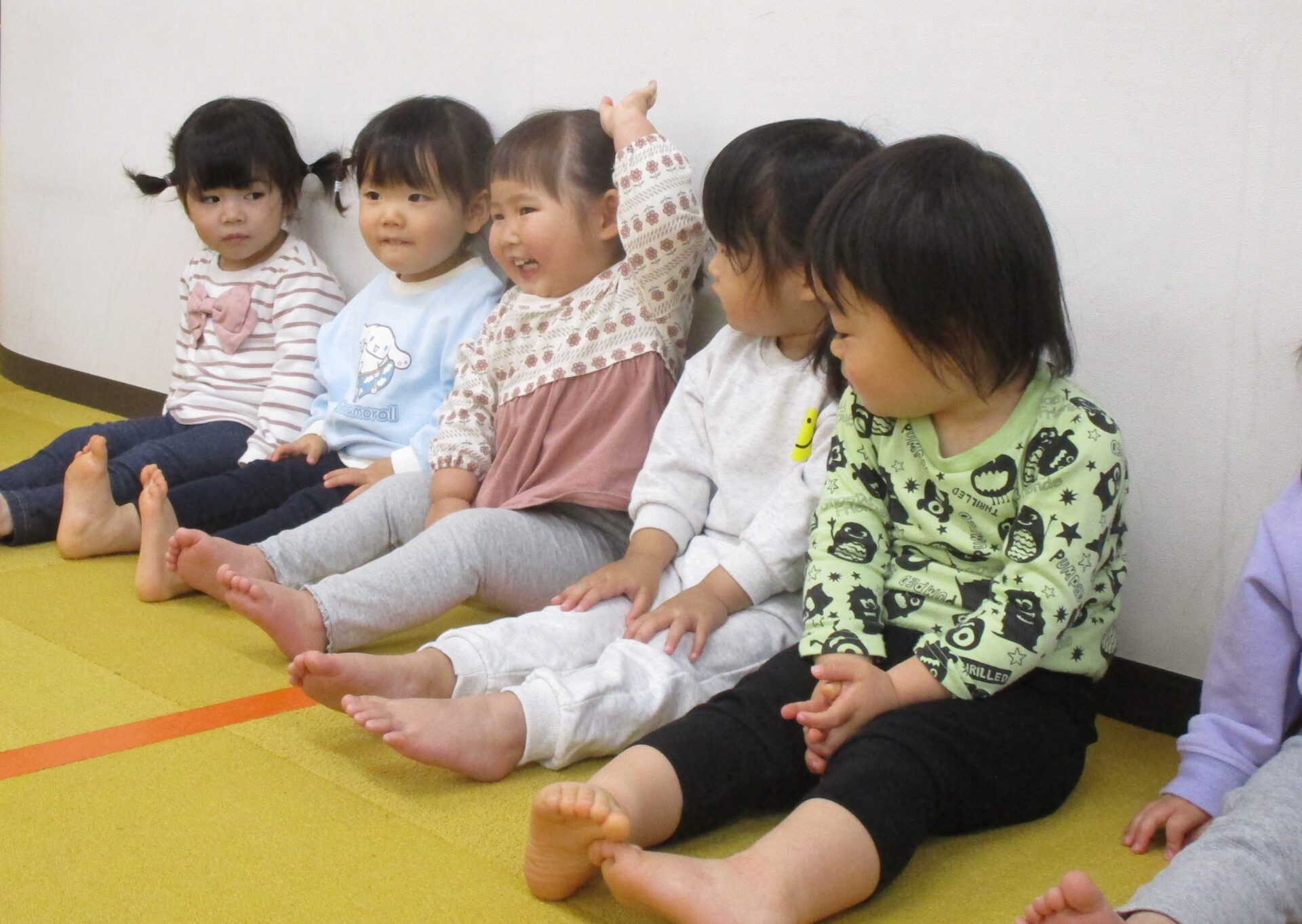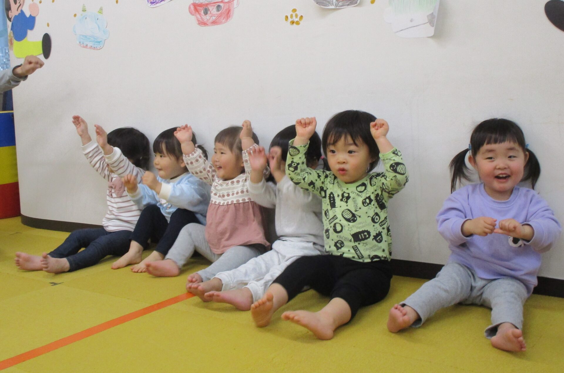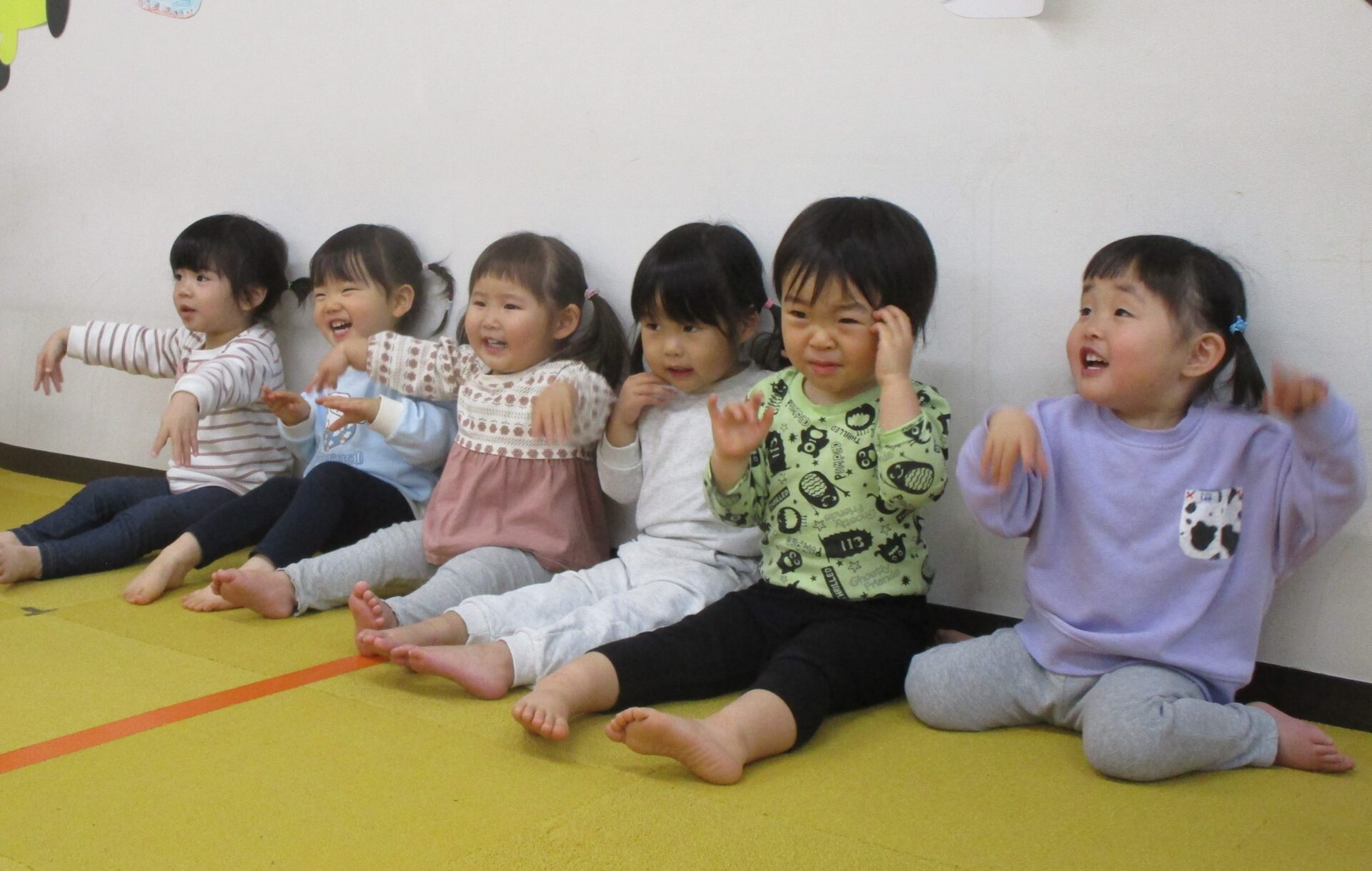 最初に、だいちチームで大人気🎵 【はじまるよ♪】 の手遊びを見ていただきました😊