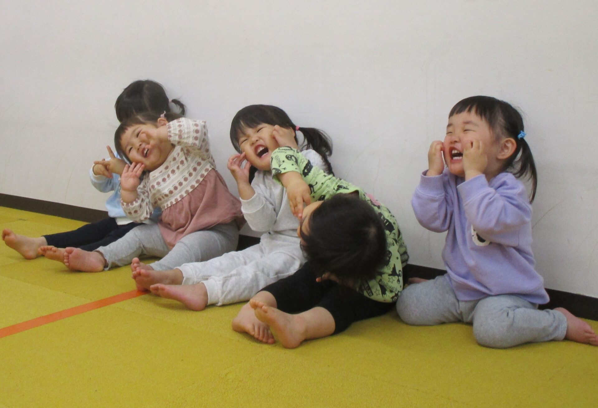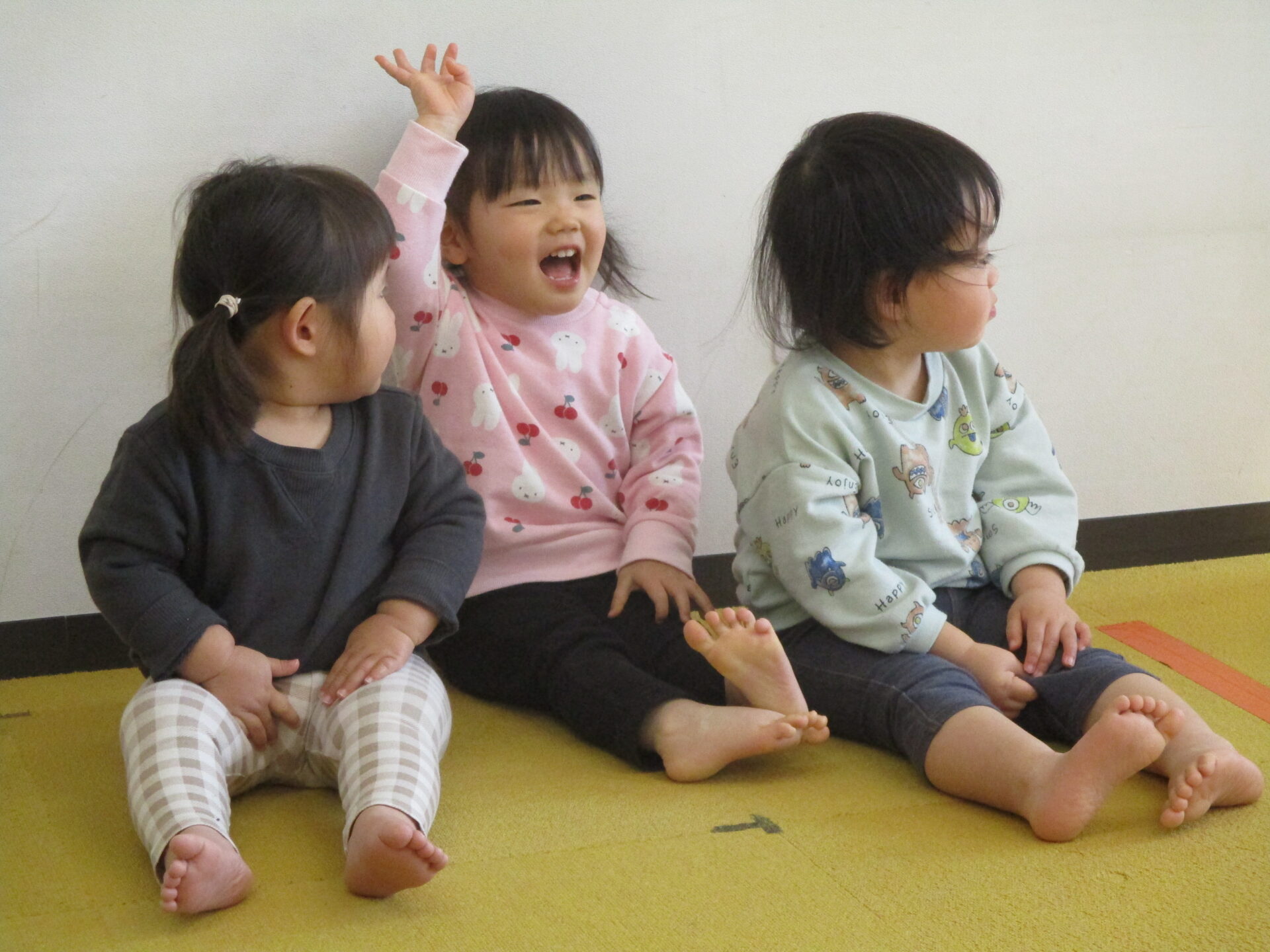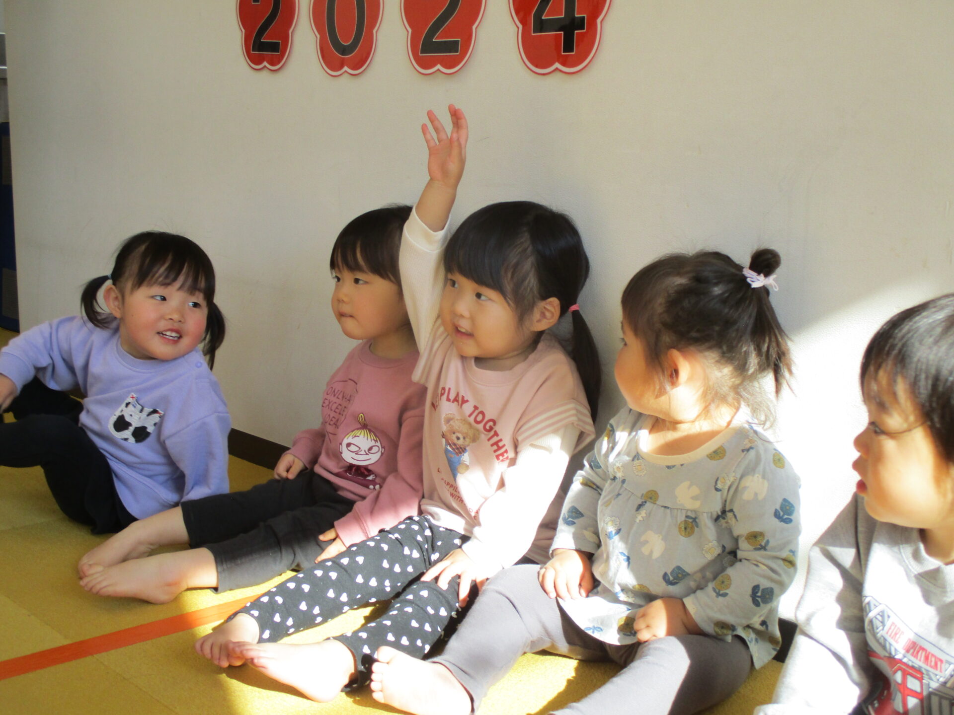 最初に、だいちチームで大人気🎵 【はじまるよ♪】 の手遊びを見ていただきました😊