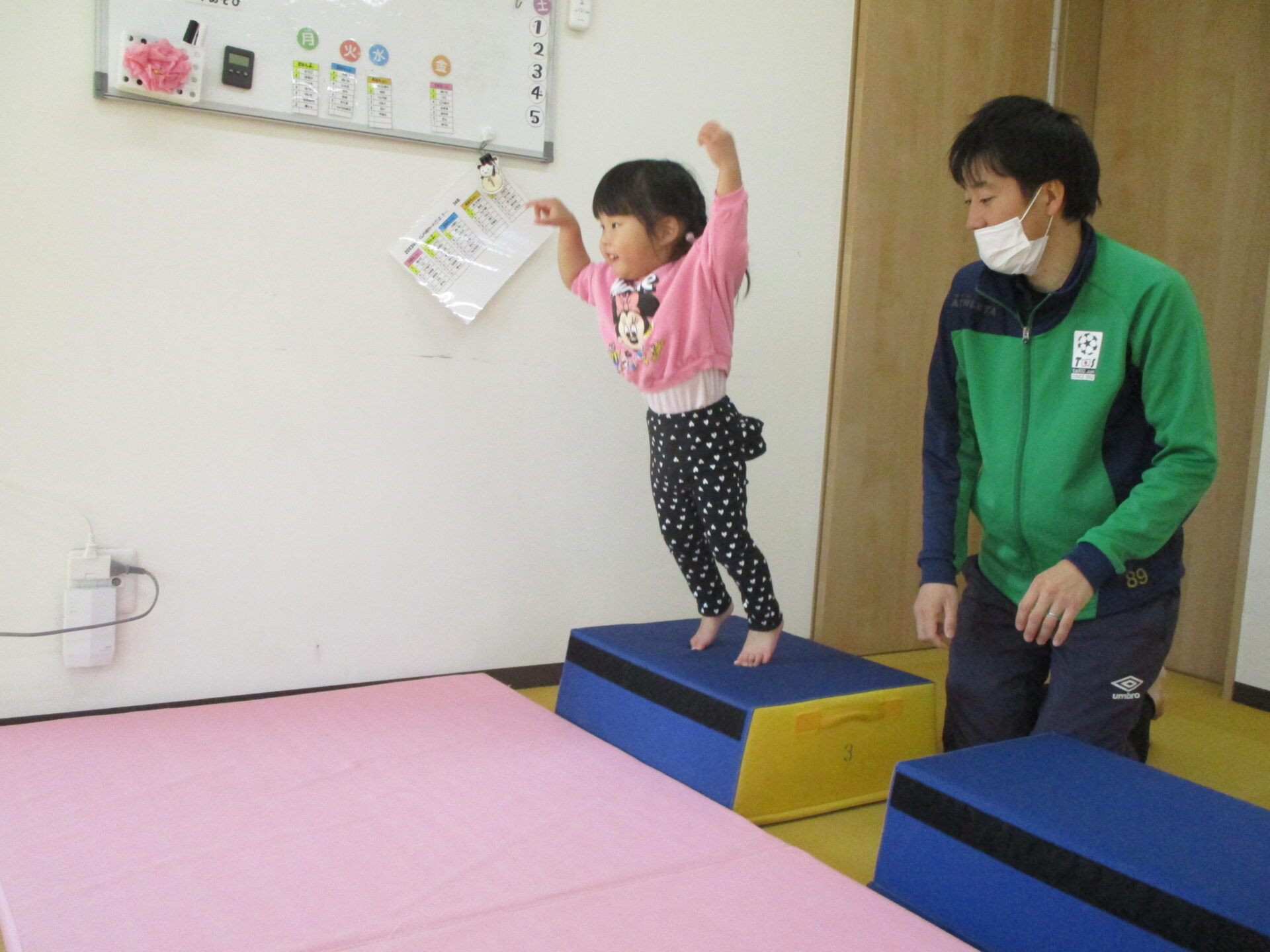 だいちチームになり、体操教室が始まった頃は、人見知りや、いつもと違う環境に不安になる様子もありましたが、この1年で、コーチのことも体操教室のことも大好きになりました💕